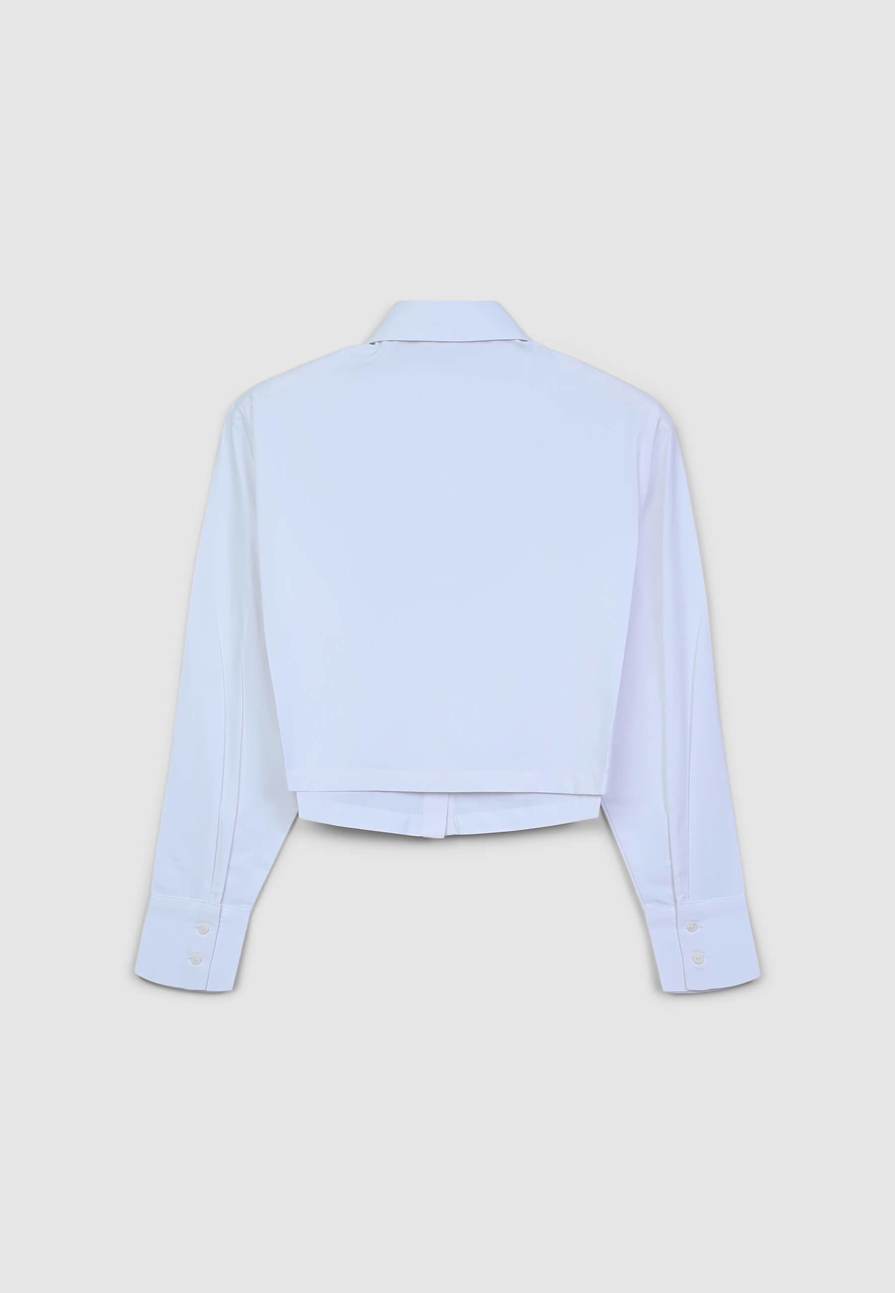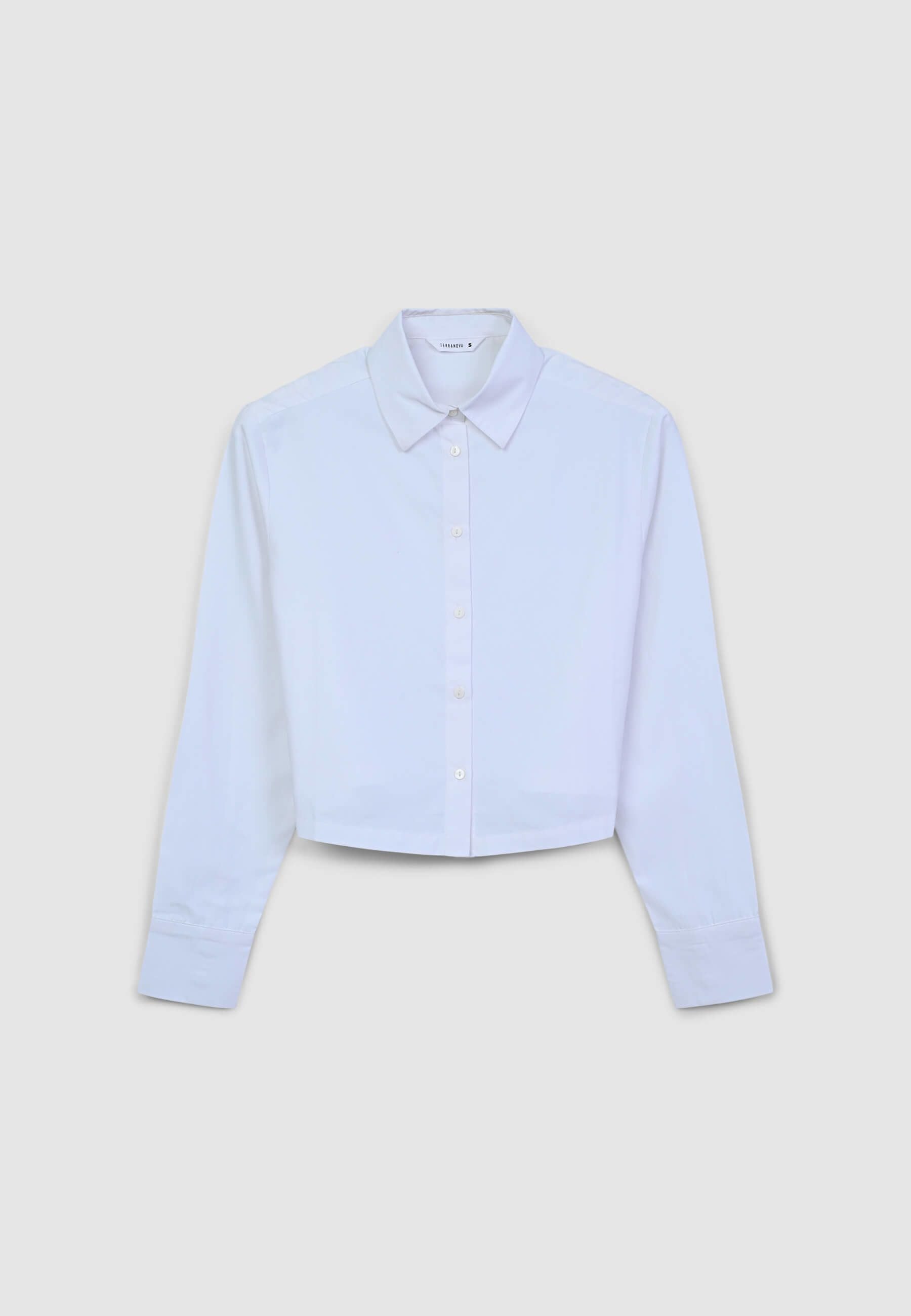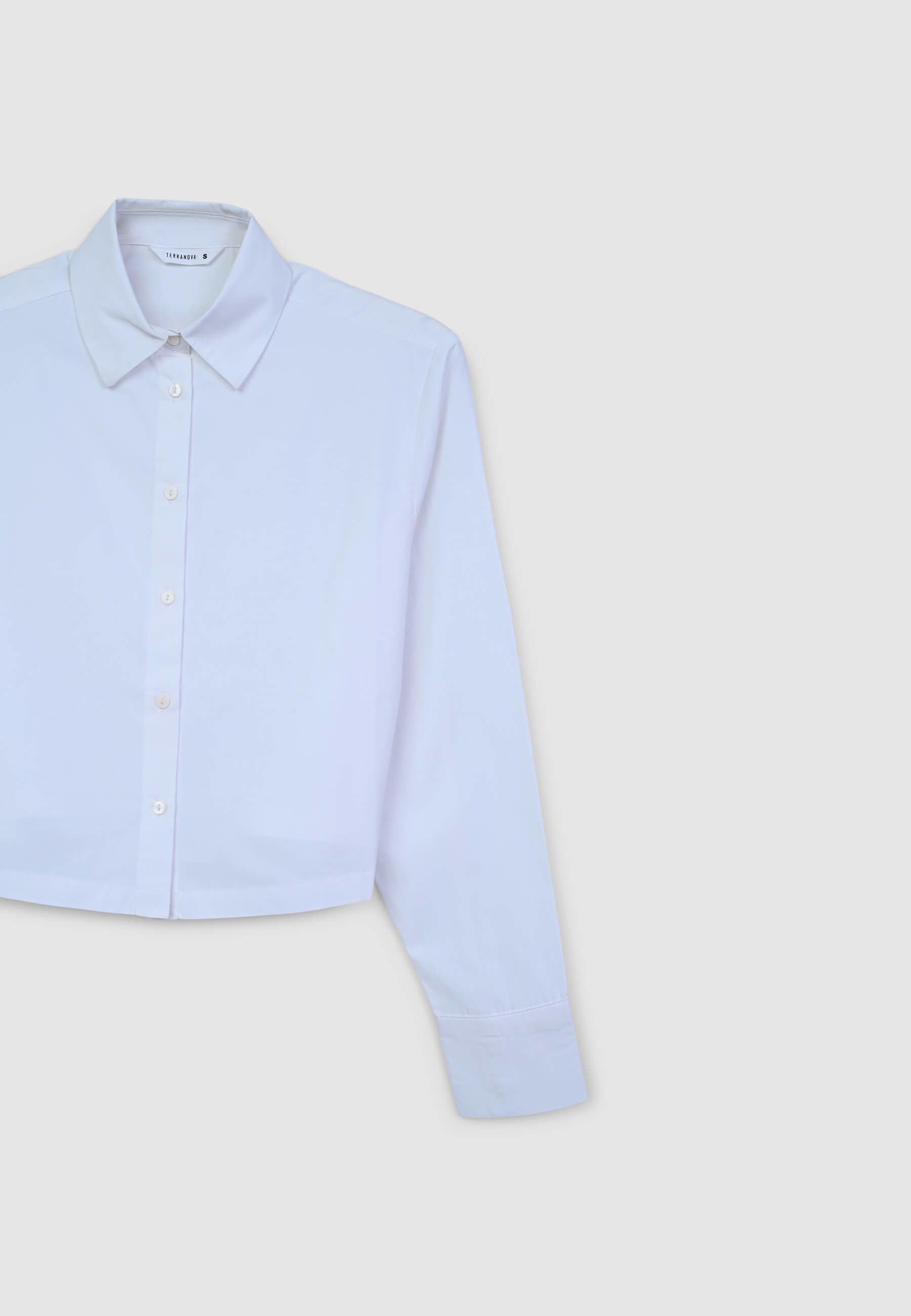 Camicia da donna crop a tinta unita, ideale per aggiungere un tocco moderno e versatile al tuo guardaroba. Dotata di colletto e una chiusura frontale con bottoni, questa camicia combina praticità e stile. La linea corta esalta la silhouette, rendendola perfetta per essere abbinata a pantaloni a vita alta o gonne. Un capo essenziale per outfit casual e contemporanei.Dettagli