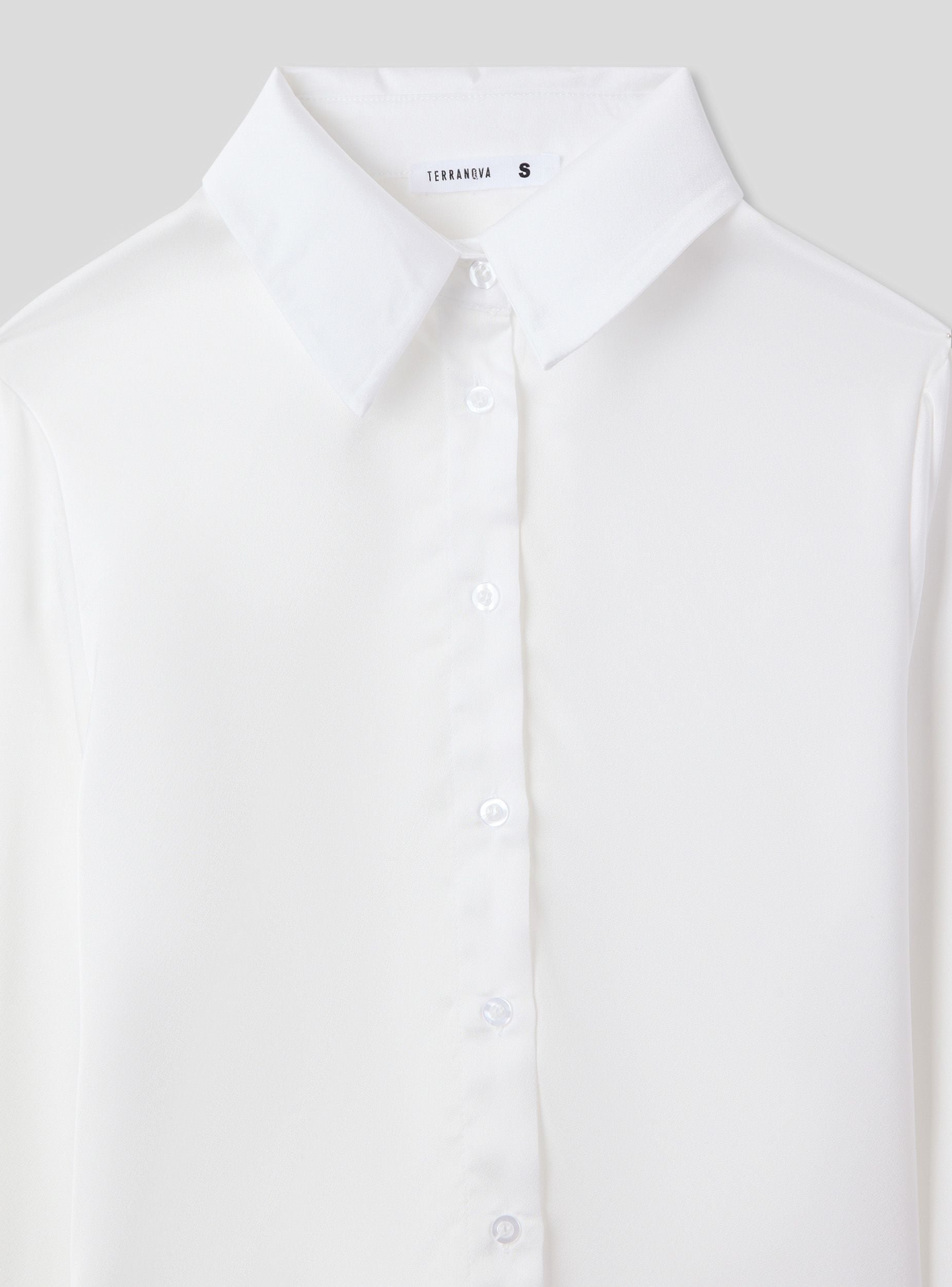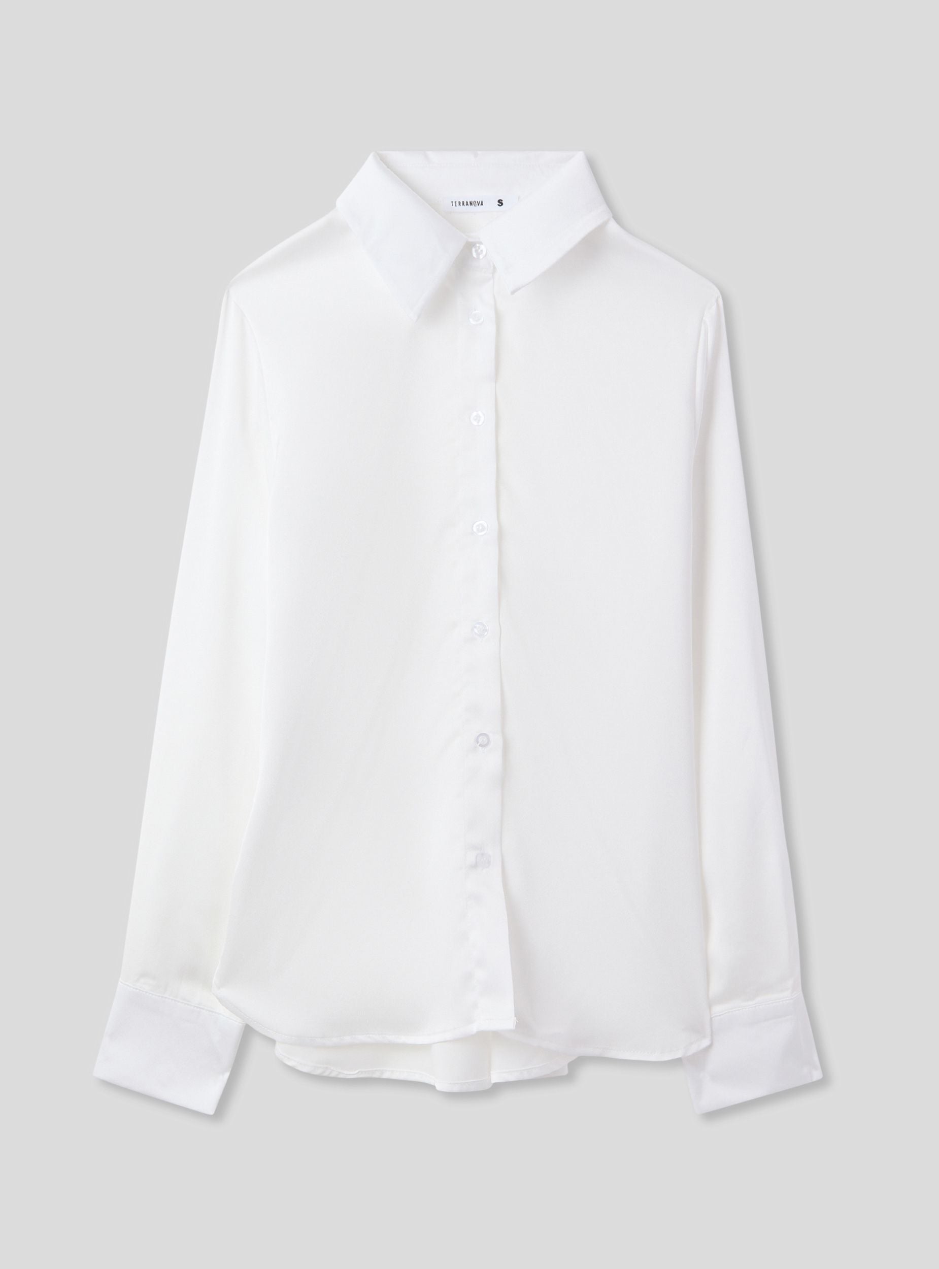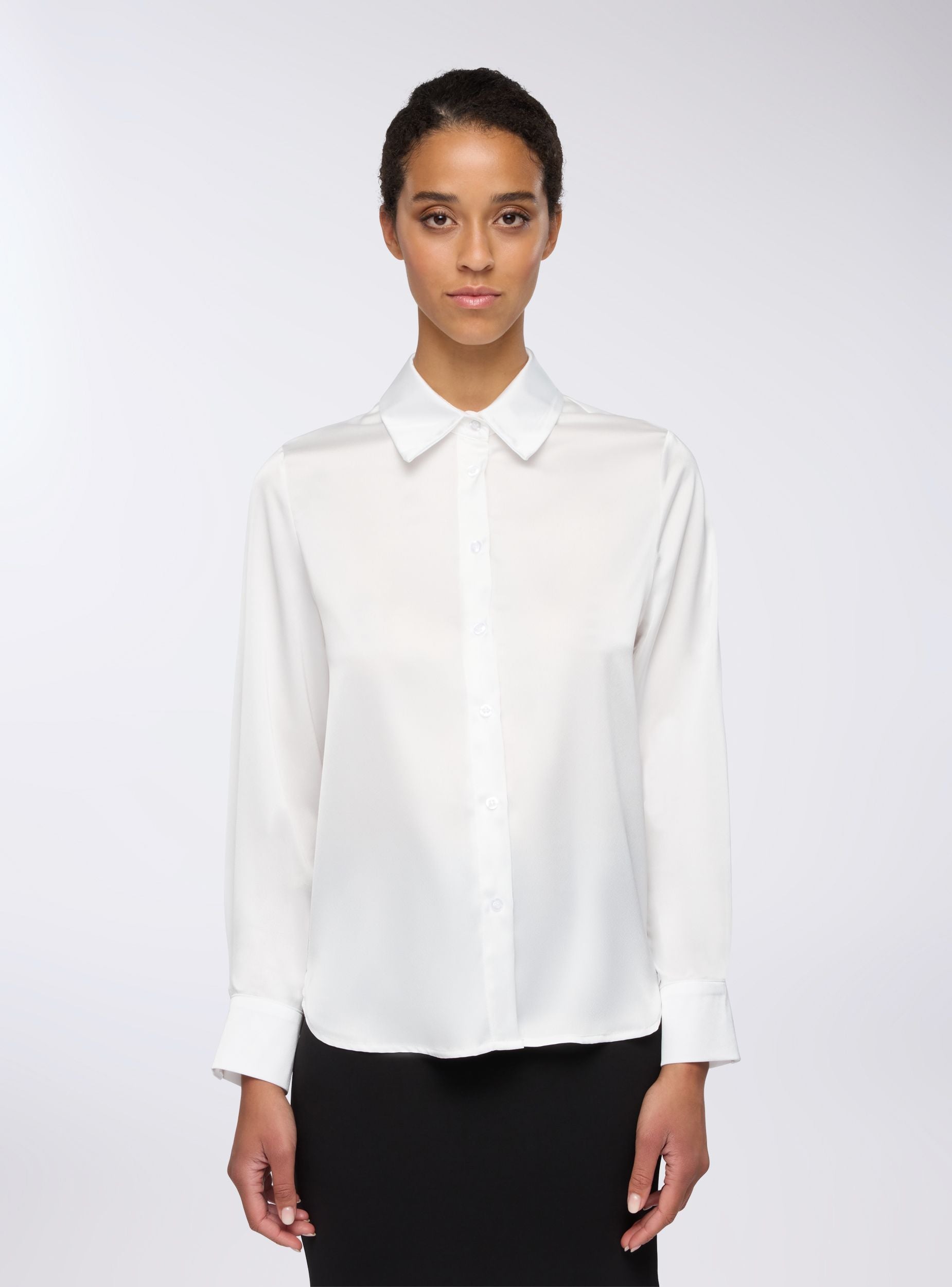 Camicia da donna ideale per un look elegante e raffinato. Perfetta per occasioni formali o per completare un outfit da ufficio, si abbina facilmente a pantaloni o gonne a tubino. Il design con colletto e maniche lunghe aggiunge un tocco di professionalità. Realizzata in tessutto effetto raso a tinta unita.Dettagli