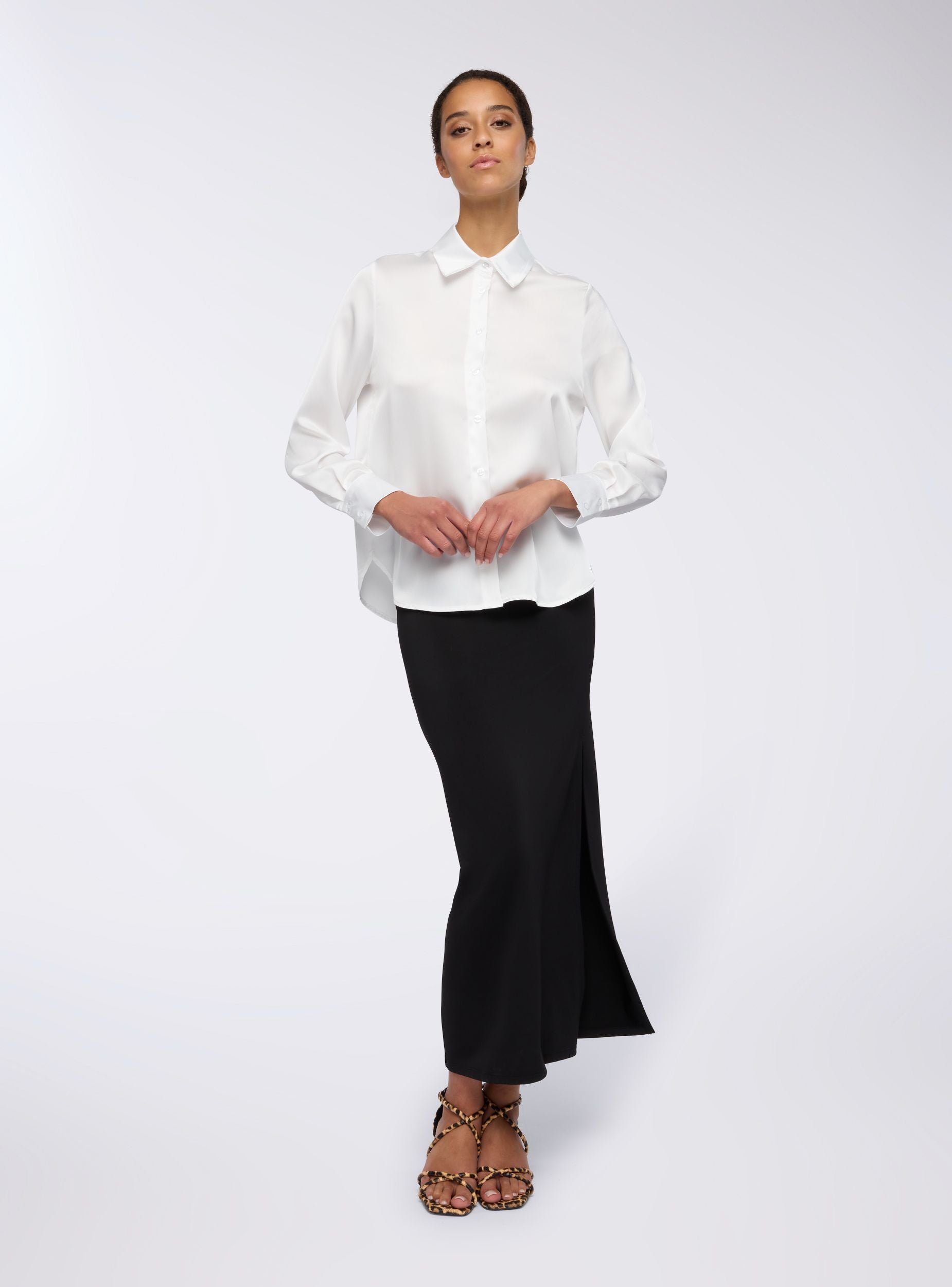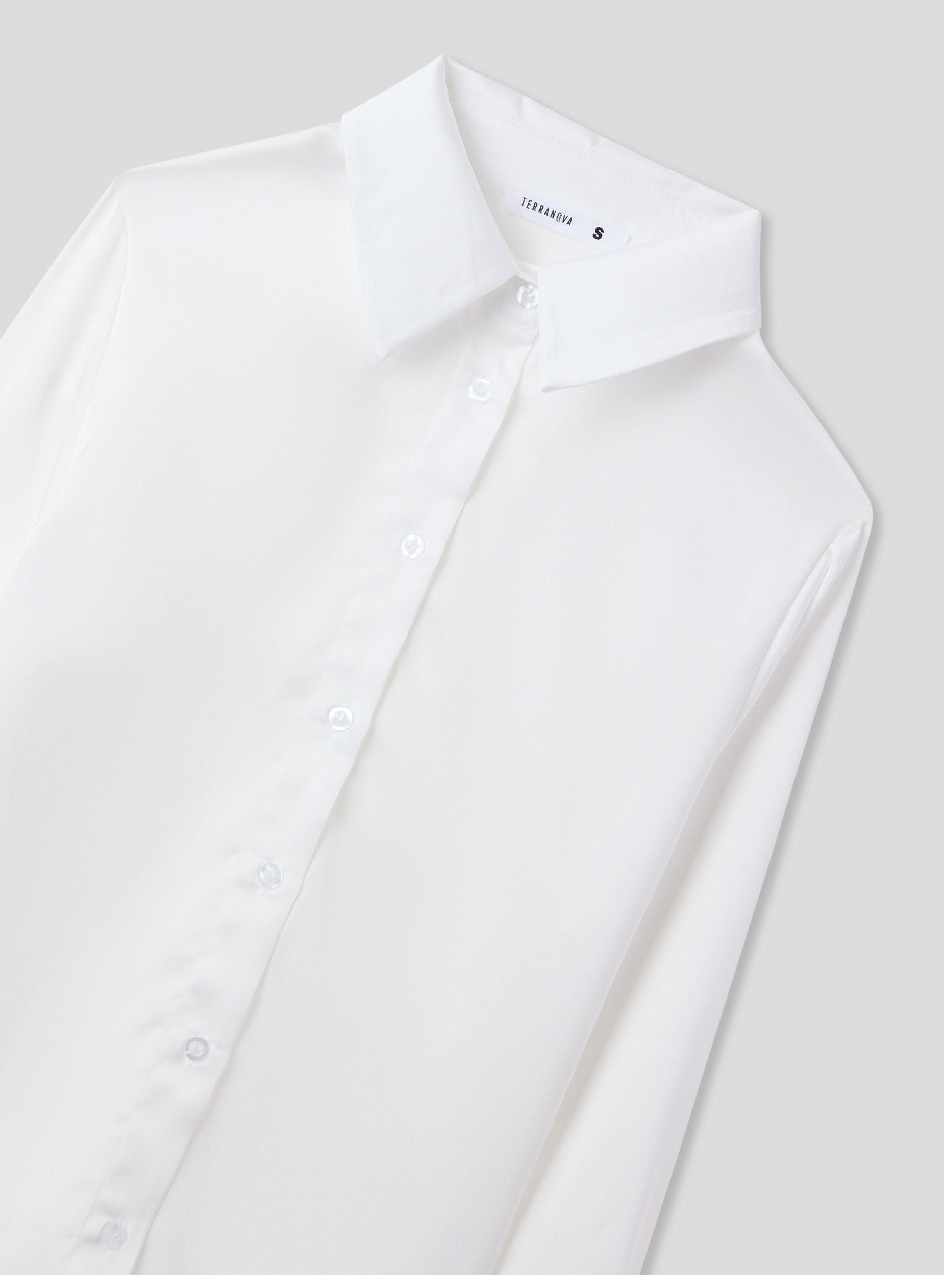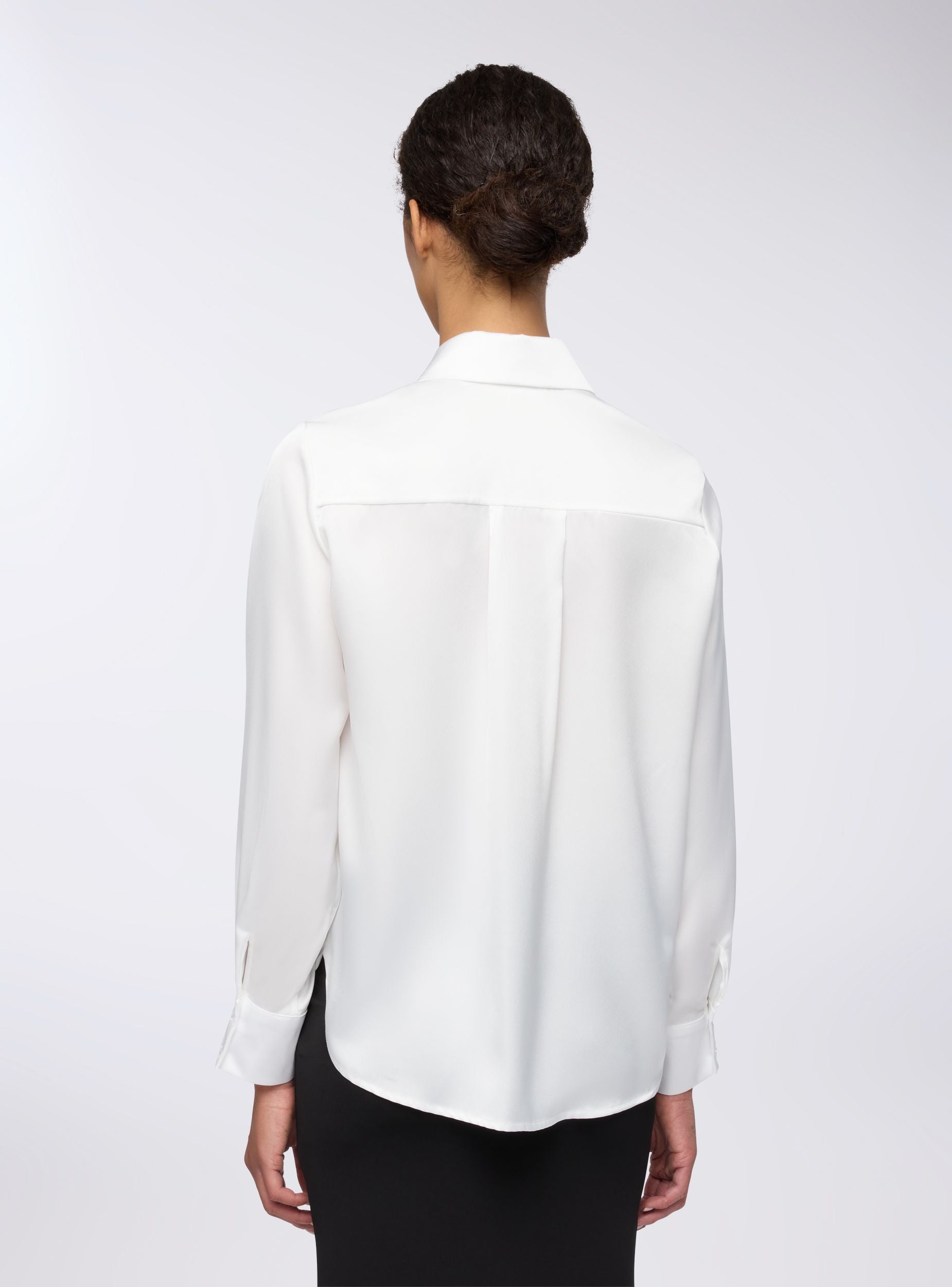 Camicia da donna ideale per un look elegante e raffinato. Perfetta per occasioni formali o per completare un outfit da ufficio, si abbina facilmente a pantaloni o gonne a tubino. Il design con colletto e maniche lunghe aggiunge un tocco di professionalità. Realizzata in tessutto effetto raso a tinta unita.Dettagli