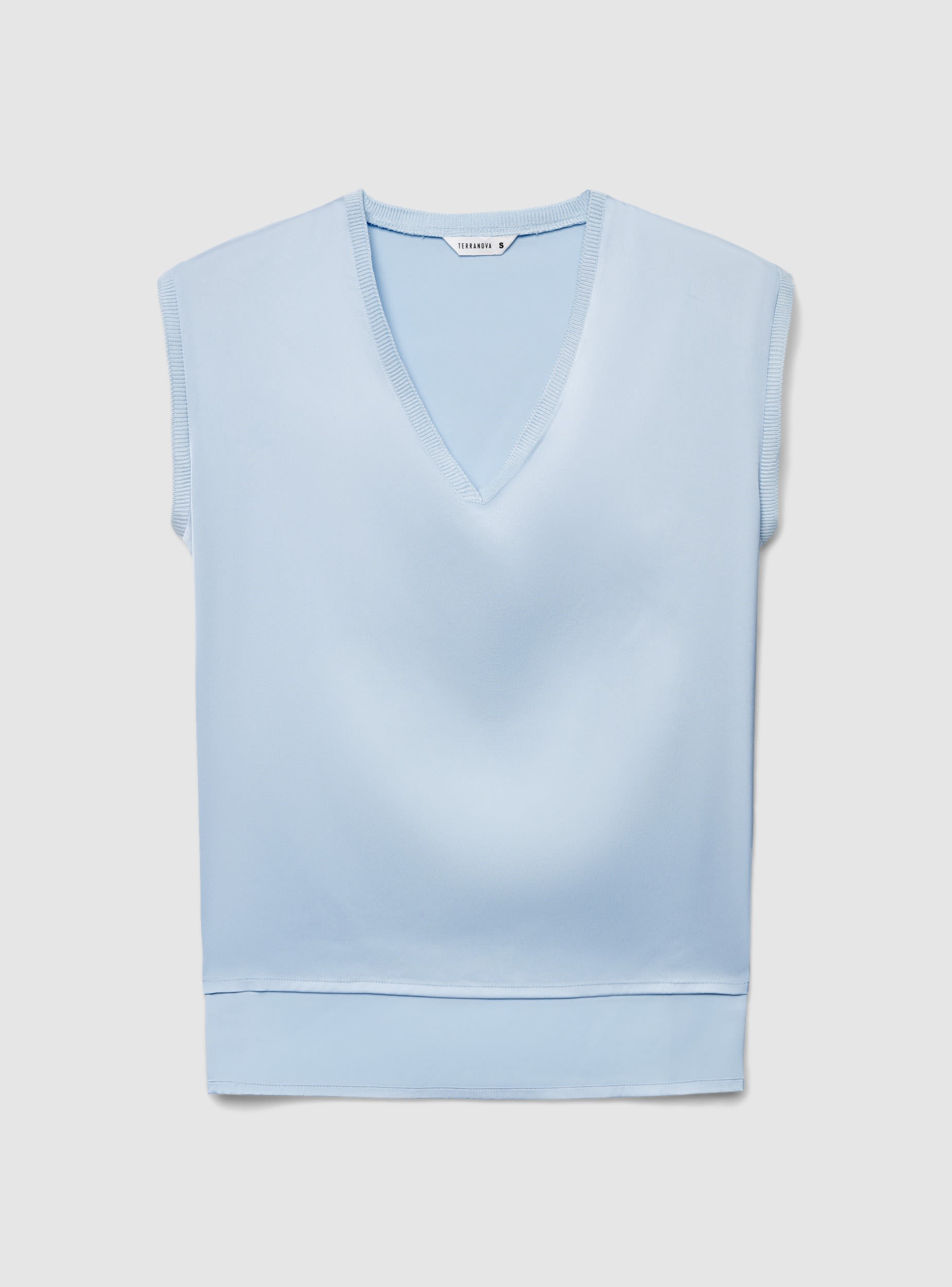 Top da donna a tinta unita, senza maniche e con scollo a V profondo rifinito a costine. Linea dritta e lunghezza normale, ideale per ufficio e tempo libero. Il design minimal facilita gli abbinamenti con jeans, gonne midi o pantaloni eleganti, mentre l’orlo leggermente doppiato dona un tocco curato. Perfetta sotto blazer o cardigan per look versatili e femminili.Dettagli