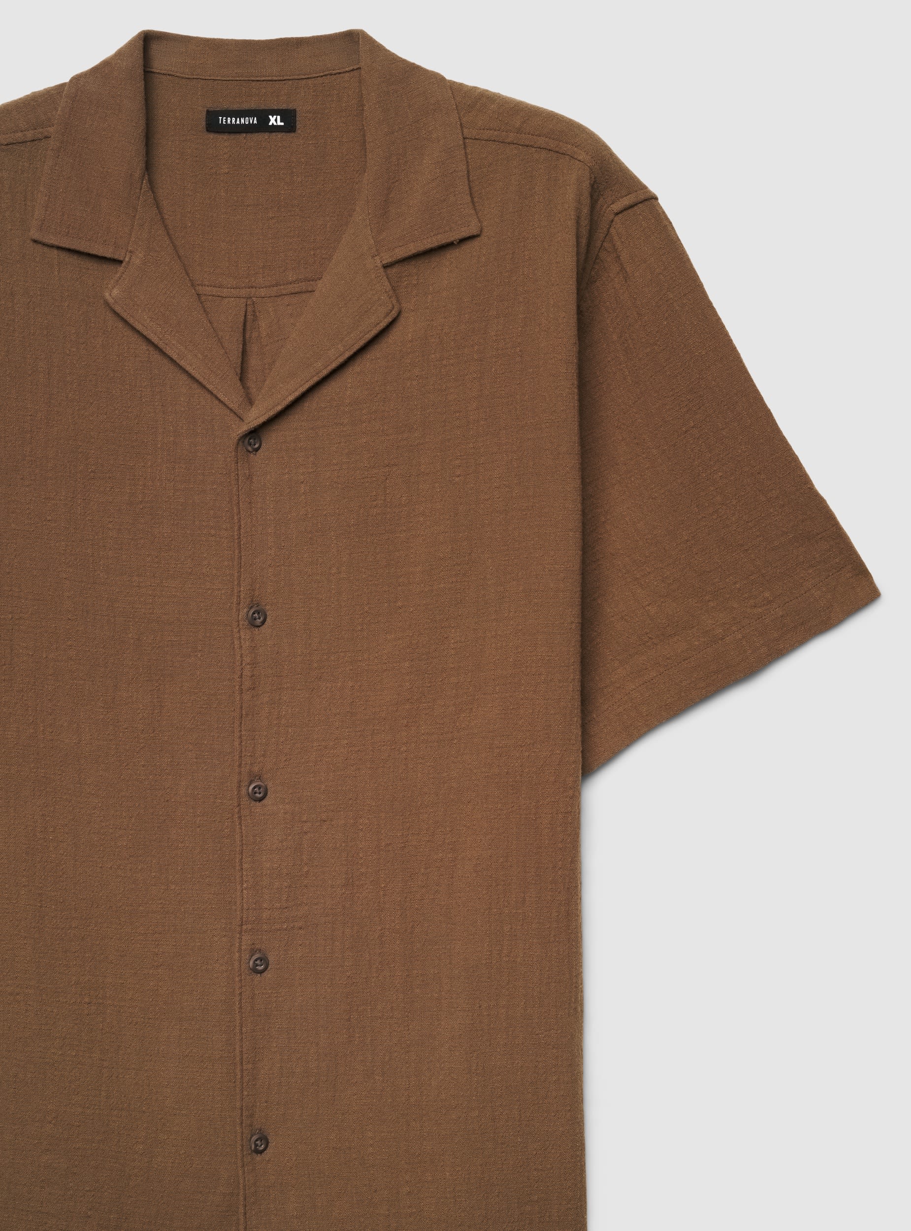 Camicia a maniche corte da uomo tinta unita, dal taglio comodo e dal design bowling con colletto aperto. La chiusura frontale con bottoni la rende pratica da indossare, ideale per look estivi e weekend in città. Abbinala a bermuda o jeans per un outfit rilassato. Linea dritta e fondo leggermente arrotondato per una vestibilità versatile.Dettagli