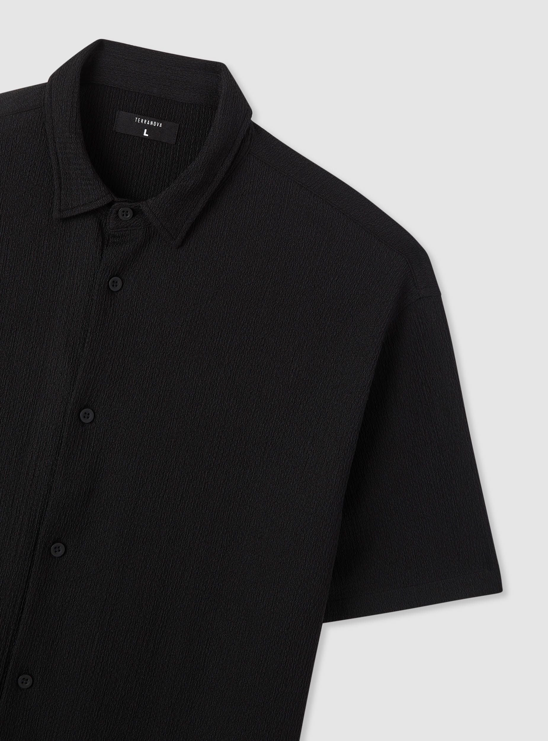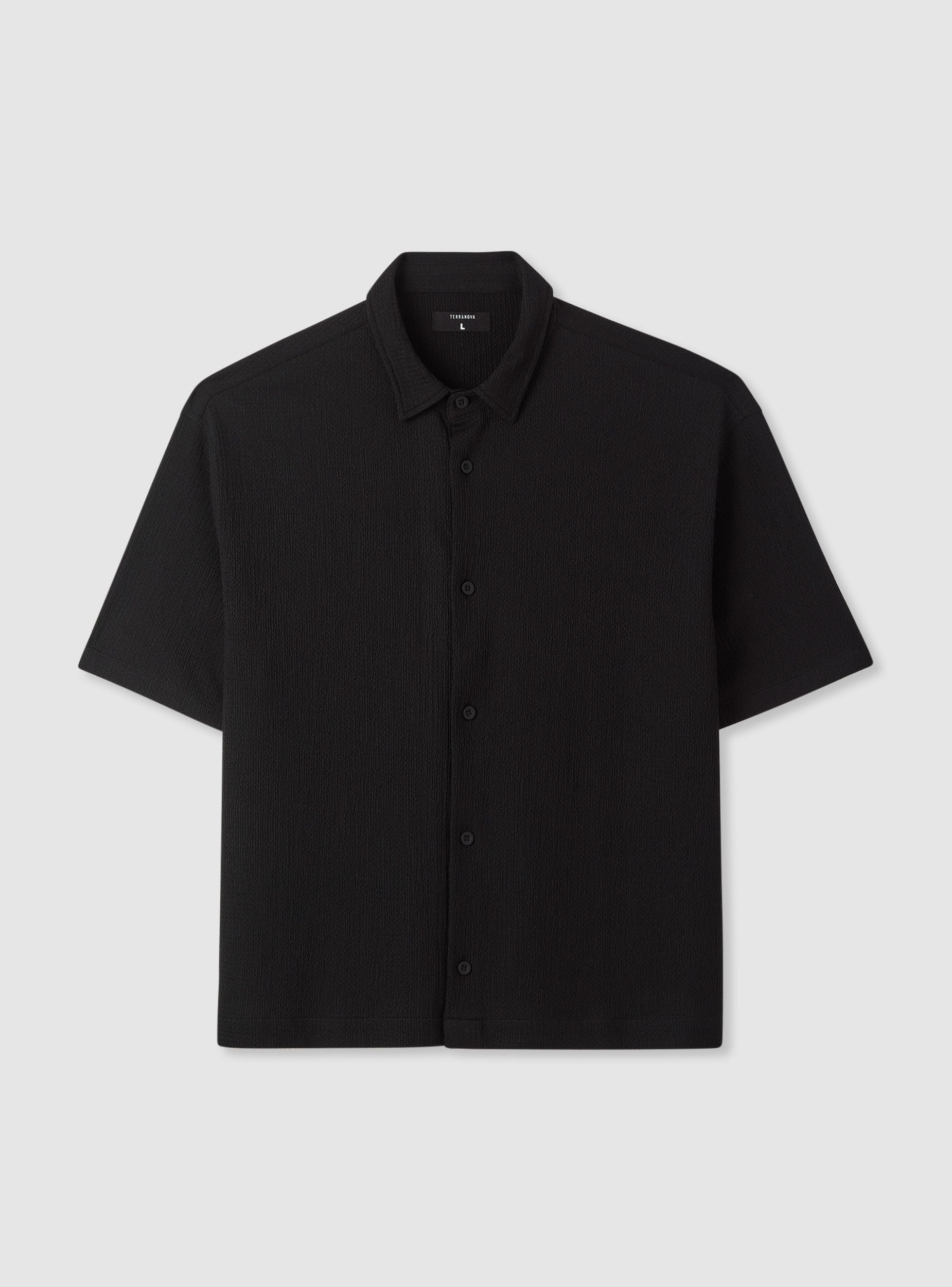 Camicia da uomo a maniche corte in tinta unita, pensata per look urbani e rilassati. Il taglio boxy dona una vestibilità ampia e moderna, ideale sopra t-shirt o da indossare da sola con jeans e chino. Colletto classico e chiusura frontale con bottoni, linea pulita senza tasche per uno stile essenziale e versatile dal giorno alla sera.Dettagli