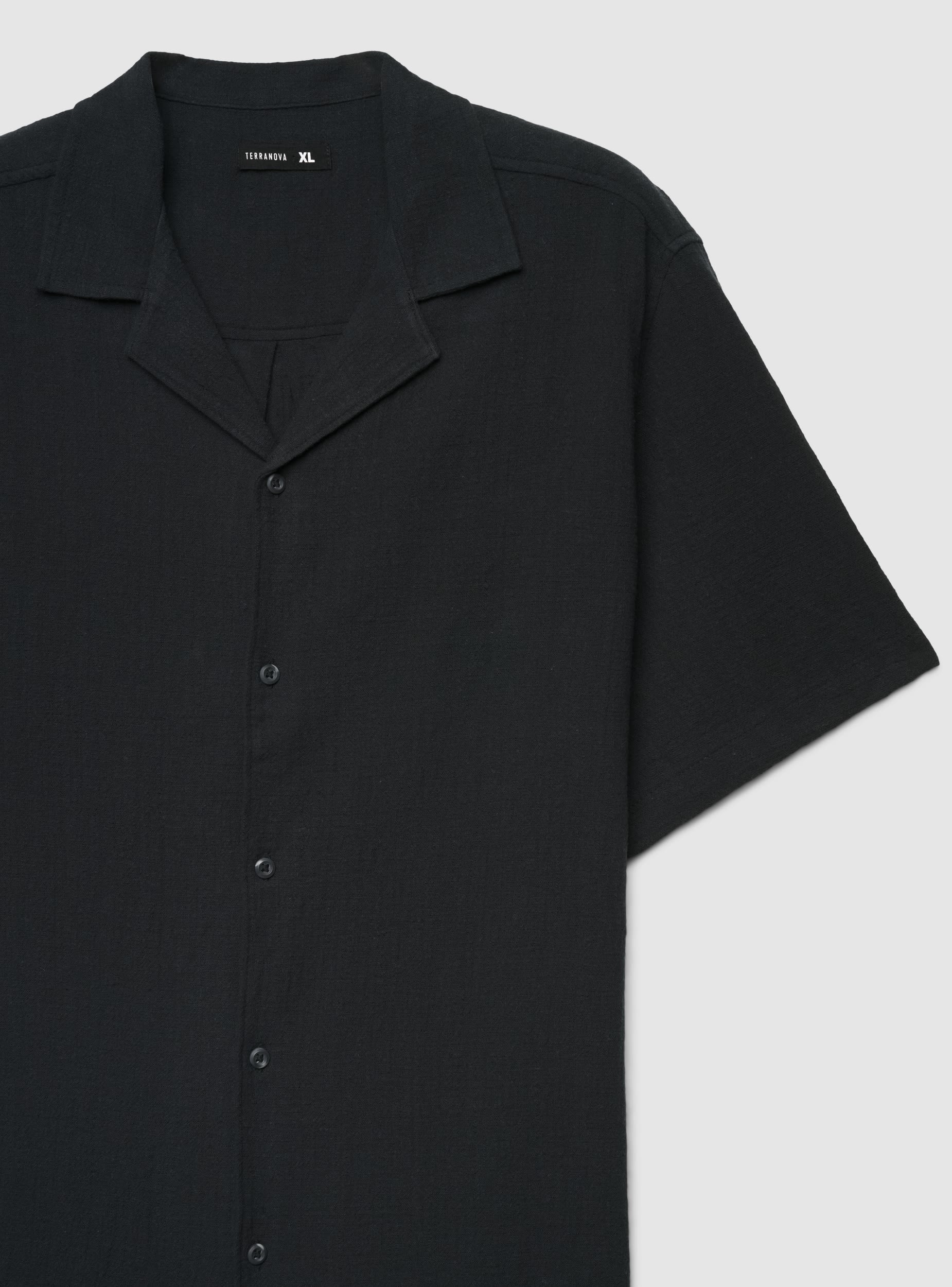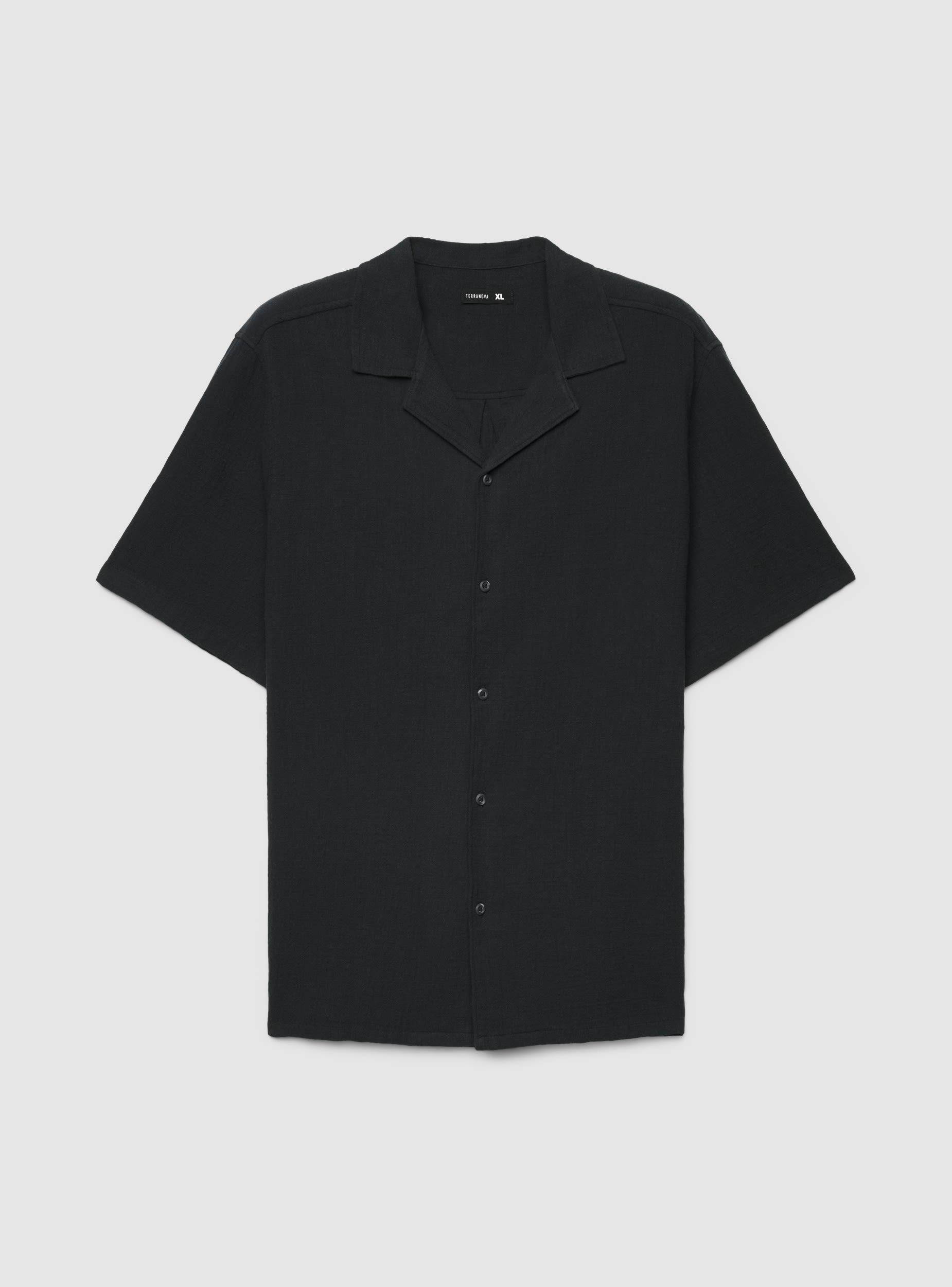 Camicia a maniche corte da uomo tinta unita, dal taglio comodo e dal design bowling con colletto aperto. La chiusura frontale con bottoni la rende pratica da indossare, ideale per look estivi e weekend in città. Abbinala a bermuda o jeans per un outfit rilassato. Linea dritta e fondo leggermente arrotondato per una vestibilità versatile.Dettagli
