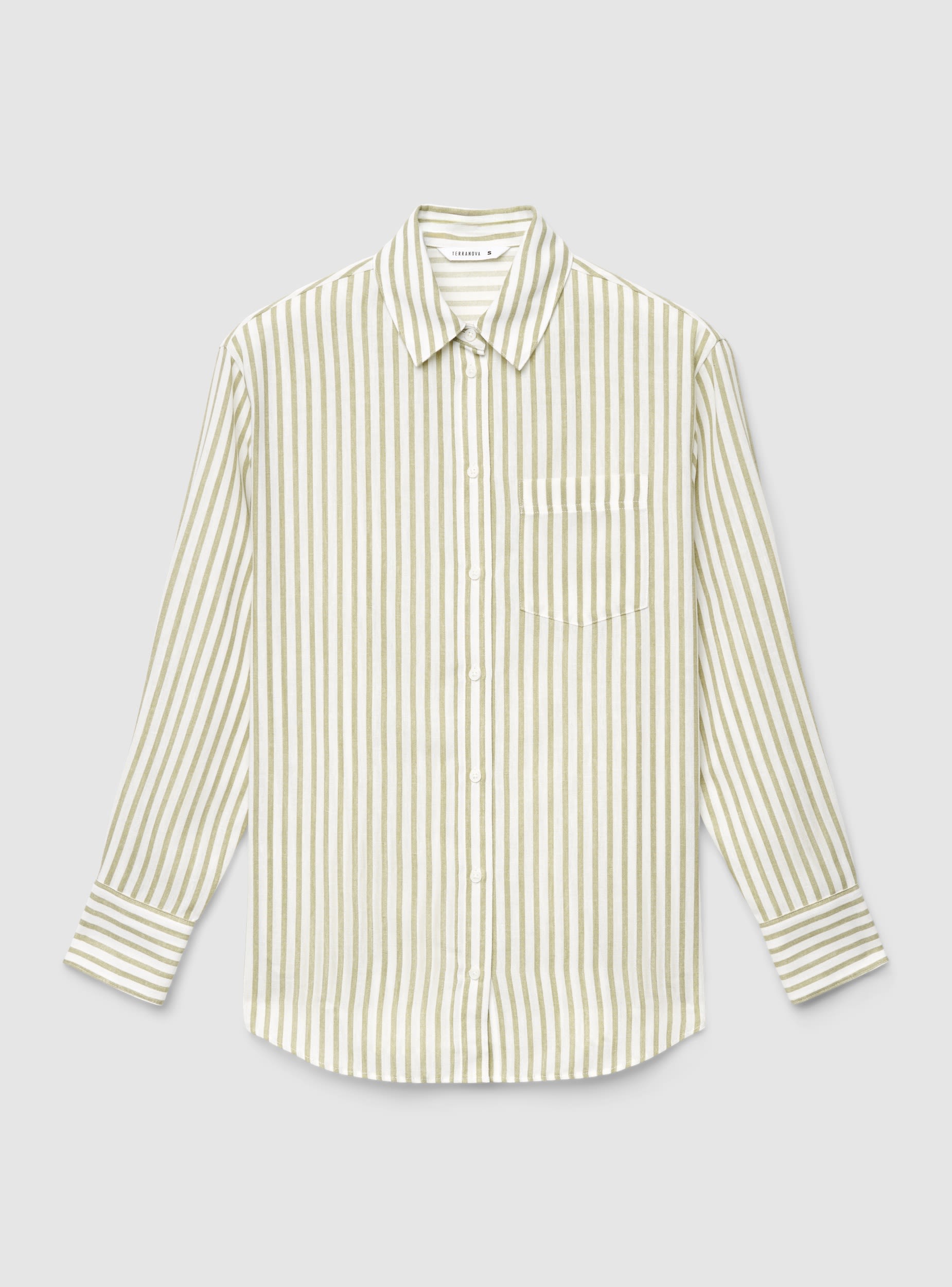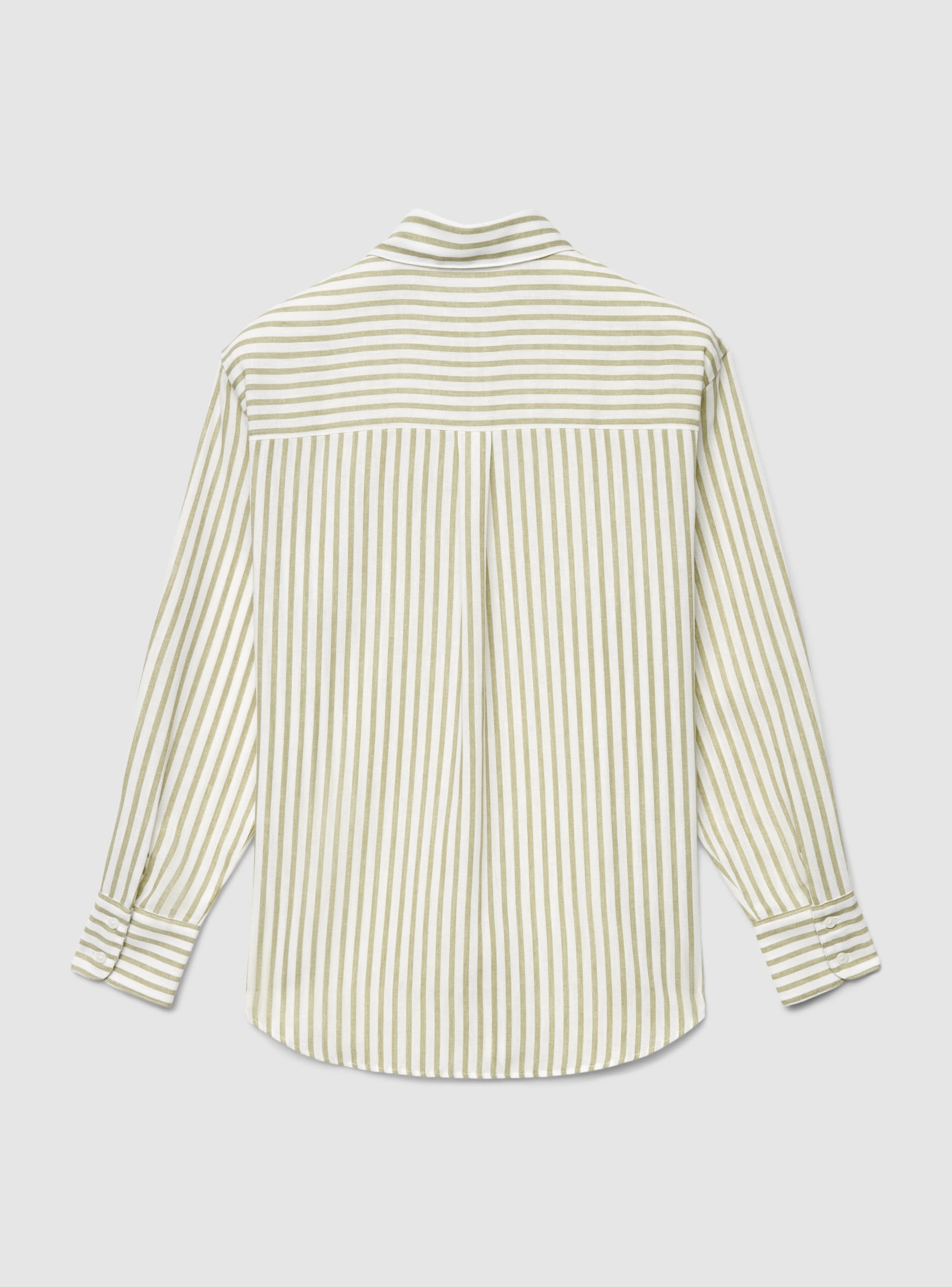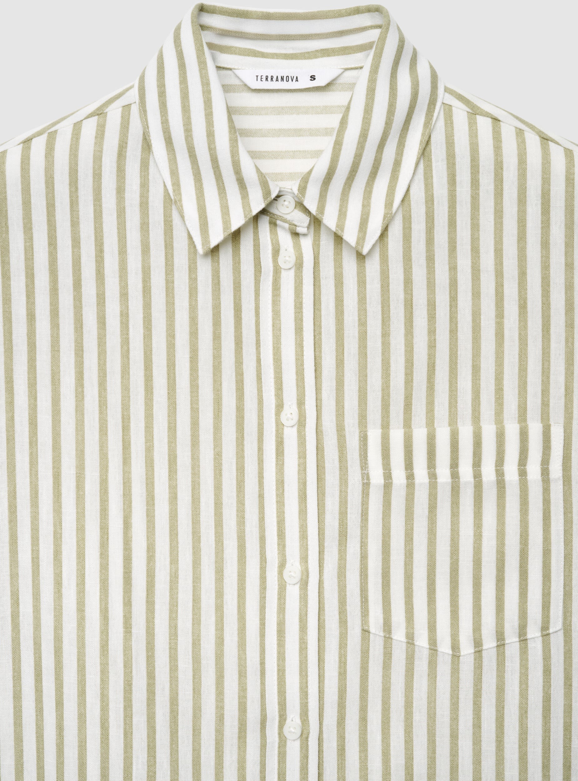 Camicia da donna a righe con colletto e maniche lunghe, ideale per look da ufficio o tempo libero. Chiusura frontale con bottoni e polsini regolabili, taschino applicato sul petto e linea dritta dalla vestibilità comoda. Perfetta con jeans o pantaloni sartoriali, da indossare anche aperta sopra un top per un outfit a strati.Dettagli