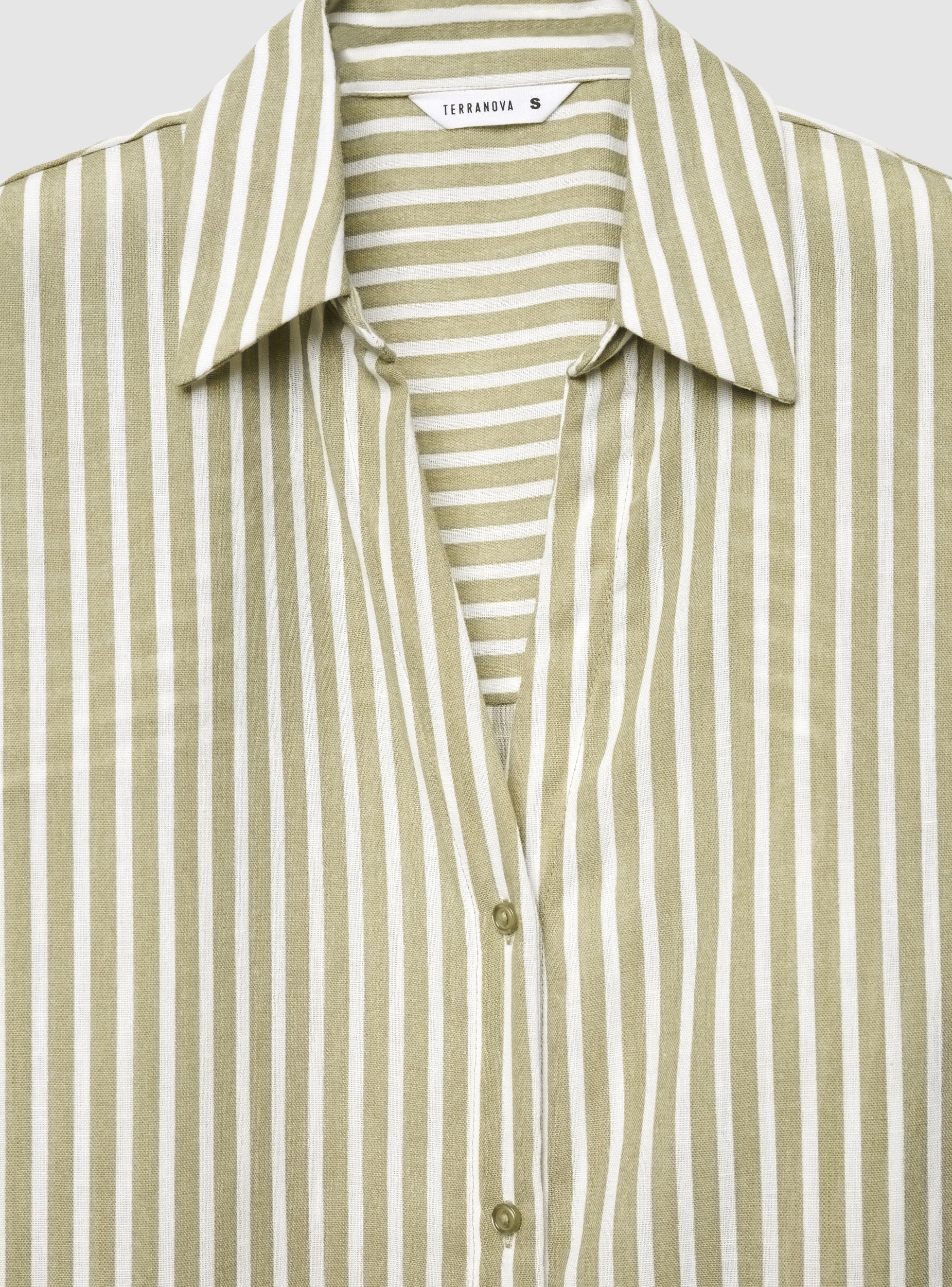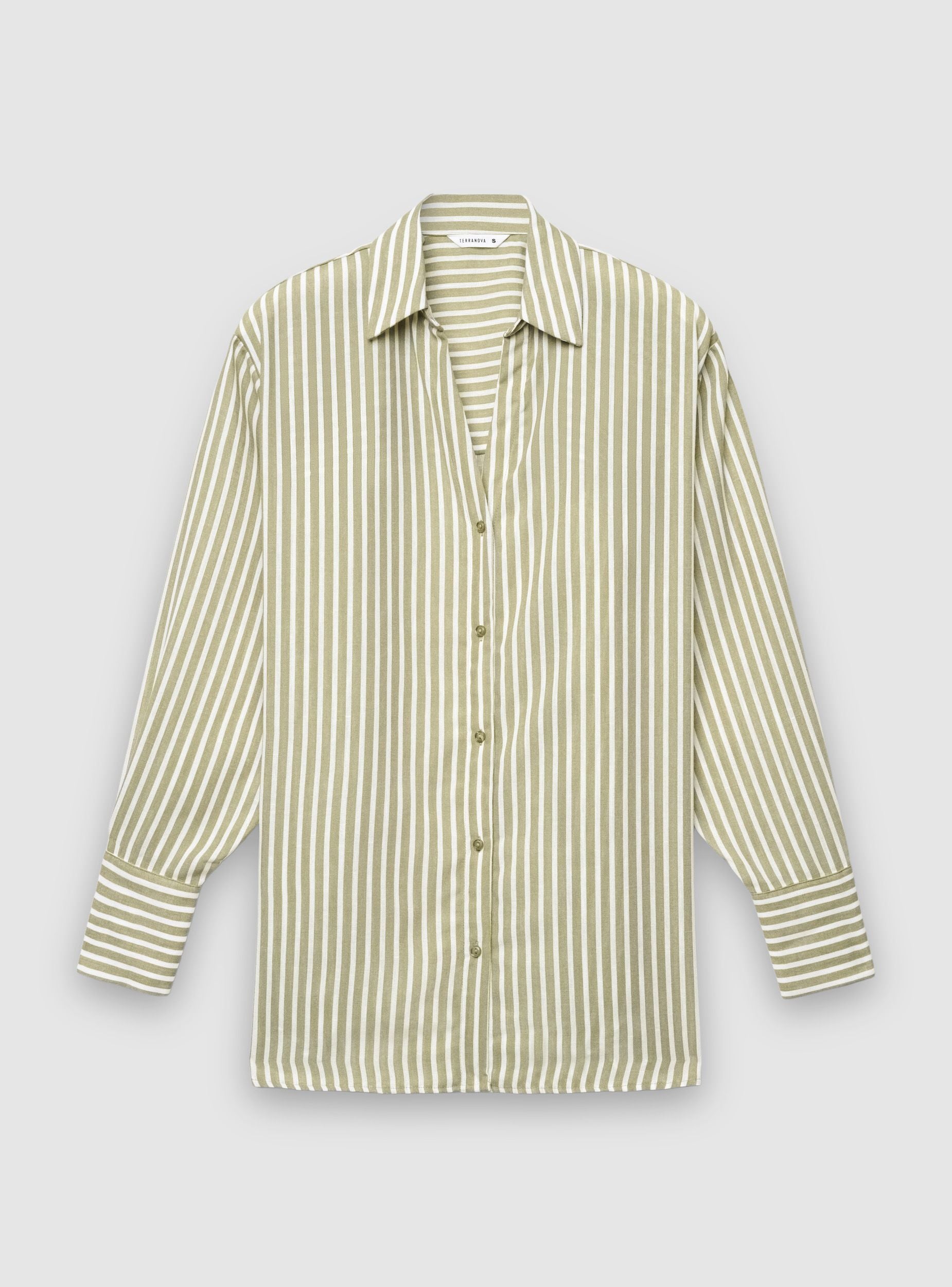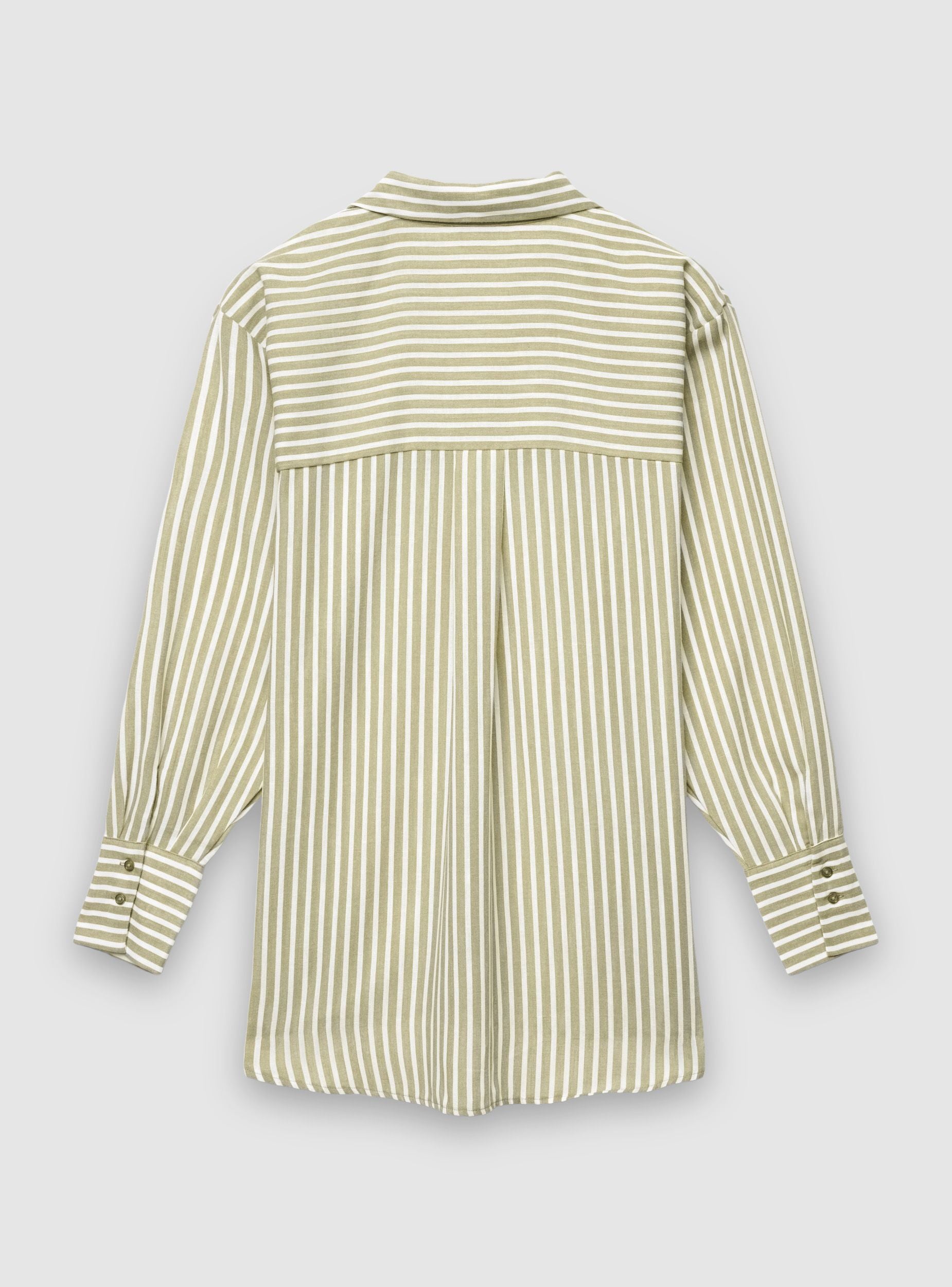 Camicia da donna a righe con vestibilità oversize, ideale per look casual o urban. Modello con colletto classico, maniche lunghe e chiusura frontale con bottoni. Lunghezza normale, facile da abbinare a jeans o pantaloni eleganti per outfit versatili dal lavoro al tempo libero.Dettagli
