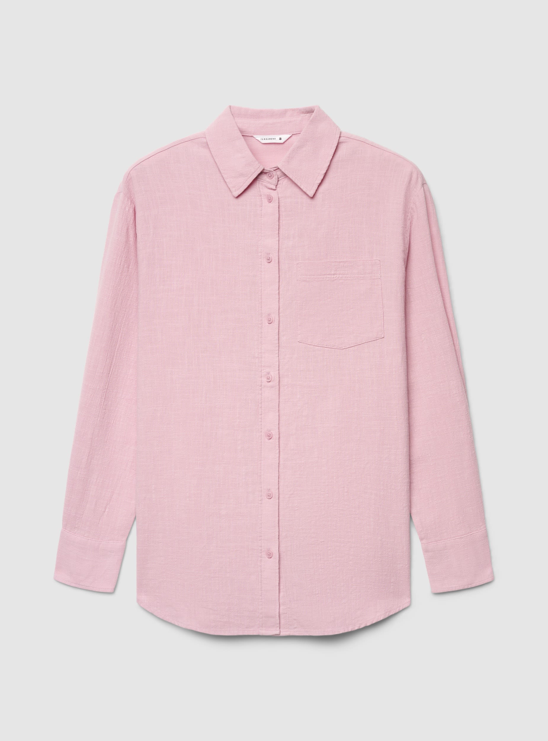 Camicia da donna a tinta unita con collo classico e maniche lunghe, ideale per l’ufficio e il tempo libero. Chiusura frontale con bottoni e taschino applicato sul petto, fondo stondato per indossarla anche aperta su top o maglietta. Vestibilità regular che si abbina a jeans o pantaloni eleganti per look versatili dal giorno alla sera.Dettagli