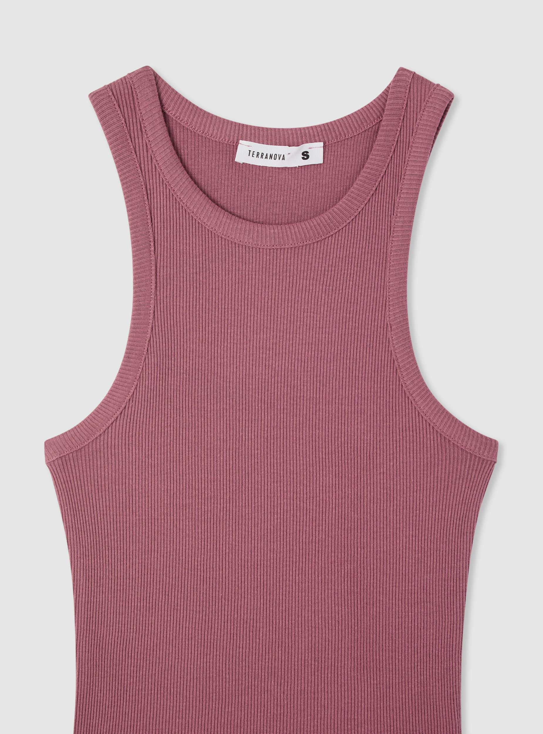 Canotta da donna a tinta unita con spalla larga e scollo rotondo. Il design in costina valorizza la silhouette e offre una vestibilità confortevole. Lunghezza regolare ideale da indossare sotto camicie aperte, con jeans o pantaloncini per il tempo libero. Senza maniche, bordi rifiniti e linea aderente che segue il corpo, perfetta per look urban e casual in ogni stagione.Dettagli
