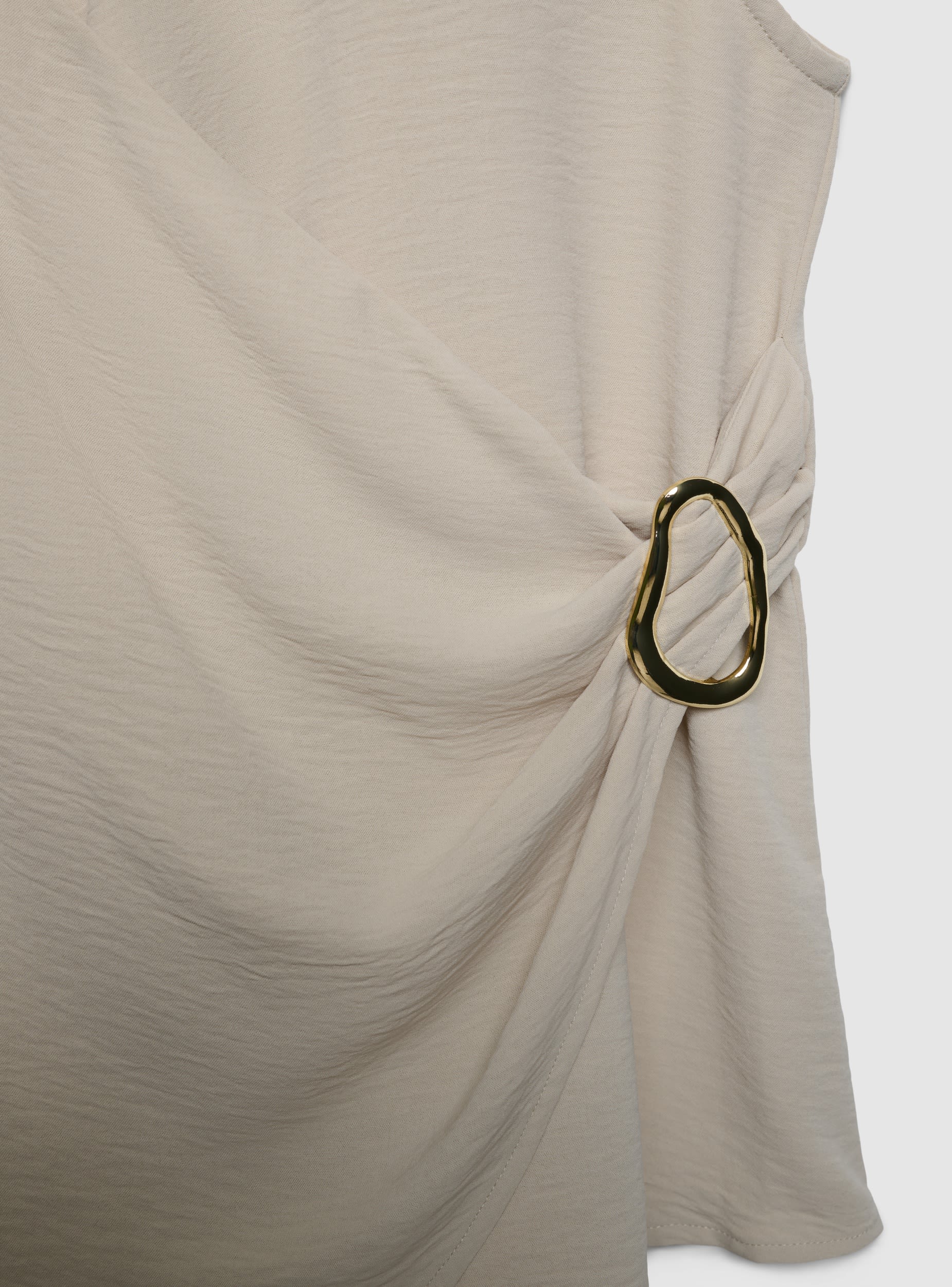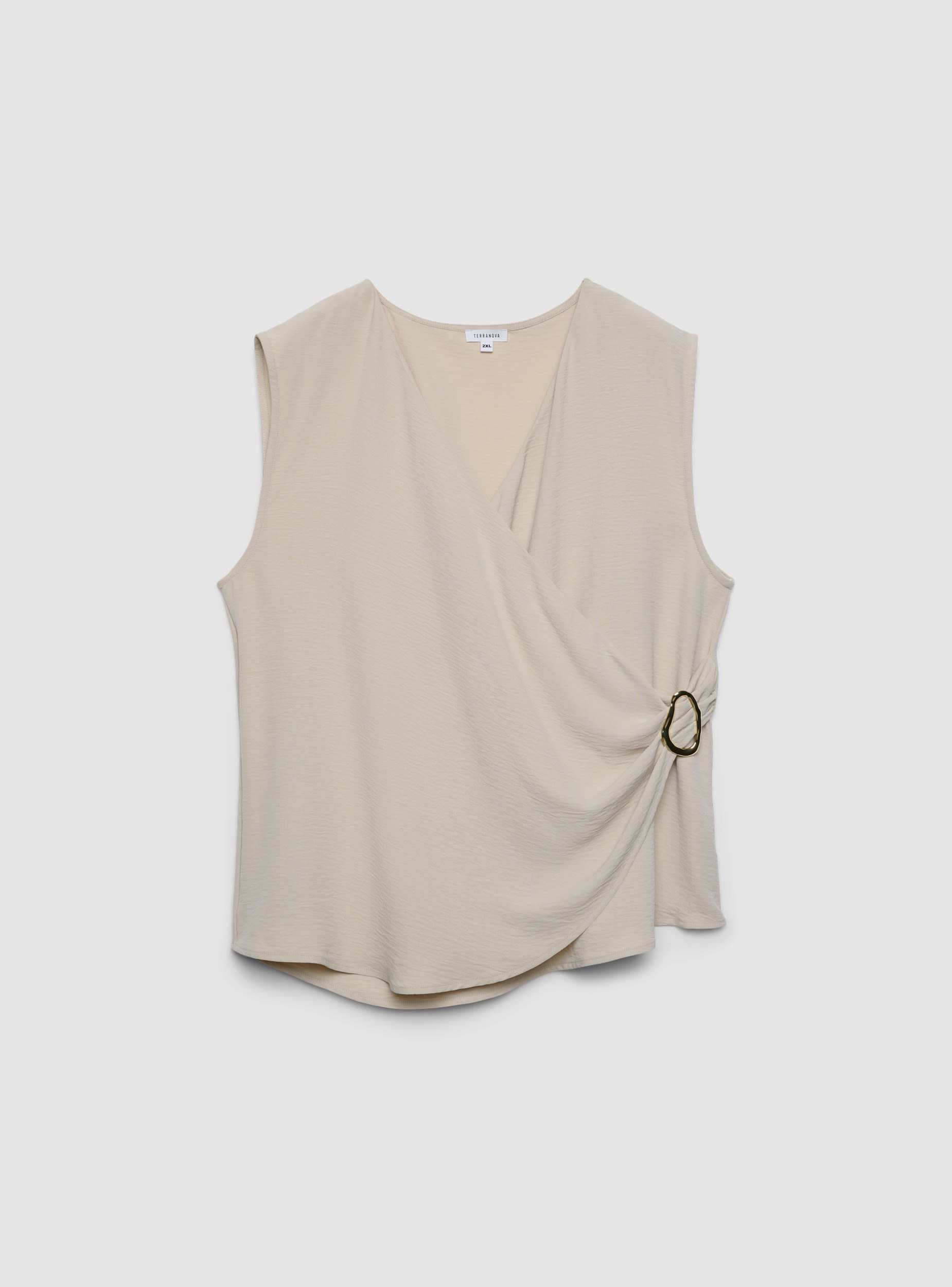 Top da donna con design incrociato sul davanti e dettaglio gioiello sul fianco. Perfetta per outfit eleganti o per elevare look casual con jeans o gonne. Scollo a V, vestibilità regular e lunghezza normale che valorizza la figura. Fantasia a tinta unita, facile da abbinare a blazer o pantaloni sartoriali per occasioni serali o ufficio.Dettagli