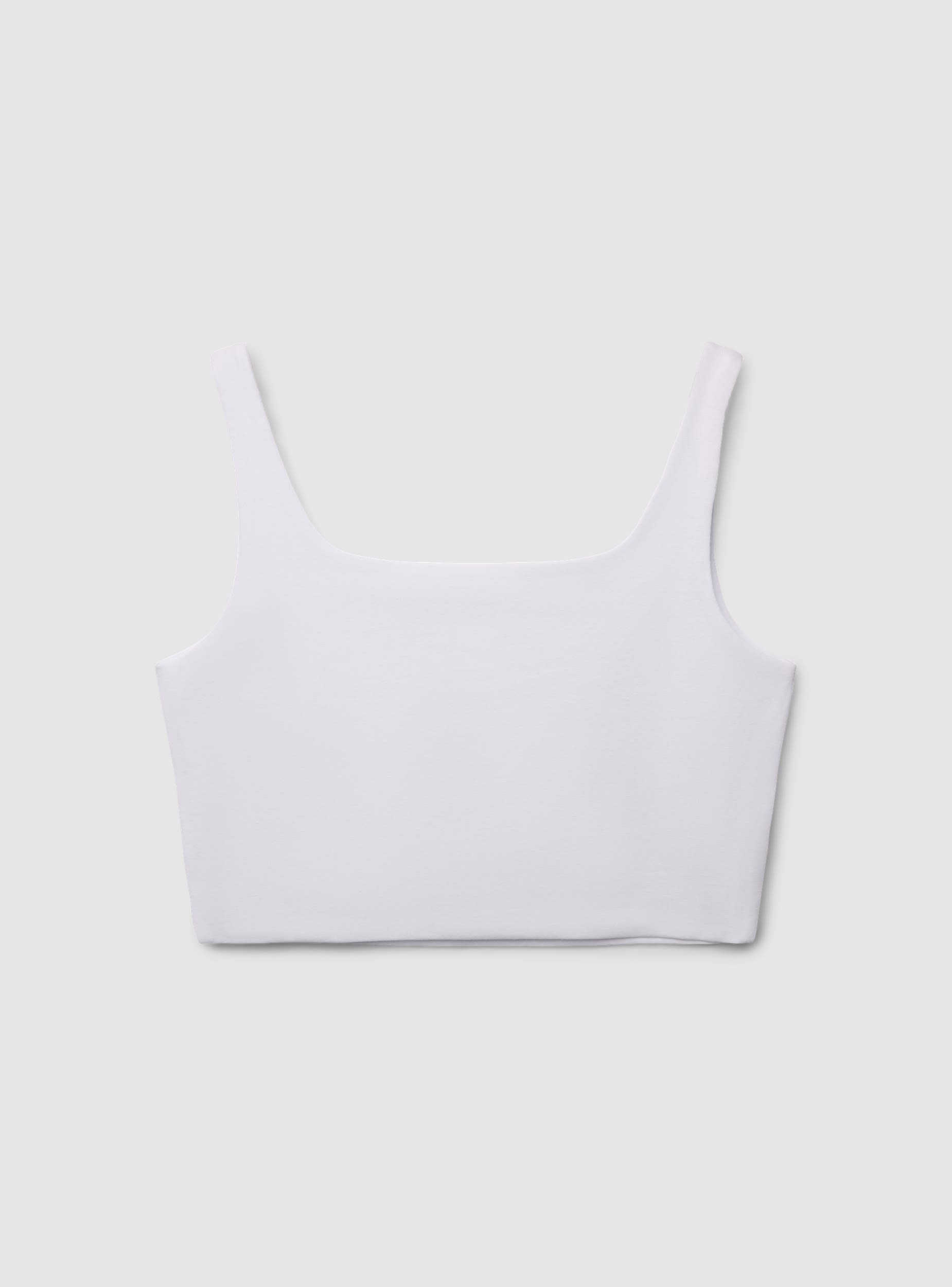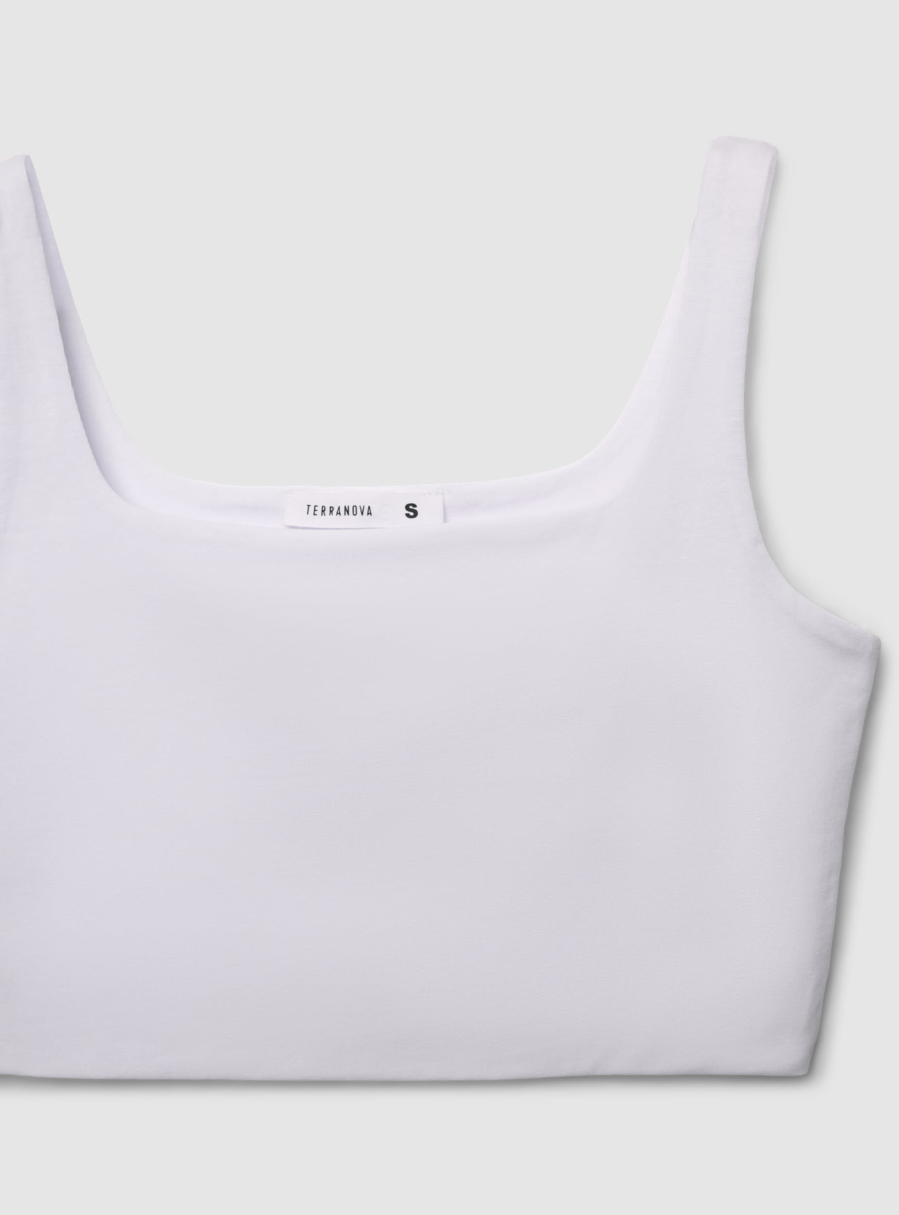 Bra top da donna in tinta unita, dal taglio corto e scollo quadrato. Perfetta per look casual e trendy, si abbina a jeans a vita alta, gonne o pantaloncini per il tempo libero. Spalline larghe per maggiore comfort, vestibilità aderente che valorizza la figura. Ideale sotto camicie aperte o felpe leggere, offre versatilità nelle sovrapposizioni durante la stagione calda.Dettagli