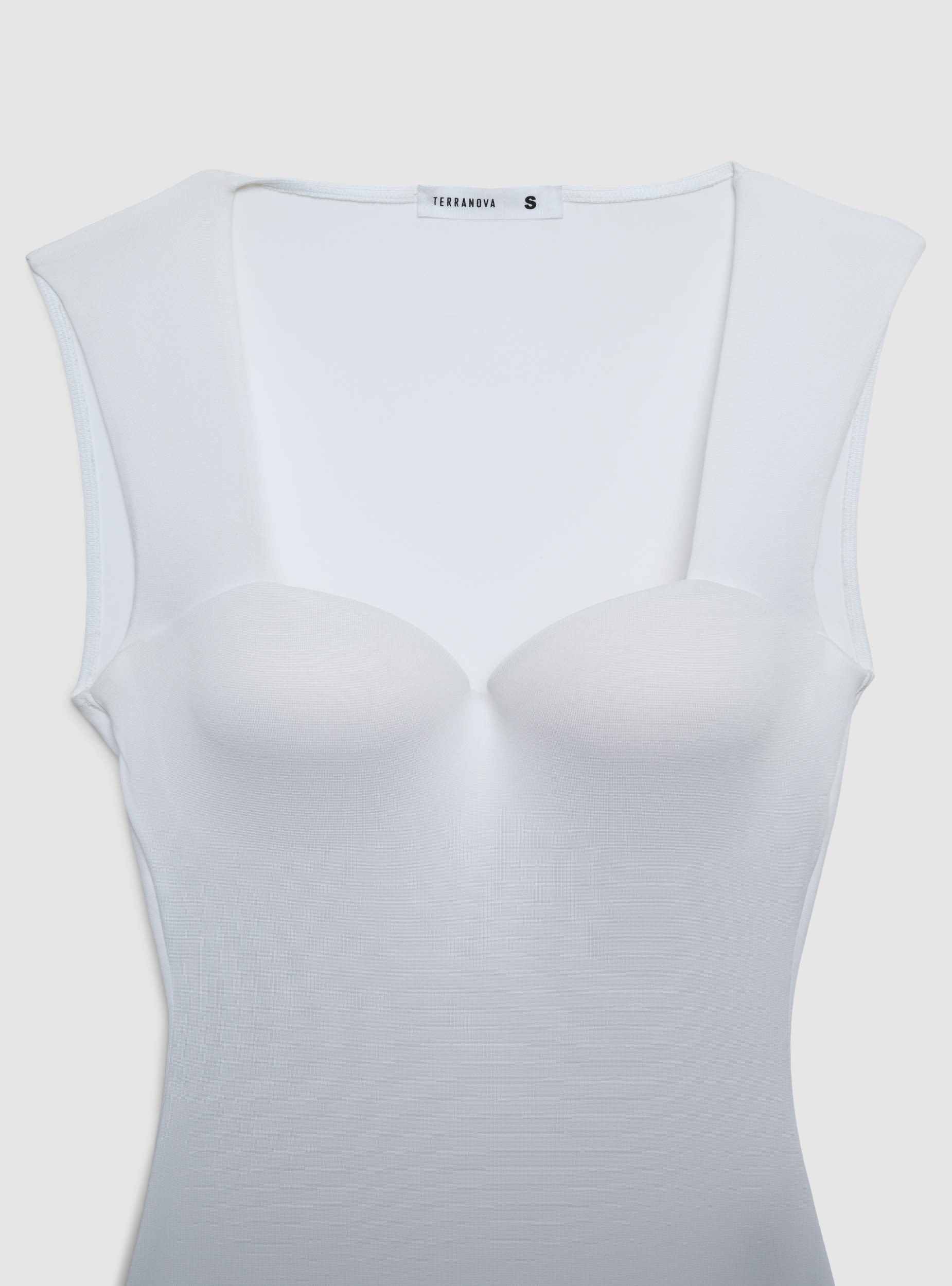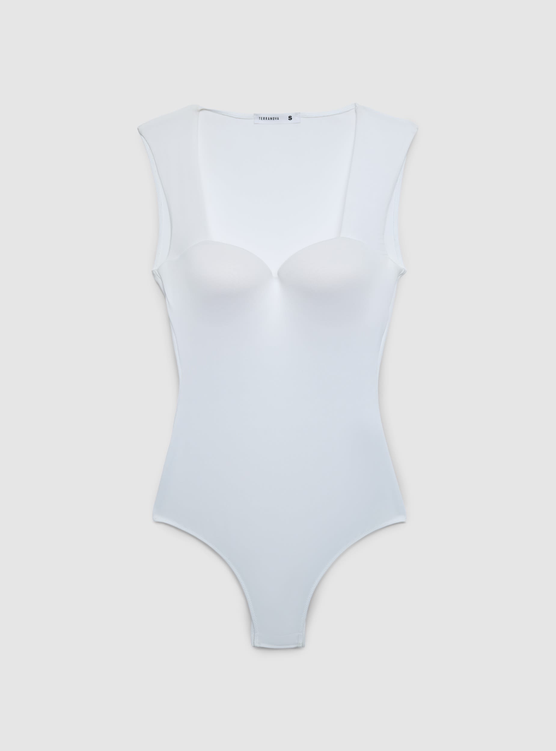 Body da donna a tinta unita con scollo a cuore e coppe preformate. Vestibilità aderente che valorizza la silhouette, ideale sotto blazer o camicie per look da ufficio e serate, oppure con jeans e gonne per outfit quotidiani.Dettagli