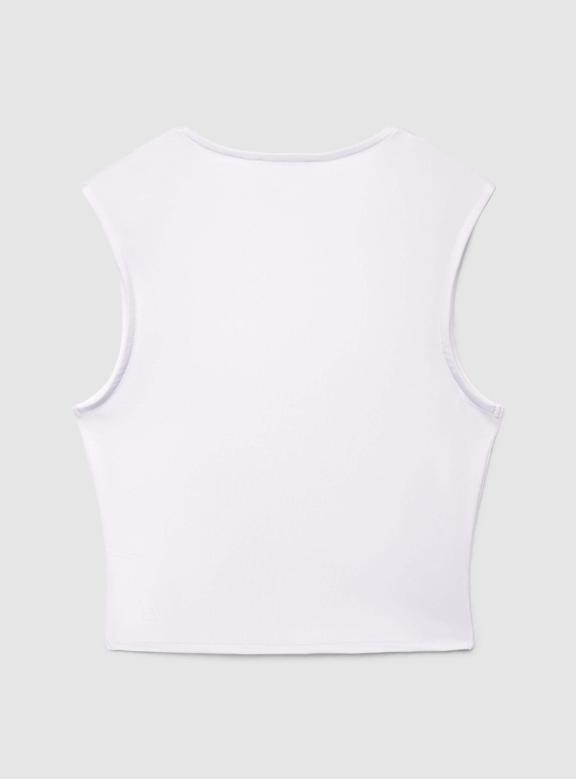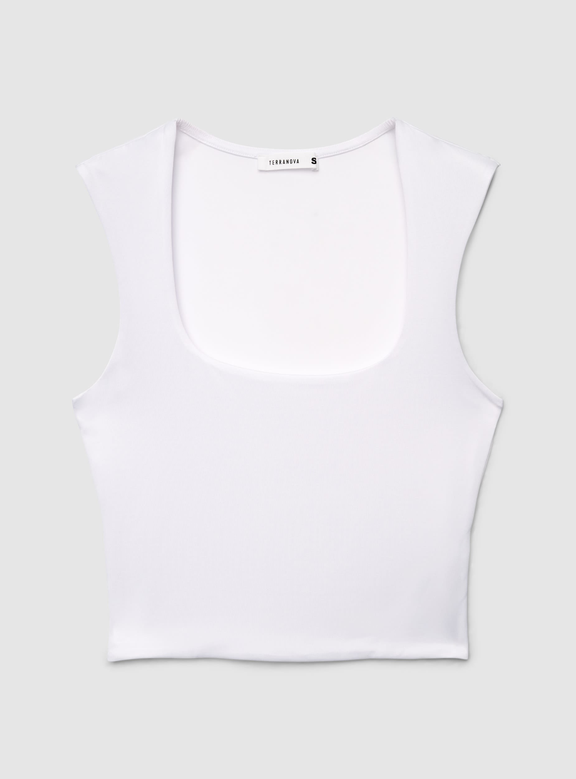 Top da donna a tinta unita dal taglio crop, pensato per valorizzare la silhouette con una linea pulita. Lo scollo squadrato e le spalline larghe donano sostegno e un look deciso, ideale sia da solo sia sotto blazer o camicie aperte. Modello senza maniche, con vestibilità elasticizzata perfetta con jeans, gonne o pantaloni a vita alta.Dettagli