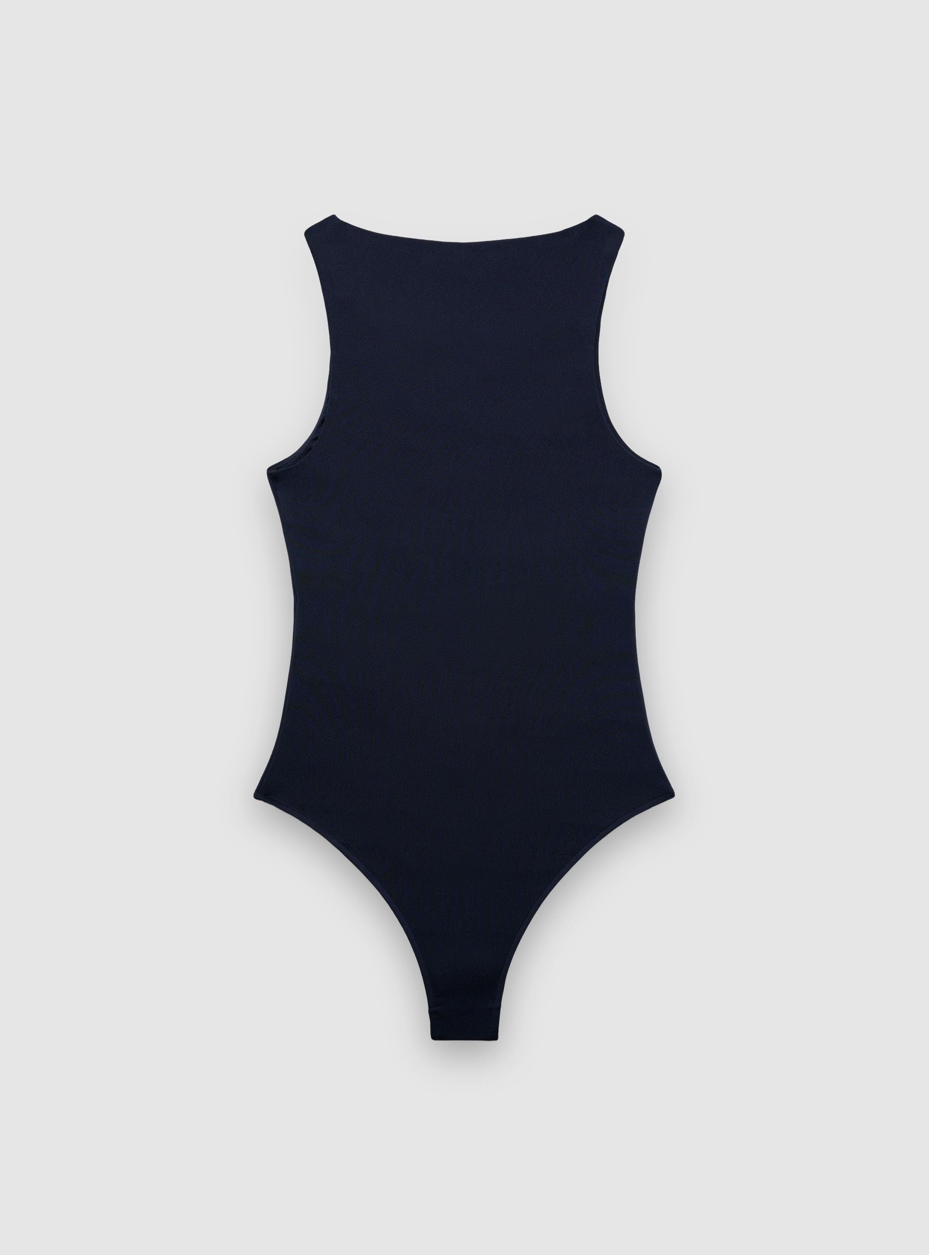 Body da donna a tinta unita con scollatura americana e spalline larghe. Chiusura con bottoni a pressione al cavallo per praticità. Vestibilità aderente che segue la linea del corpo, ideale sotto blazer o camicie per look curati, ma perfetto anche con jeans o gonne per outfit casual.Dettagli