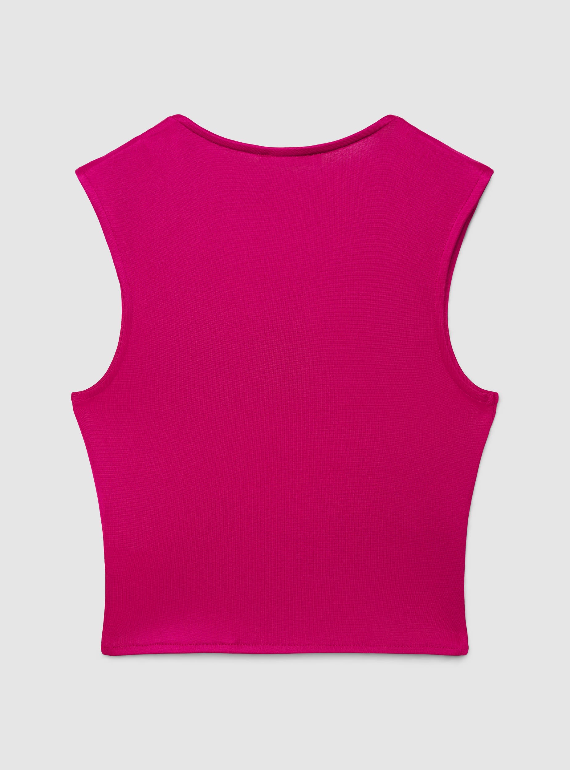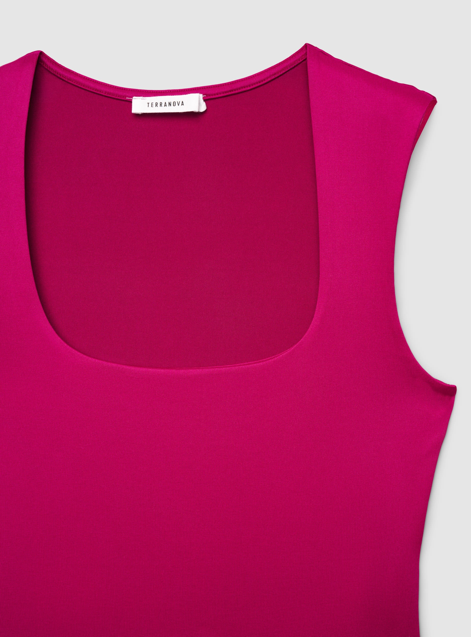 Top da donna a tinta unita dal taglio crop, pensato per valorizzare la silhouette con una linea pulita. Lo scollo squadrato e le spalline larghe donano sostegno e un look deciso, ideale sia da solo sia sotto blazer o camicie aperte. Modello senza maniche, con vestibilità elasticizzata perfetta con jeans, gonne o pantaloni a vita alta.Dettagli