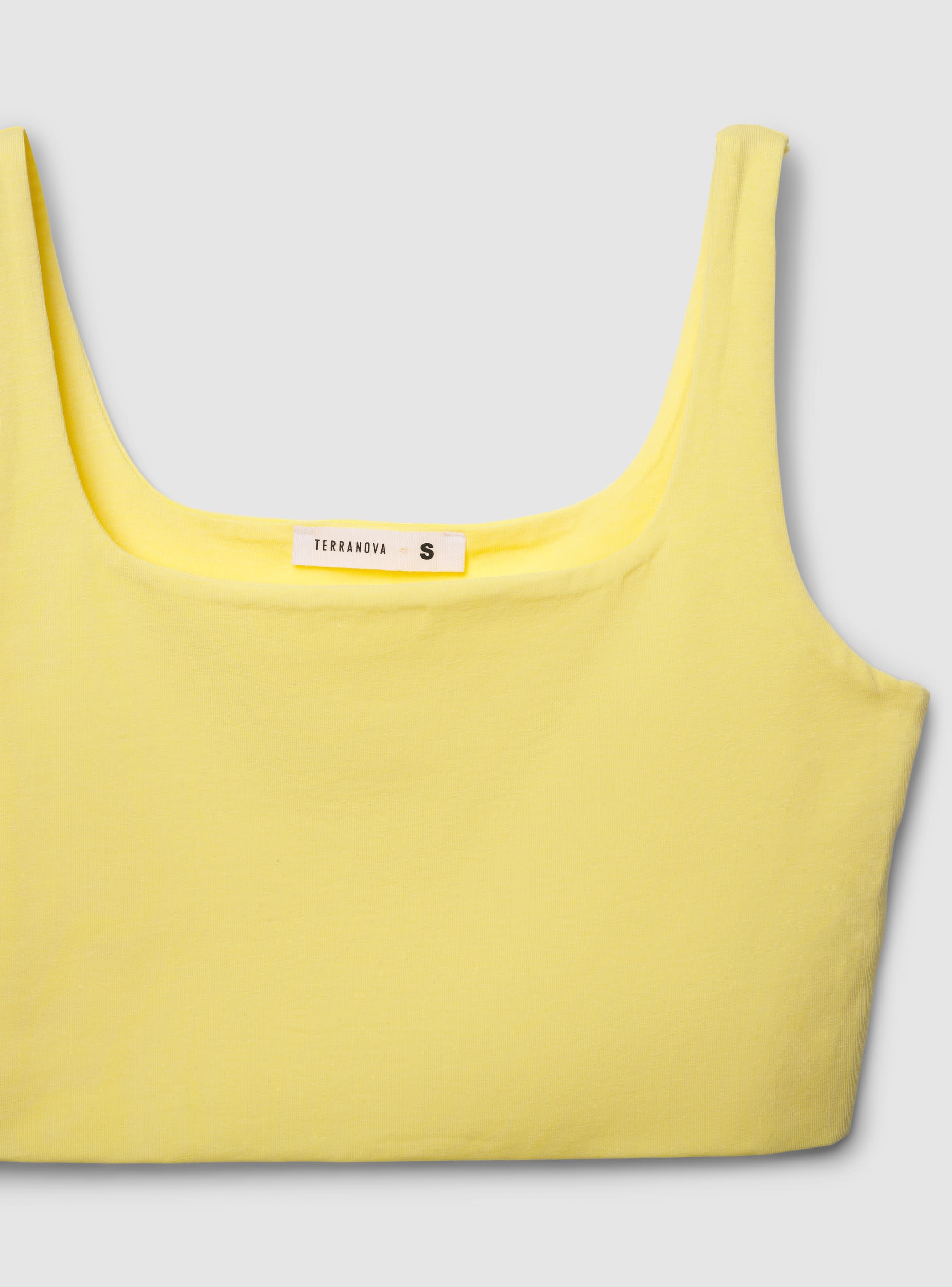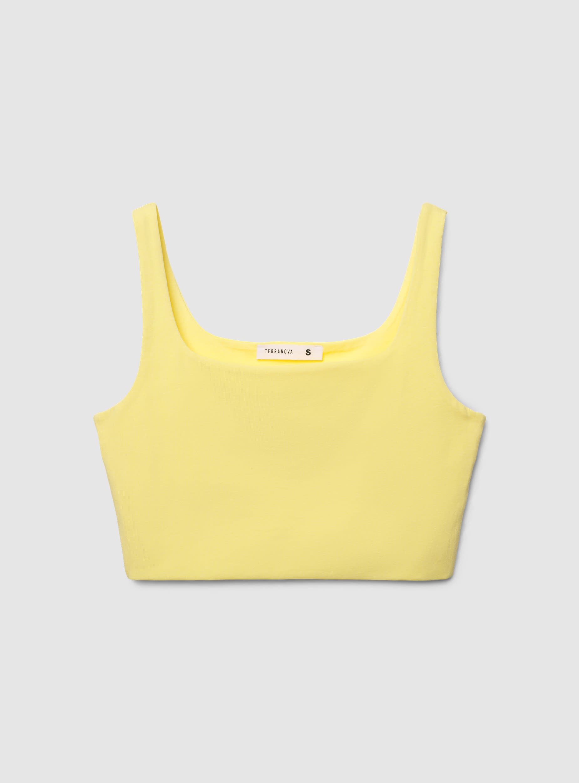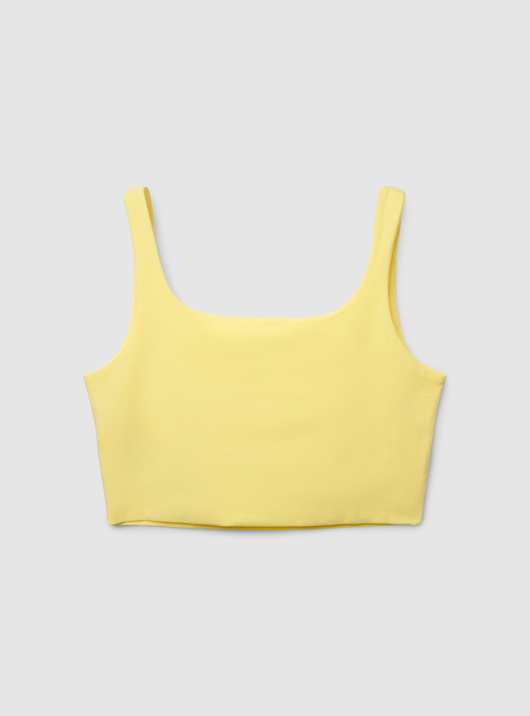 Bra top da donna in tinta unita, dal taglio corto e scollo quadrato. Perfetta per look casual e trendy, si abbina a jeans a vita alta, gonne o pantaloncini per il tempo libero. Spalline larghe per maggiore comfort, vestibilità aderente che valorizza la figura. Ideale sotto camicie aperte o felpe leggere, offre versatilità nelle sovrapposizioni durante la stagione calda.Dettagli