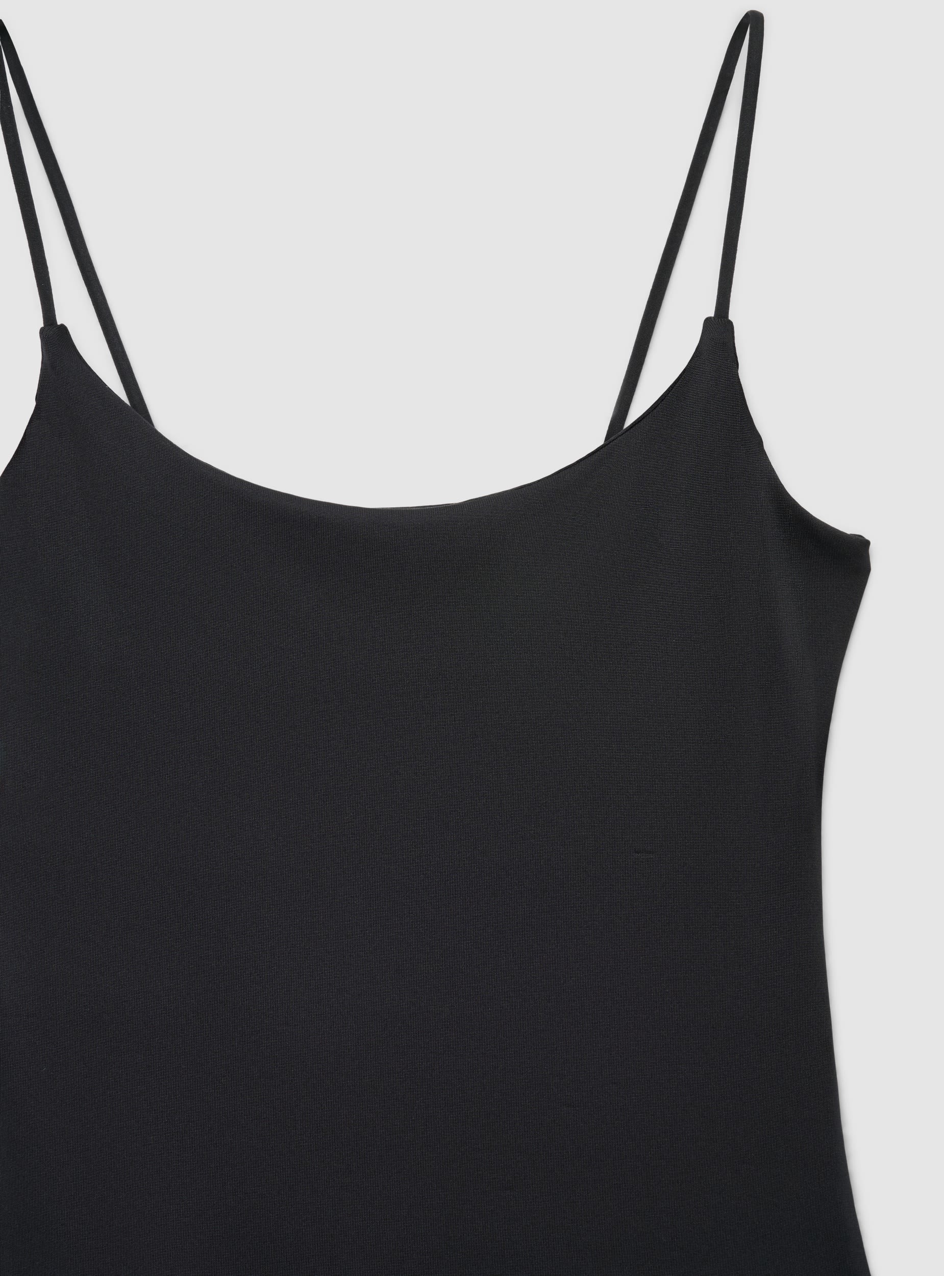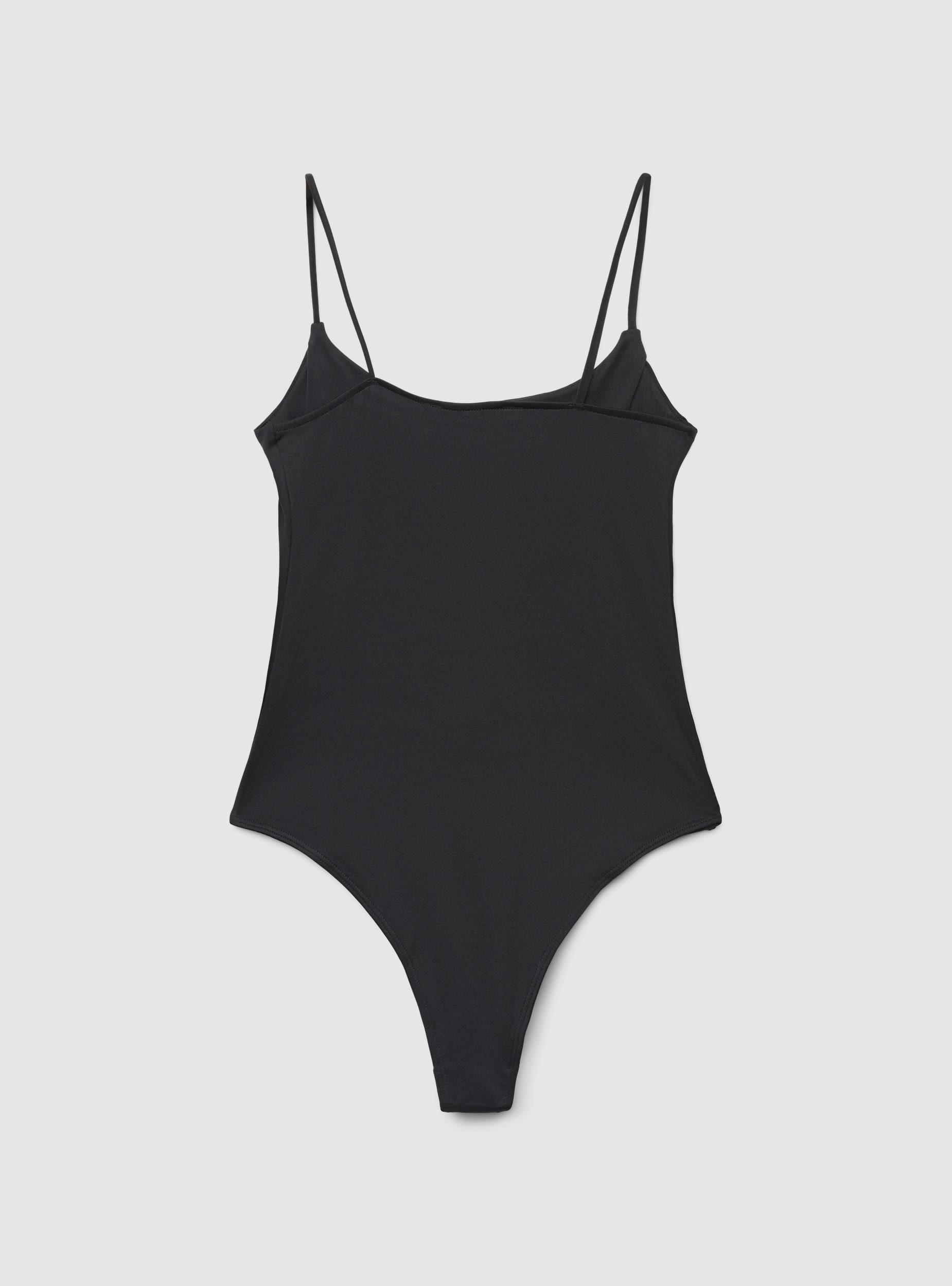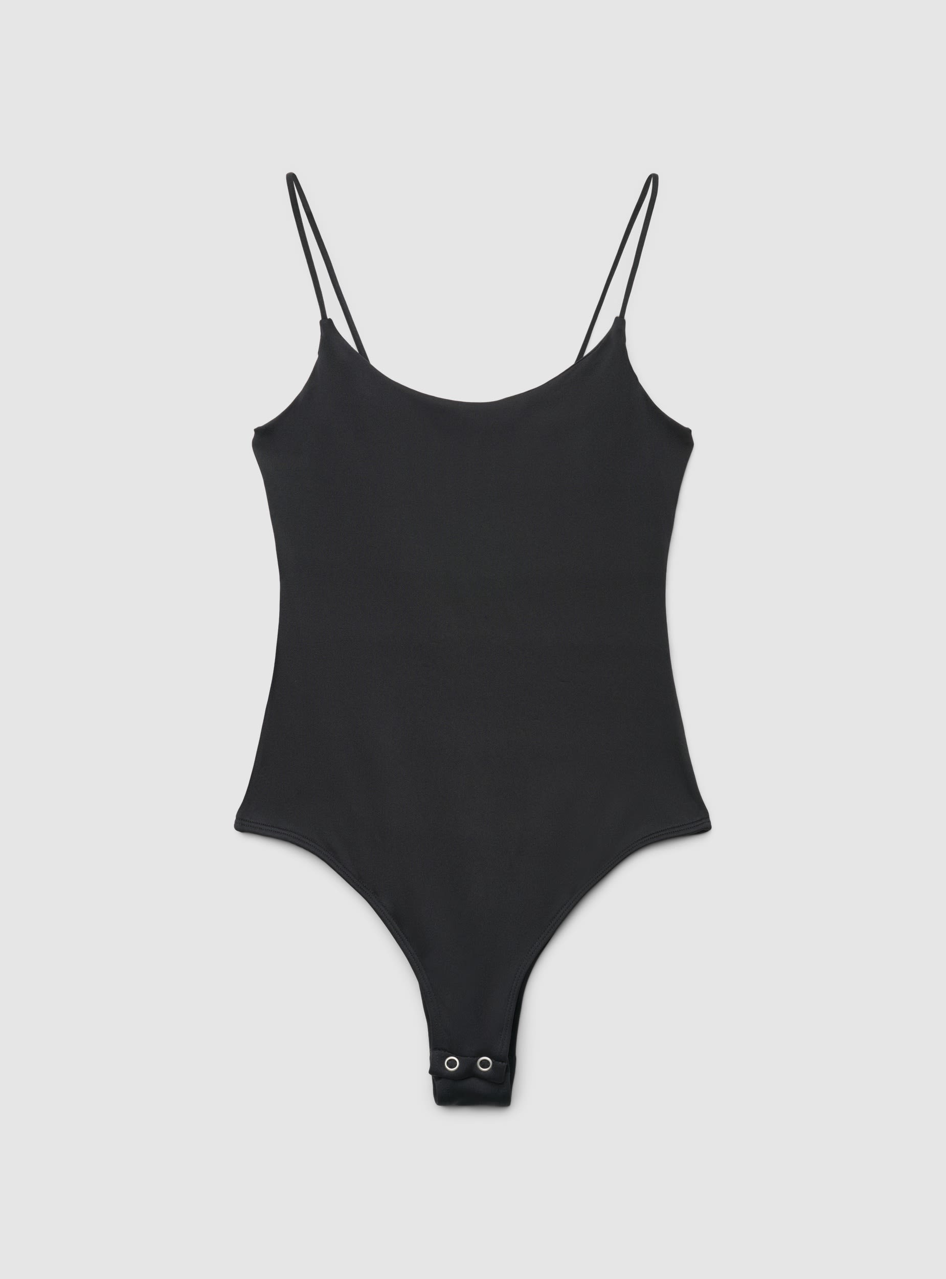 Body da donna a tinta unita, ideale come sottogiacca o top per look da giorno e da sera. Design senza maniche con spalline sottili e scollo arrotondato che valorizza la linea del décolleté. Linea pulita e confortevole, facile da abbinare a jeans, gonne o pantaloni a vita alta. Chiusura con bottoni a pressione al cavallo per maggiore praticità.Dettagli