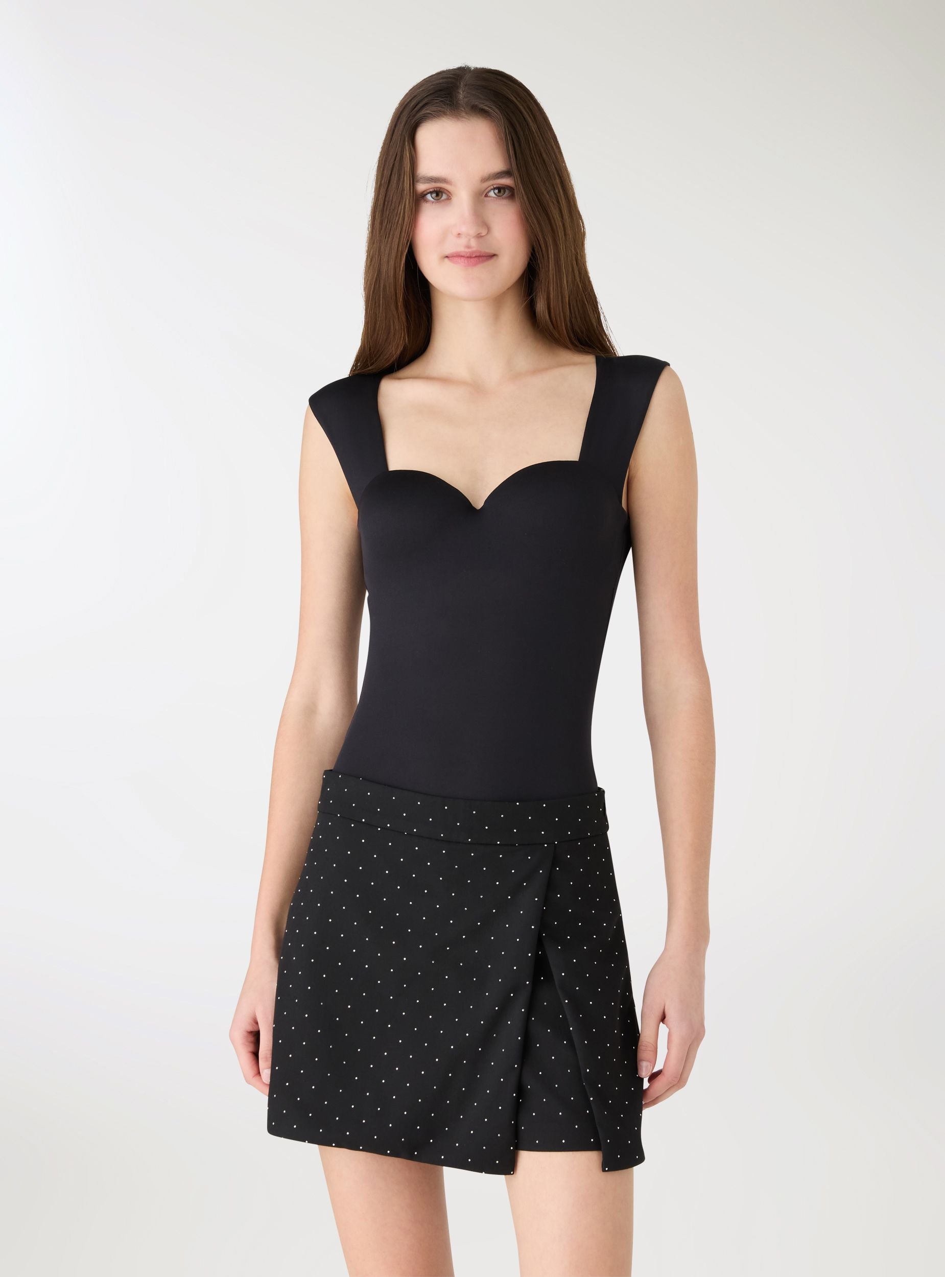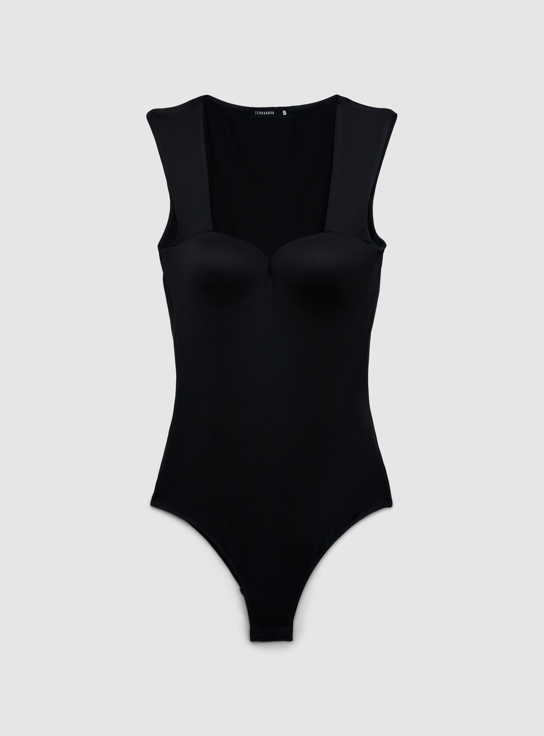 Body da donna a tinta unita con scollo a cuore e coppe preformate. Vestibilità aderente che valorizza la silhouette, ideale sotto blazer o camicie per look da ufficio e serate, oppure con jeans e gonne per outfit quotidiani.Dettagli
