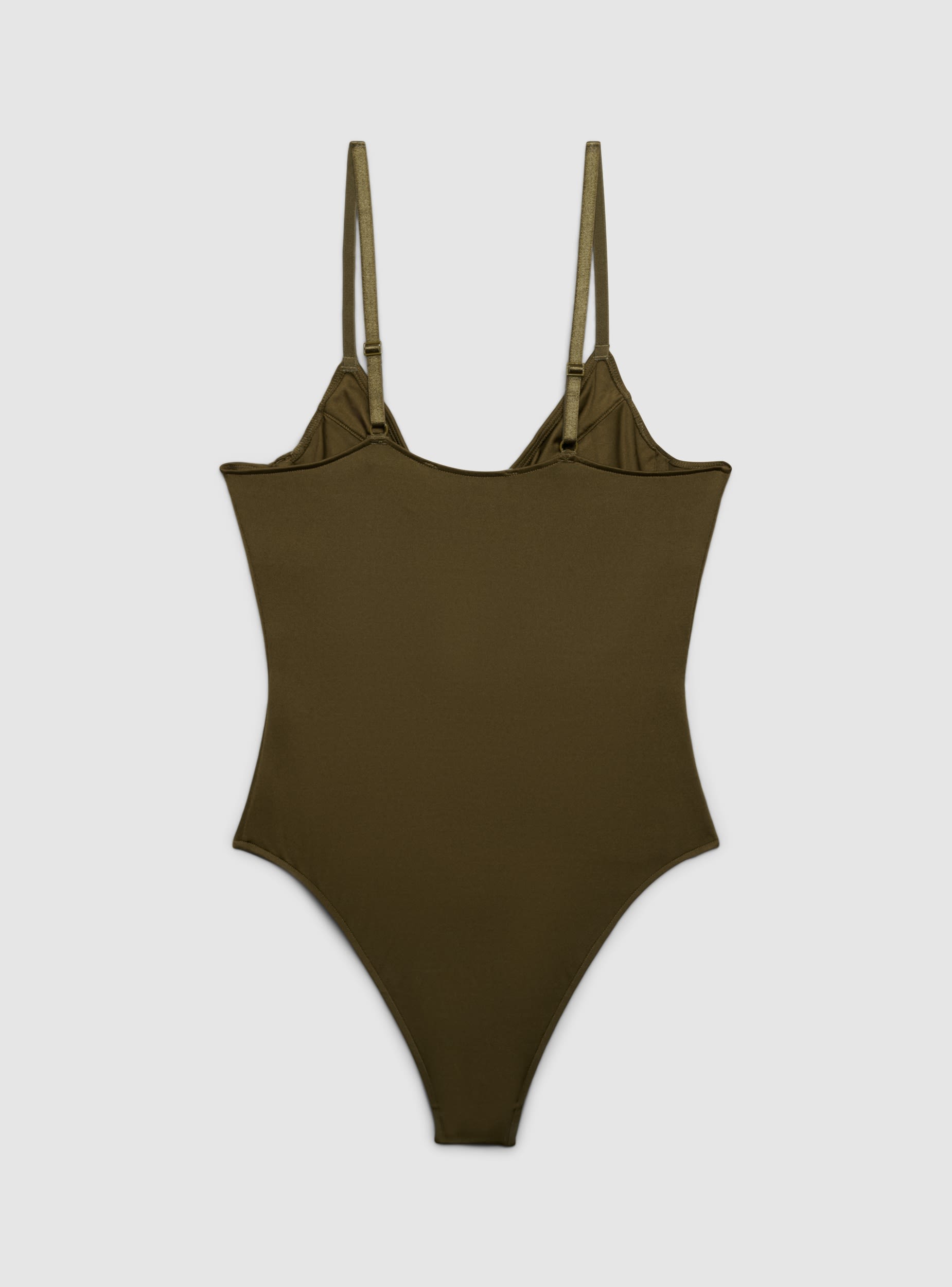 Body da donna a tinta unita con coppe sagomate e ferretti per un sostegno definito. Spalline sottili regolabili. Chiusura inferiore pratica, vestibilità aderente che segue le forme. Perfetto sotto blazer e jeans per un look serale, oppure con pantaloni palazzo per occasioni eleganti.Dettagli