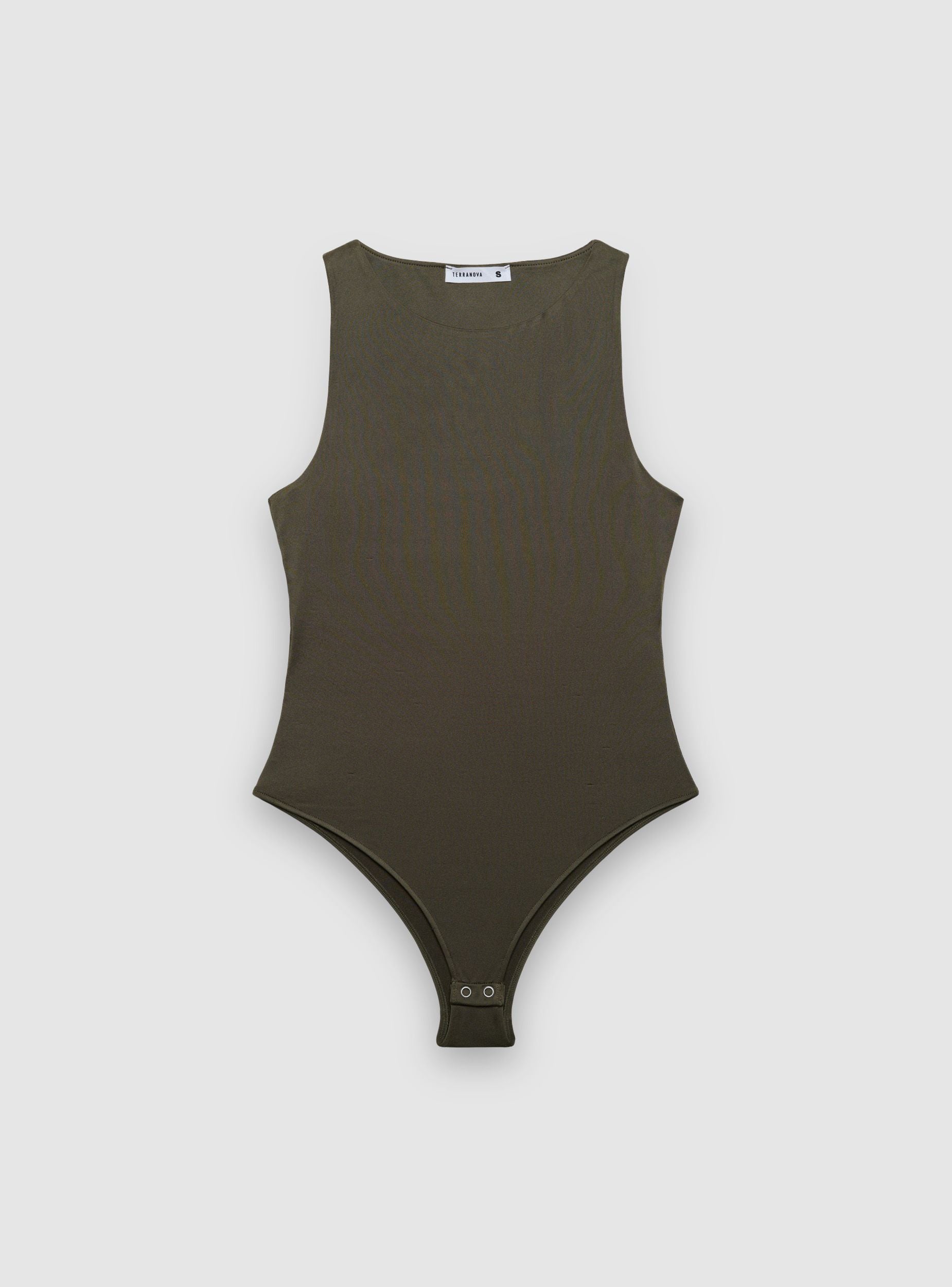 Body da donna a tinta unita con scollatura americana e spalline larghe. Chiusura con bottoni a pressione al cavallo per praticità. Vestibilità aderente che segue la linea del corpo, ideale sotto blazer o camicie per look curati, ma perfetto anche con jeans o gonne per outfit casual.Dettagli
