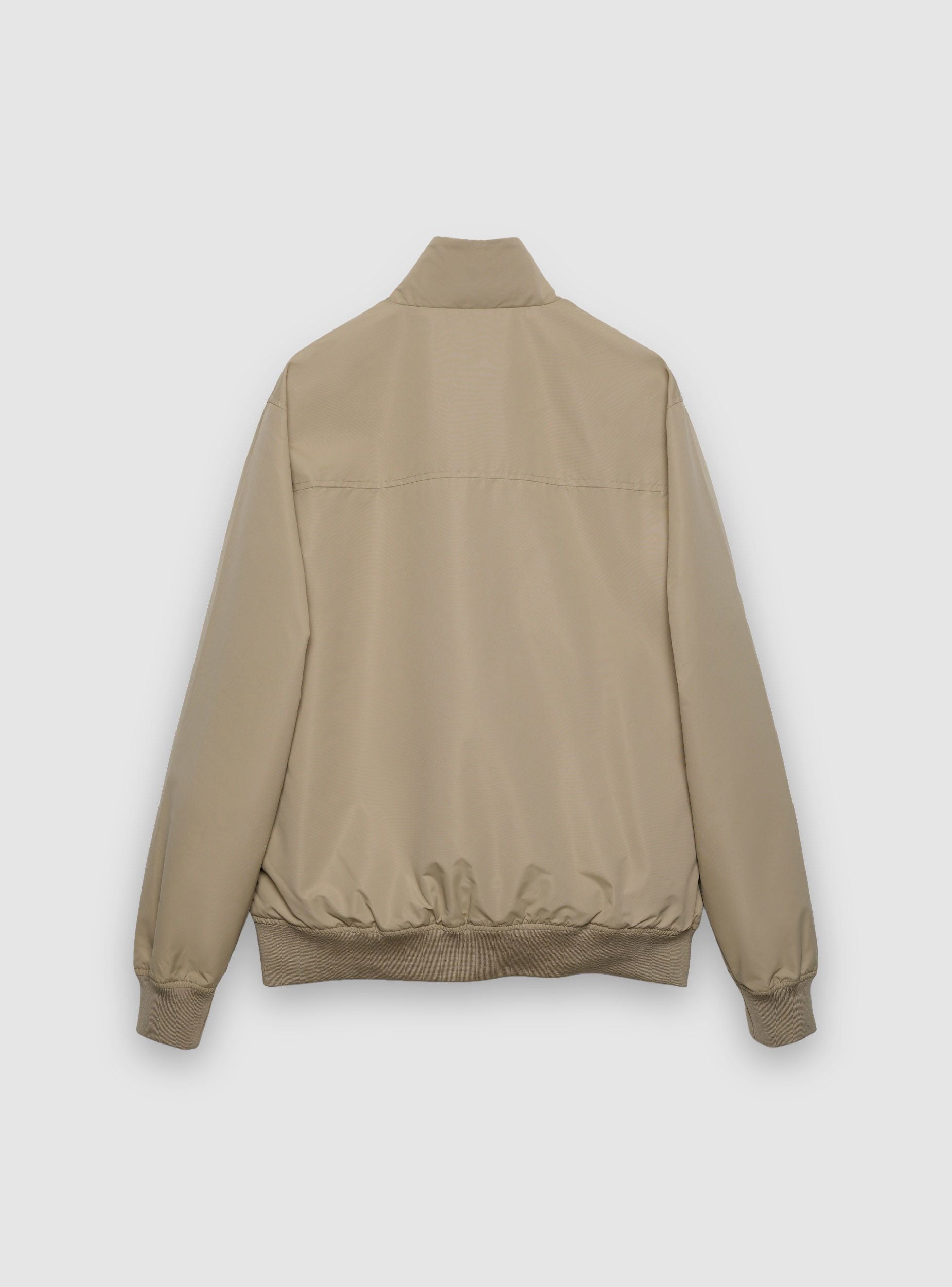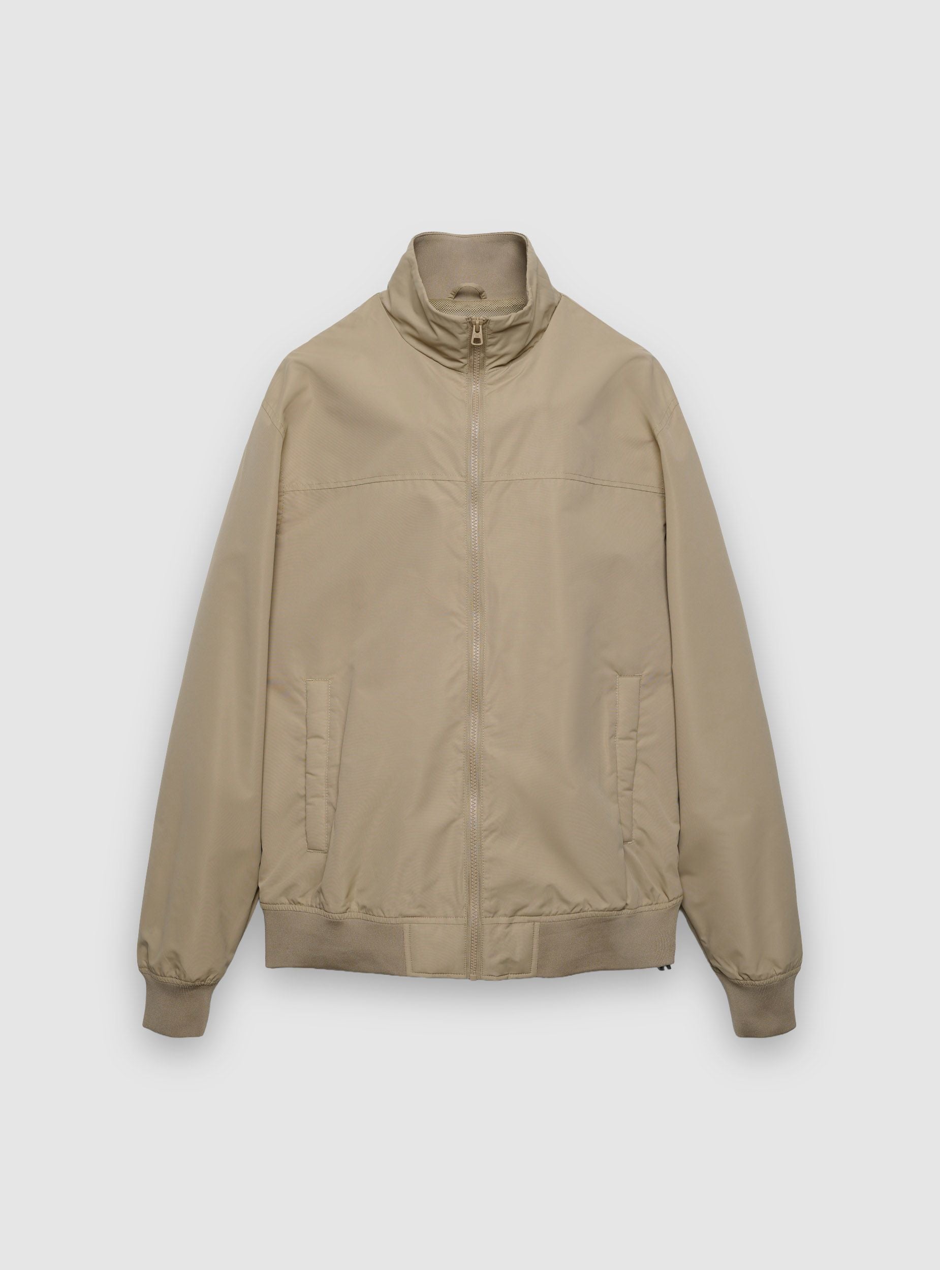 Giubbino da uomo a tinta unita con zip frontale e collo alto. Modello leggero, senza cappuccio, con polsini e fondo elasticizzati per una vestibilità confortevole. Tasche laterali a filetto utili per i piccoli oggetti. Ideale per look casual e urban, perfetto sopra maglietta e jeans.Dettagli
