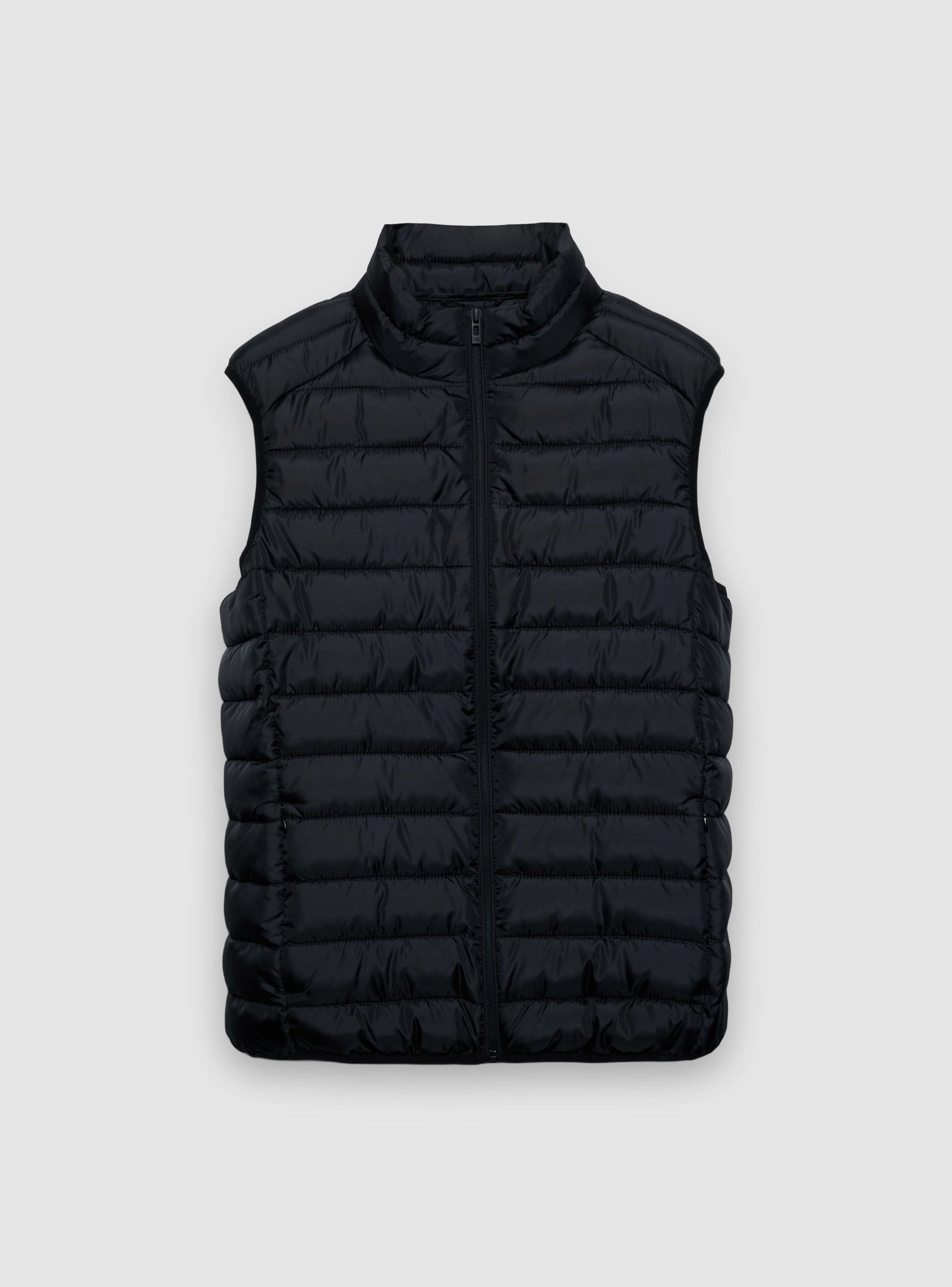 Smanicato da uomo a tinta unita con imbottitura leggera. Modello senza maniche con collo alto e chiusura frontale con zip, ideale per layering su felpe o magliette nelle mezze stagioni. Trapuntatura orizzontale che valorizza la vestibilità e due tasche laterali pratiche. Perfetto per outfit casual o sportivi, si abbina a jeans e sneakers per un look dinamico.Dettagli