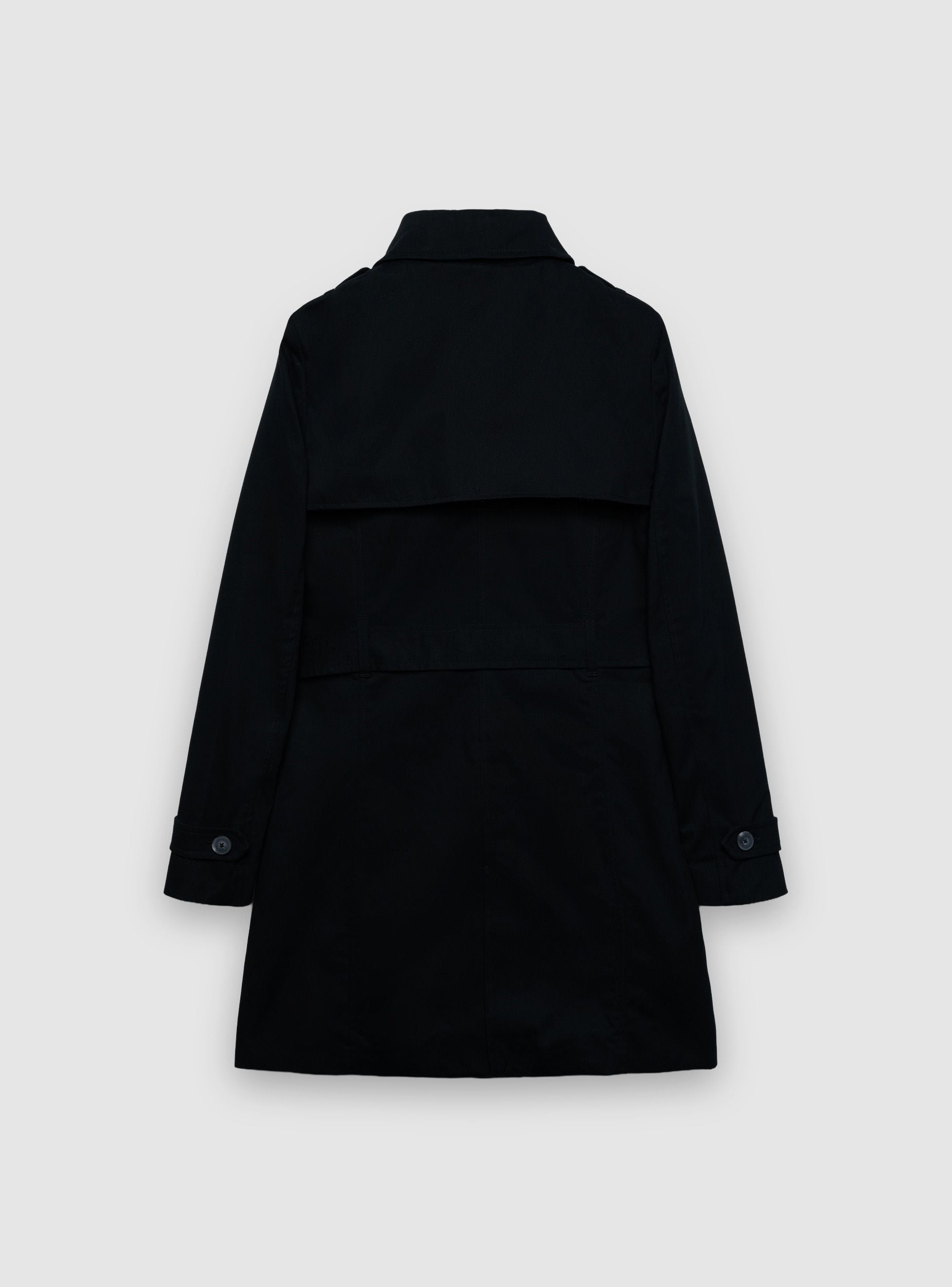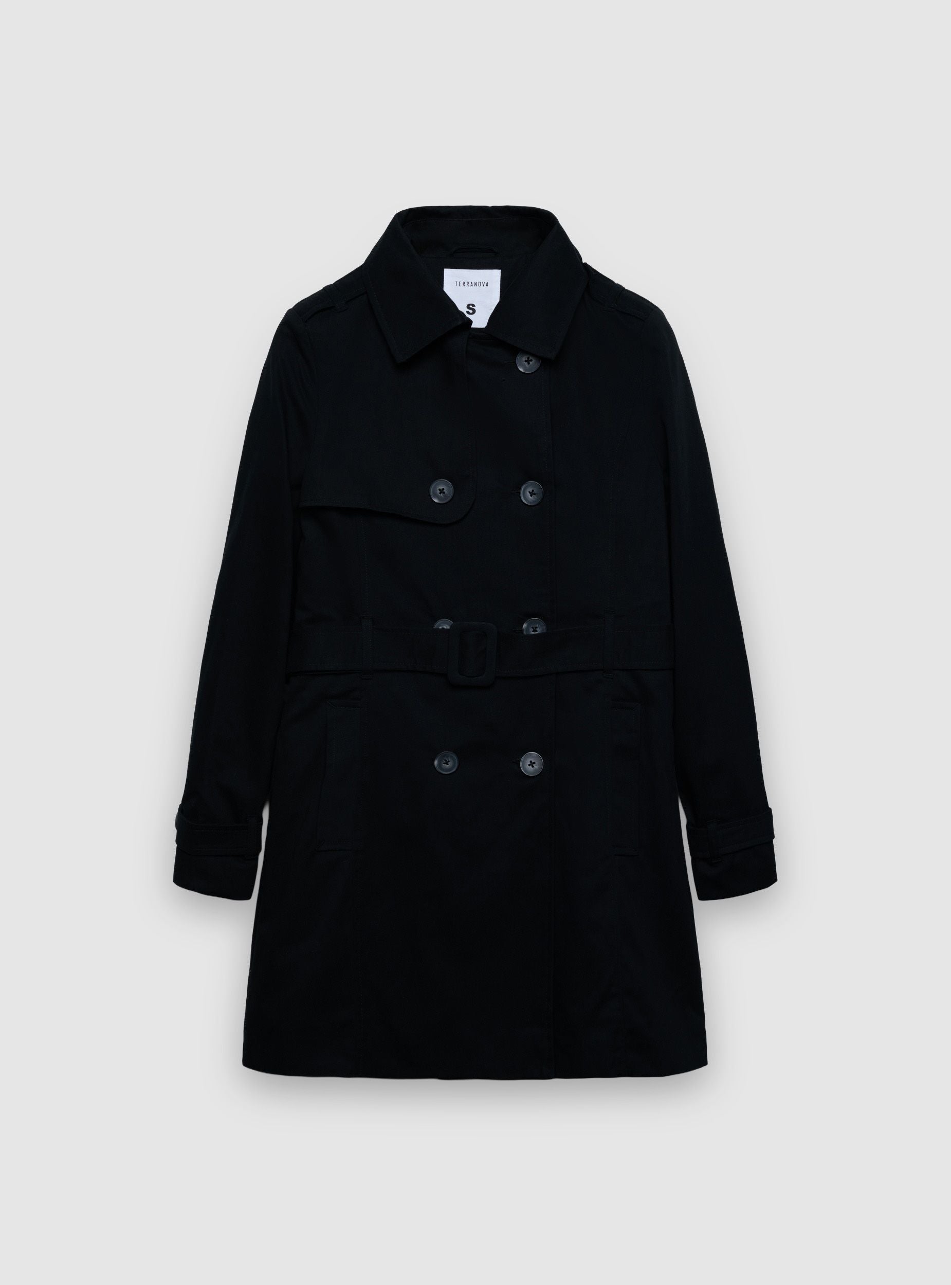 Cappotto da donna in tinta unita dallo stile trench. Modello doppiopetto con colletto classico, cintura con fibbia per definire il punto vita. Maniche lunghe con listini regolabili ai polsi, tasche laterali. Perfetto per l’ufficio o il tempo libero, si abbina a jeans e stivaletti oppure a un abito midi per un look urbano curato.Dettagli