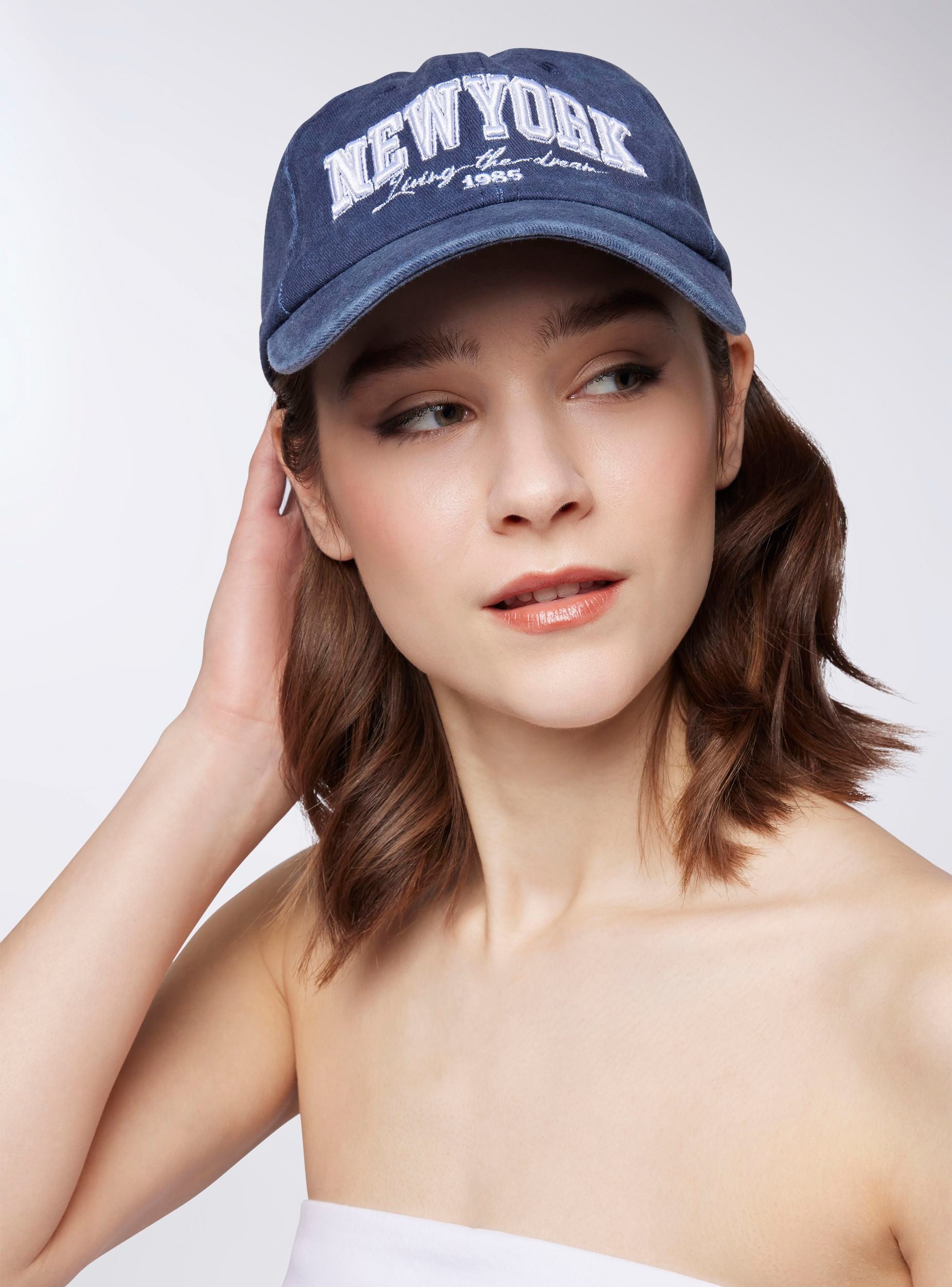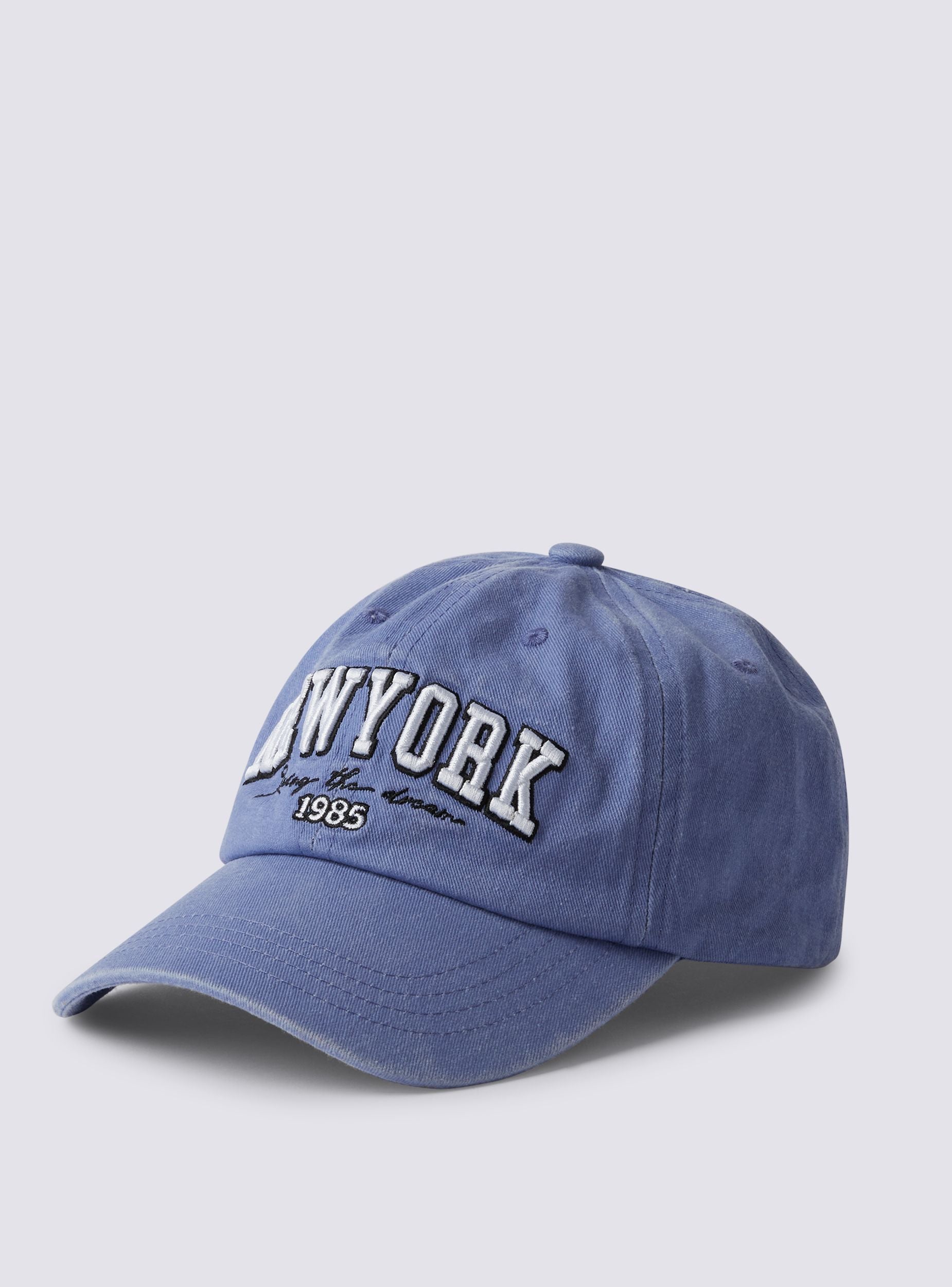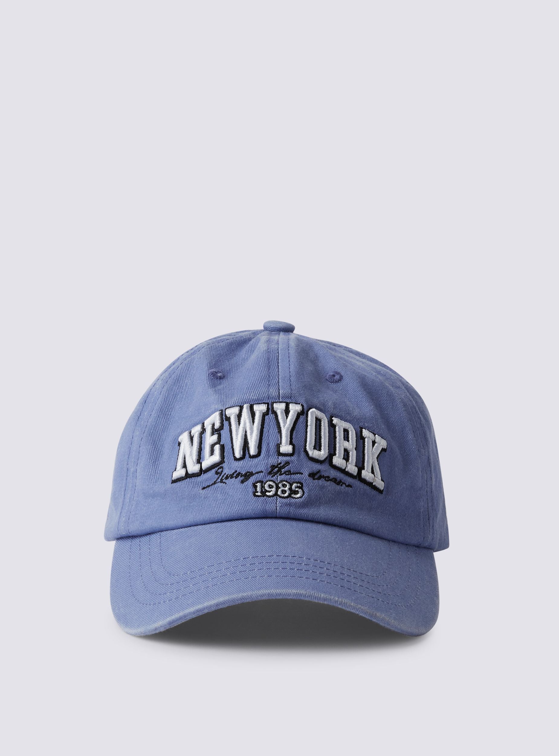 Cappellino da donna in stile baseball con visiera curva, ideale per un look sportivo e casual. La scritta "New York" spicca sul davanti, accompagnata dalla frase "Living the dream" e dall'anno 1985, aggiungendo un tocco urbano e di tendenza. Il cappellino è regolabile sul retro grazie a una pratica chiusura, garantendo una vestibilità personalizzata e comoda. Perfetto per proteggere dal sole nelle giornate estive o come accessorio alla moda per completare il tuo outfit in ogni occasione.Dettagli