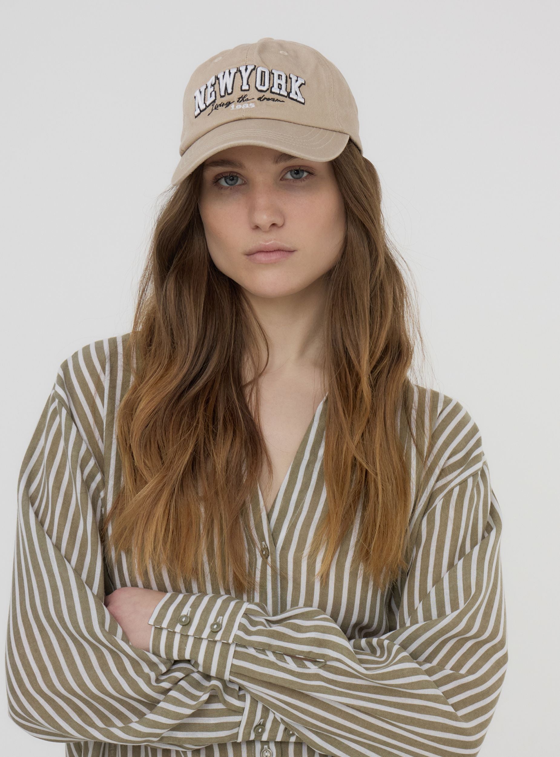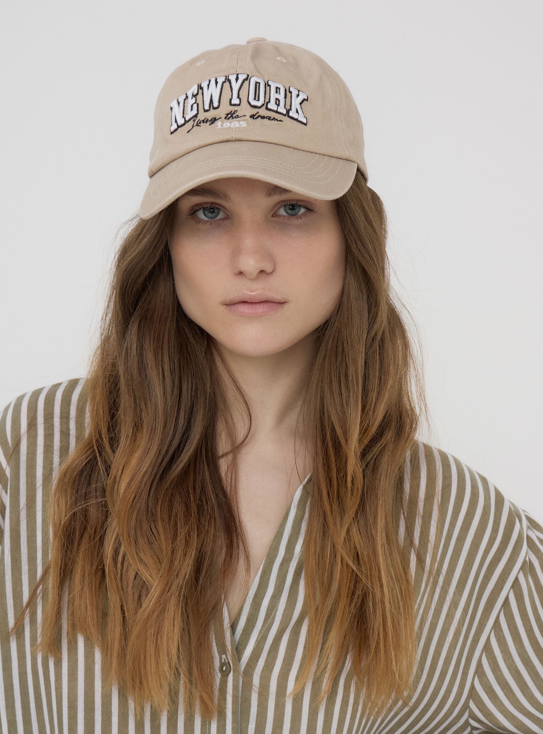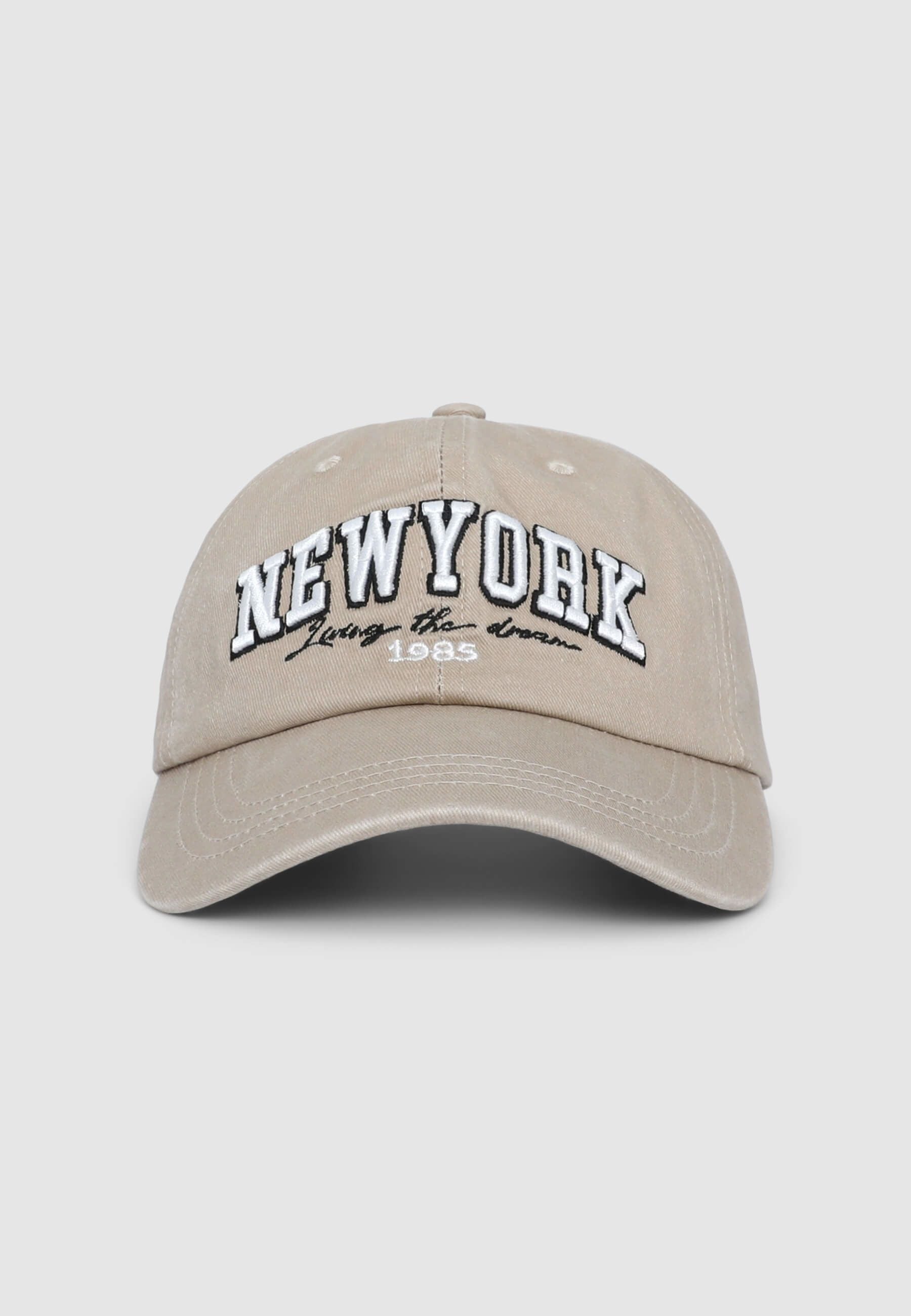 Cappellino da donna in stile baseball con visiera curva, ideale per un look sportivo e casual. La scritta "New York" spicca sul davanti, accompagnata dalla frase "Living the dream" e dall'anno 1985, aggiungendo un tocco urbano e di tendenza. Il cappellino è regolabile sul retro grazie a una pratica chiusura, garantendo una vestibilità personalizzata e comoda. Perfetto per proteggere dal sole nelle giornate estive o come accessorio alla moda per completare il tuo outfit in ogni occasione.Dettagli