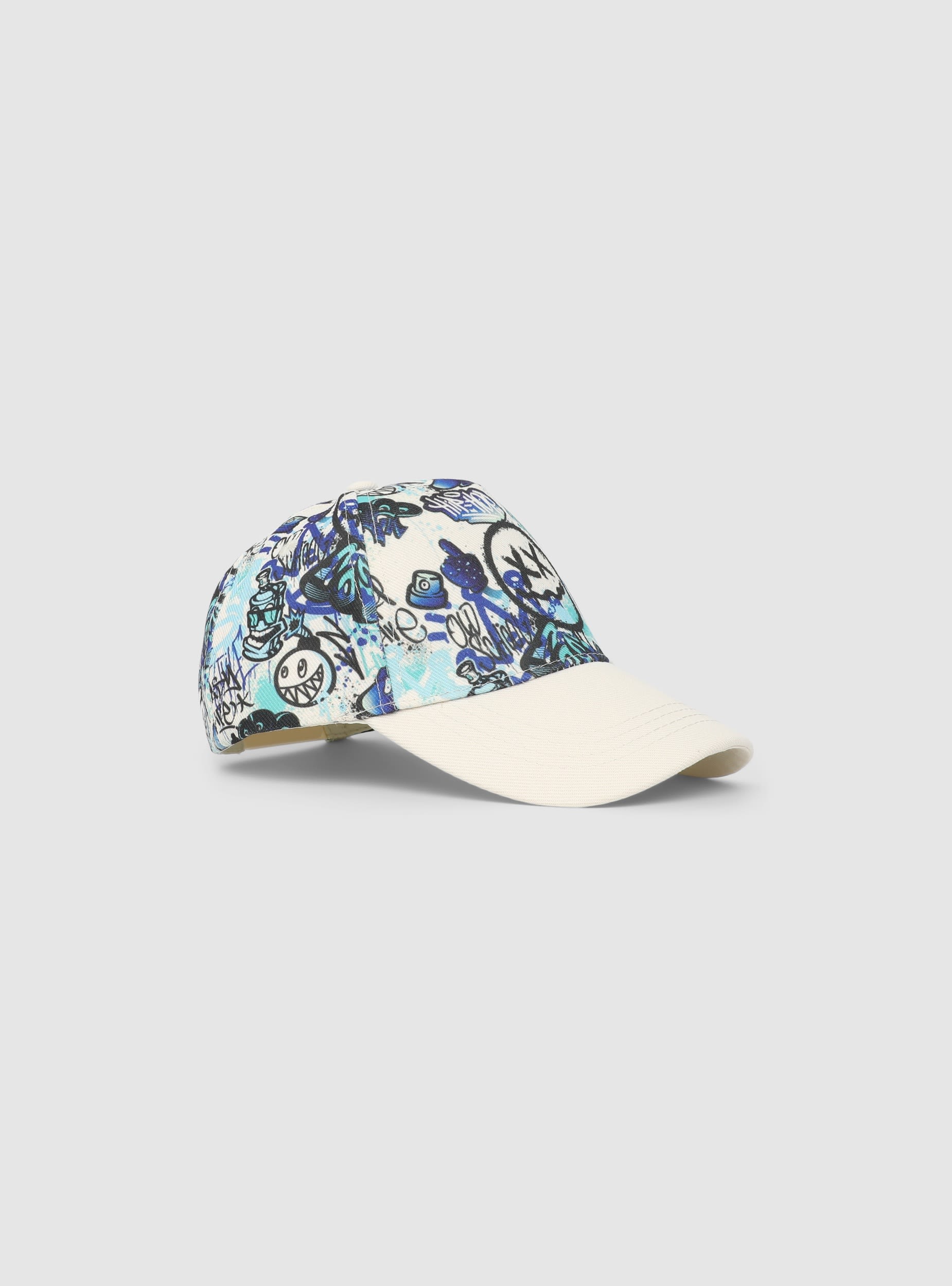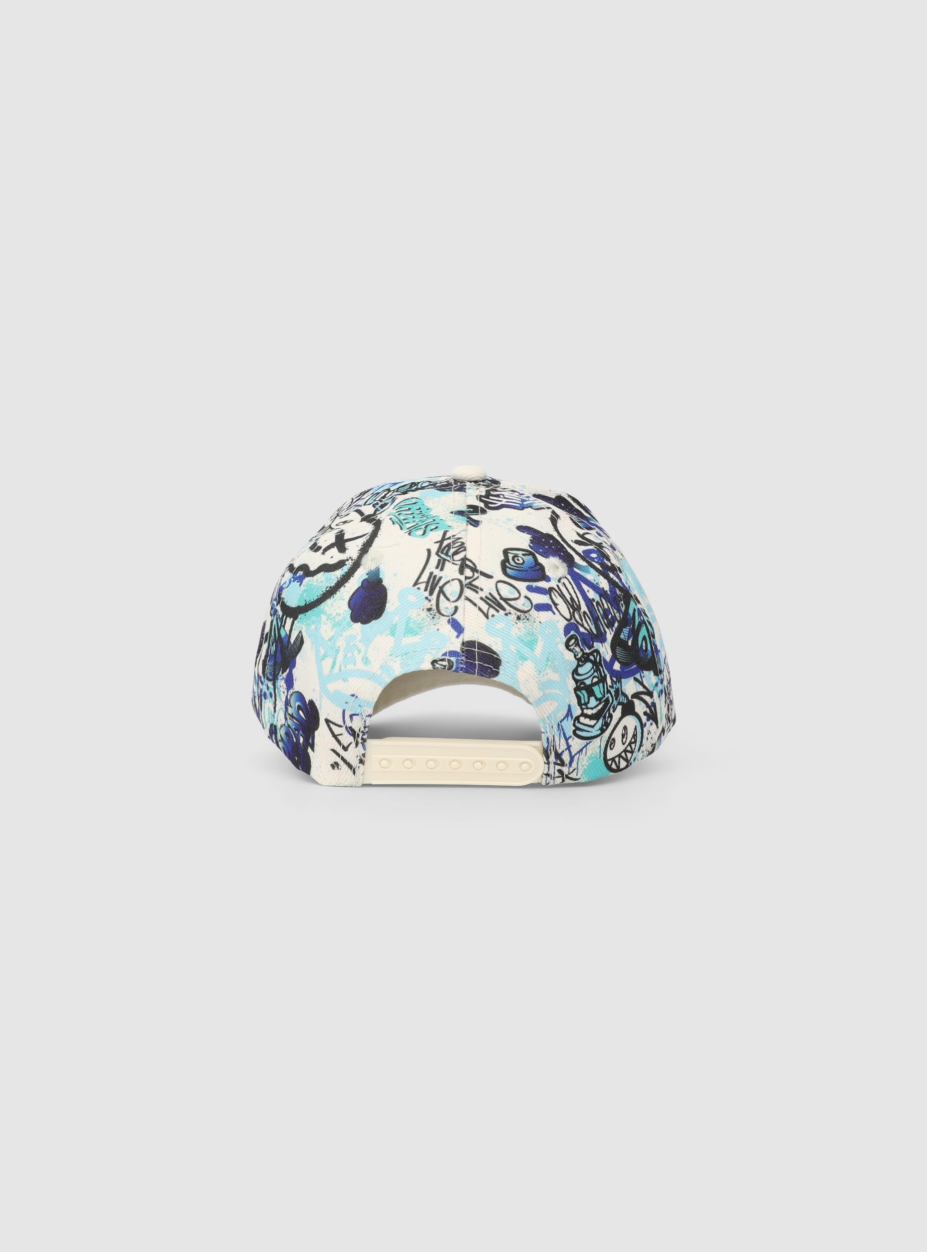 Cappellino da bambino in stile baseball con stampa all over graffiti. Perfetto per look casual e urban, completa outfit con maglietta e jeans o felpa e jogger. Ideale per il tempo libero e le giornate all’aperto.Dettagli