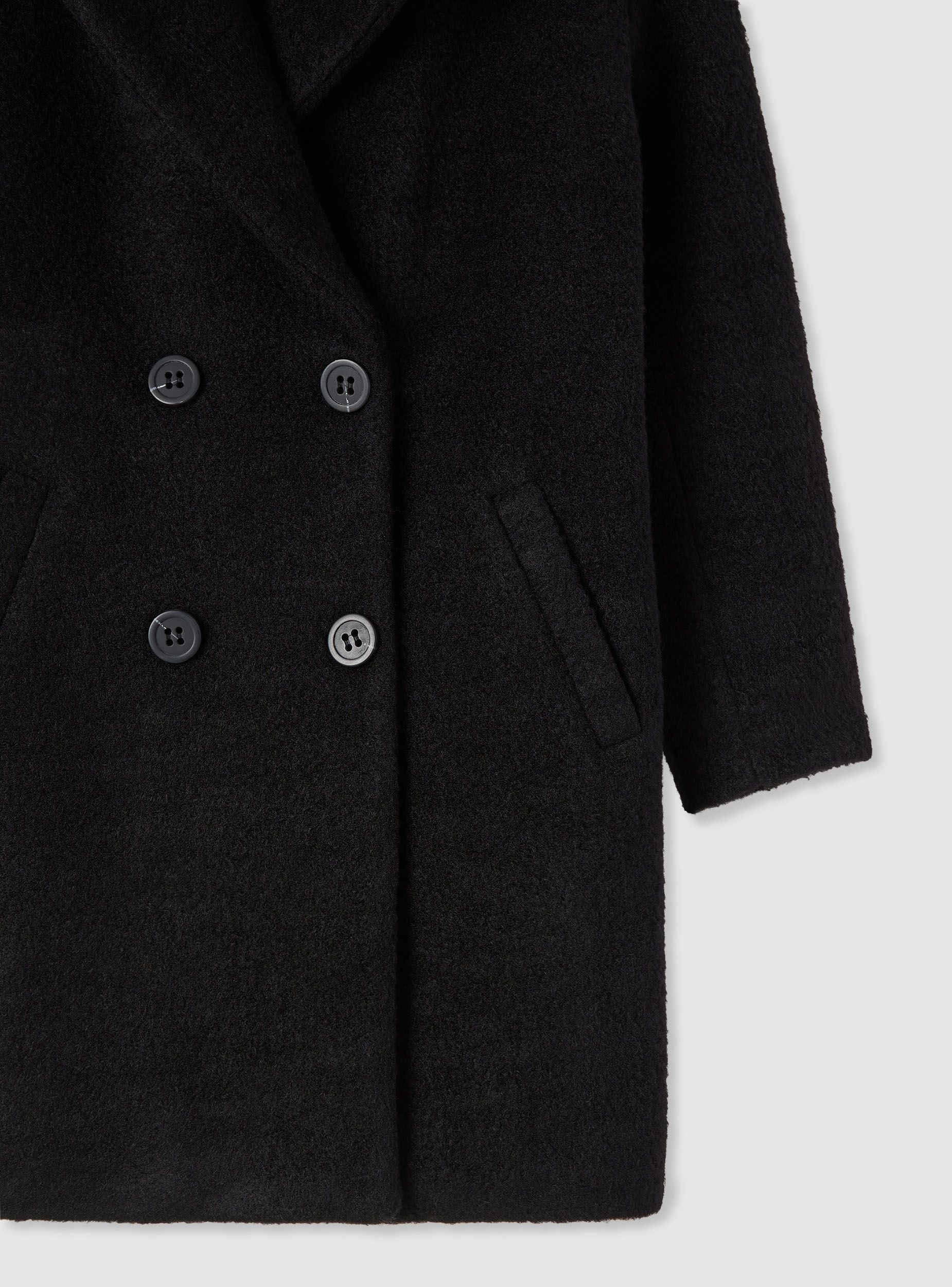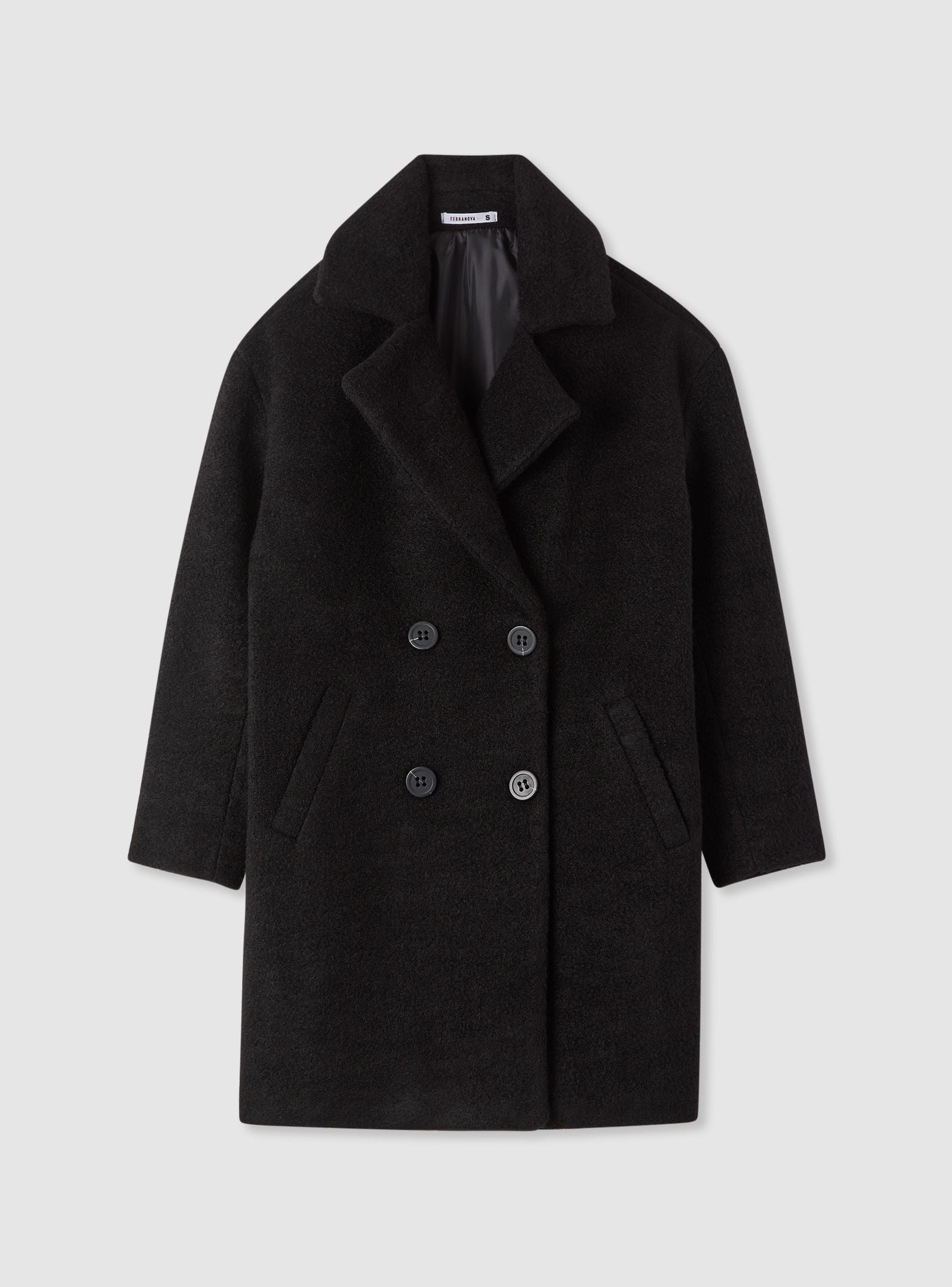 Cappotto da donna a tinta unita, pensato per completare look da città e da ufficio. Linea dritta con collo a revers ampio e maniche lunghe, ideale da indossare sopra maglioni e blazer. Chiusura doppiopetto con bottoni e tasche laterali a filetto per avere l’essenziale a portata di mano. Perfetto con jeans o pantaloni sartoriali e stivaletti.Dettagli