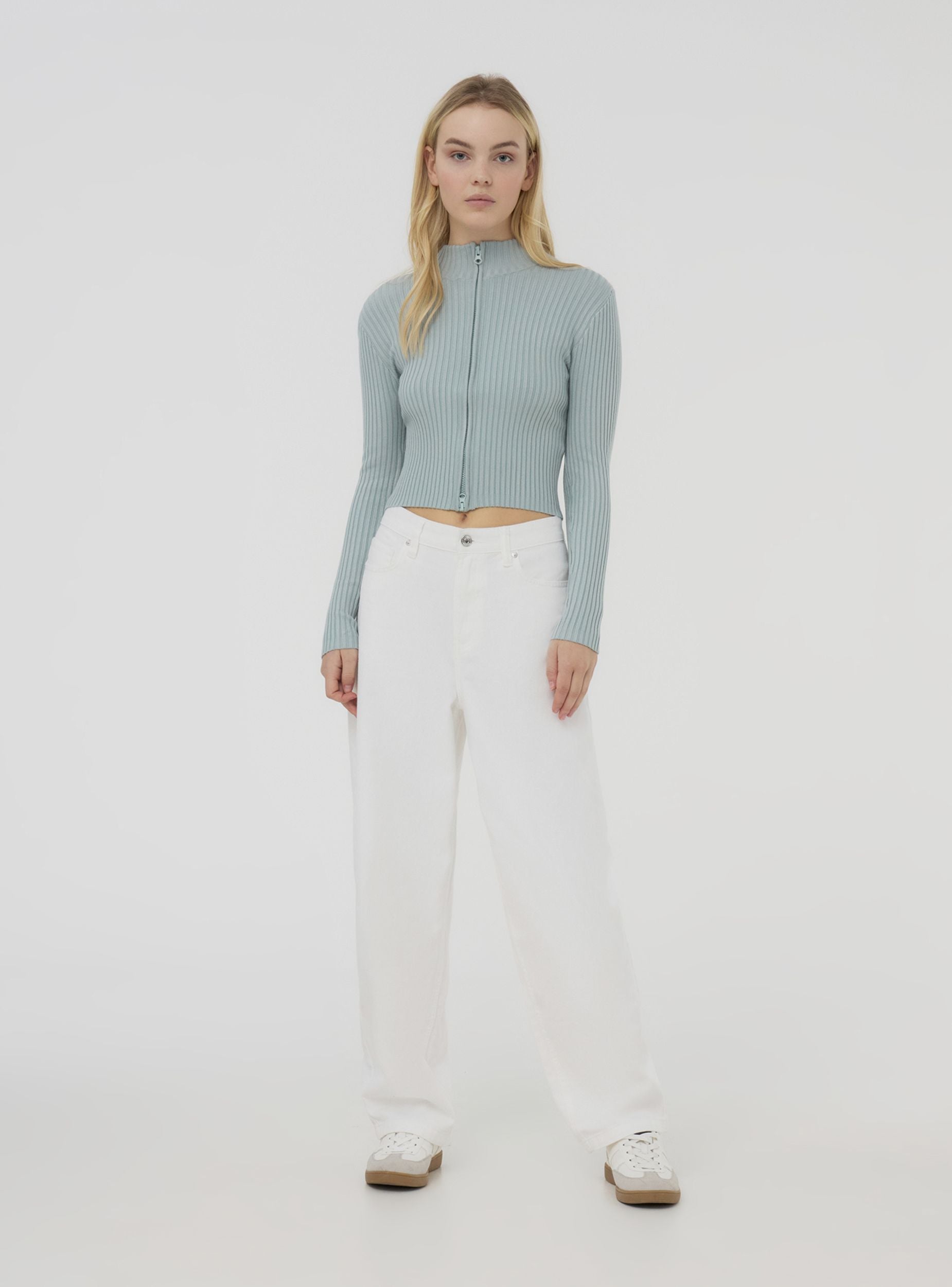Cardigan da donna dal design a tinta unita, caratterizzato da una lavorazione a costine che esalta lo stile versatile. Dotato di una pratica doppia zip, ideale per regolare l'apertura e adattare il capo alle diverse esigenze. Perfetto per completare look casual con jeans o pantaloni slim, oppure per outfit più raffinati con gonne midi. Adatto per il lavoro, il tempo libero o occasioni informali, è un must-have per un guardaroba dinamico.Dettagli