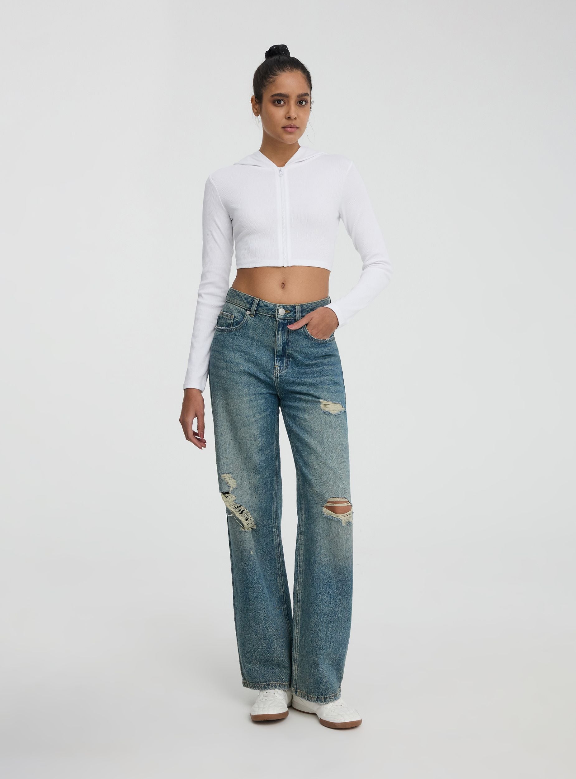 Cardigan da donna dallo stile contemporaneo, caratterizzato da una silhouette crop che aggiunge un tocco moderno e versatile. Questo modello a tinta unita è dotato di maniche lunghe e di un comodo cappuccio che lo rende perfetto per un look casual e sportivo. La zip frontale permette una vestibilità comoda, mentre le finiture in costine donano un dettaglio sofisticato e definito. Ideale per completare outfit dinamici e alla moda, abbinabile a jeans o pantaloni a vita alta per uno stile trendy e disinvolto.