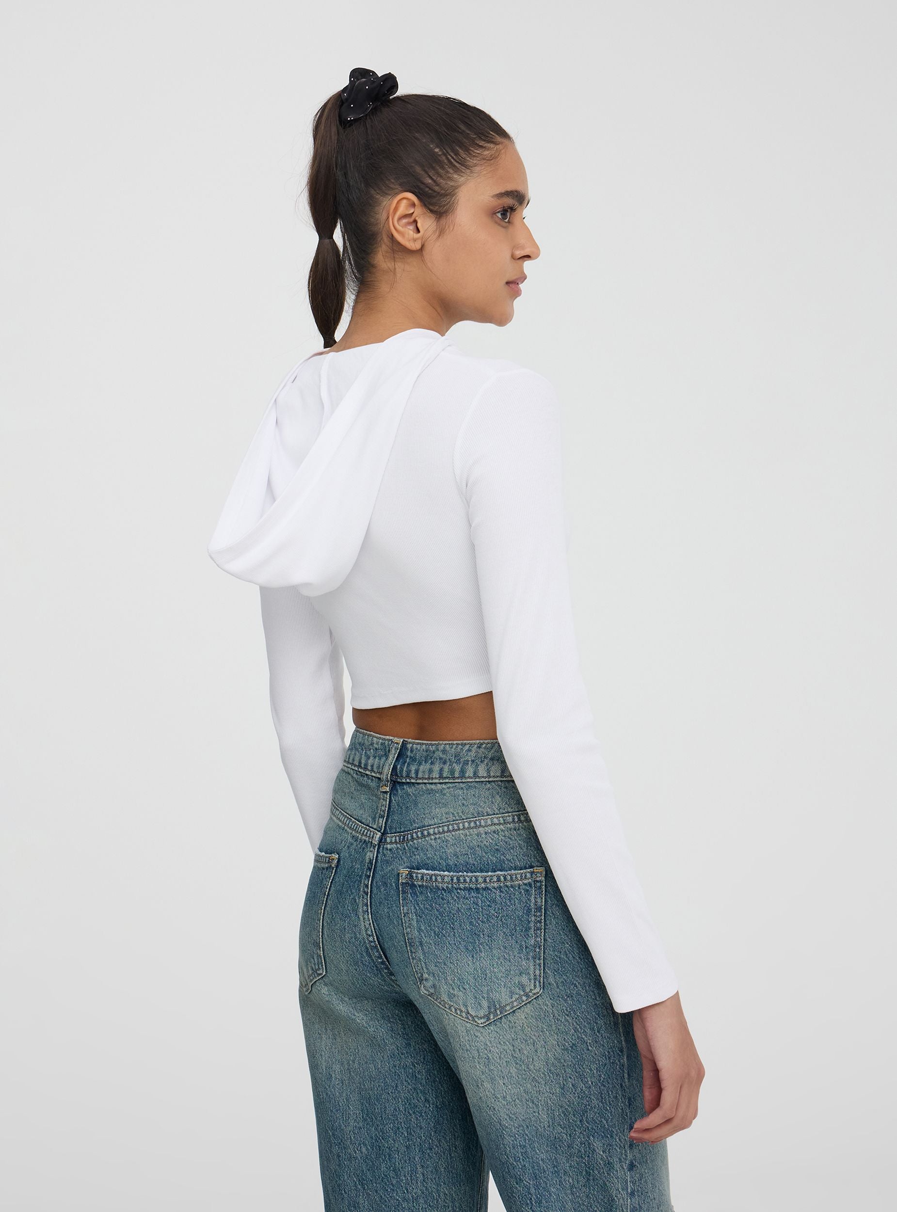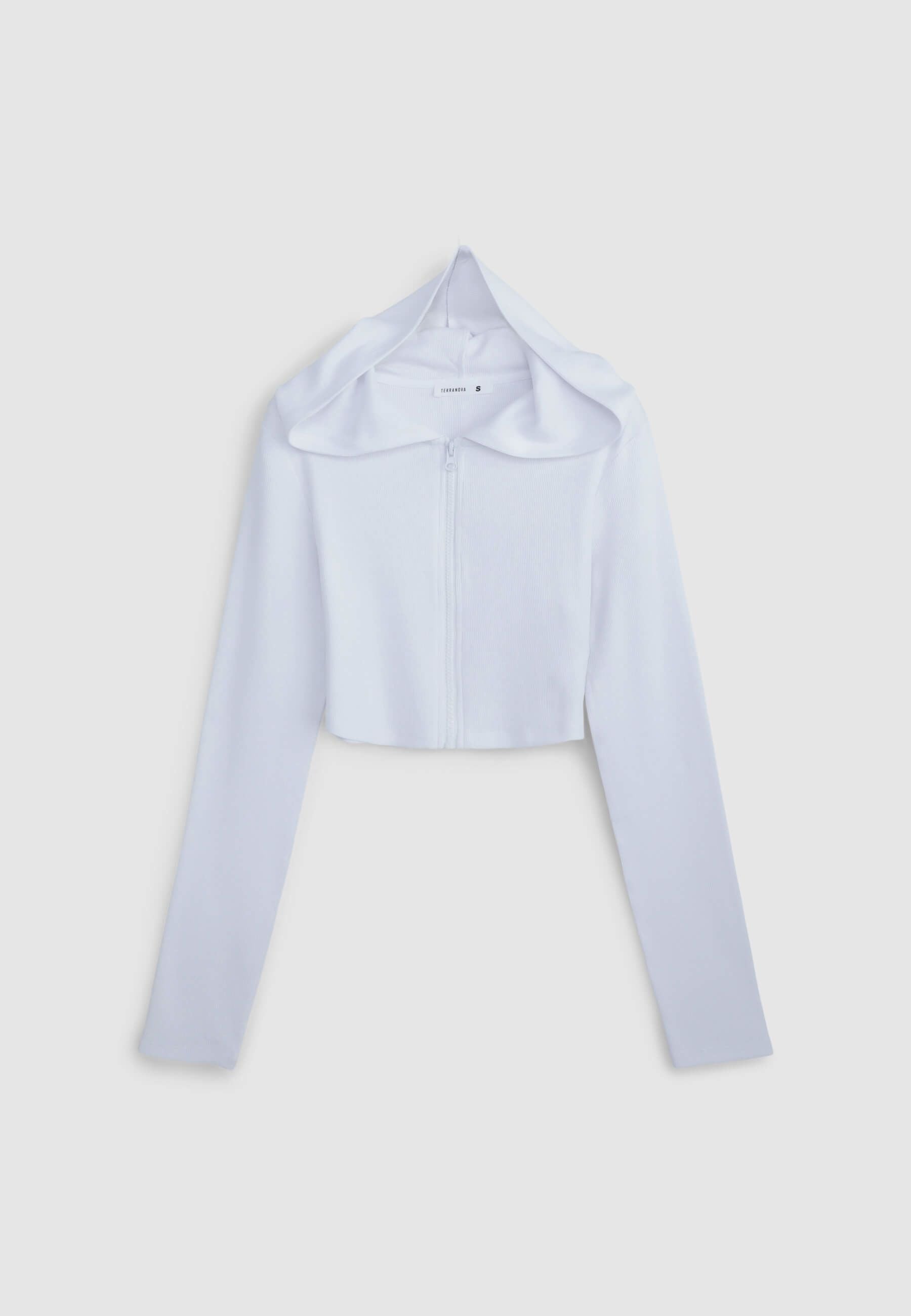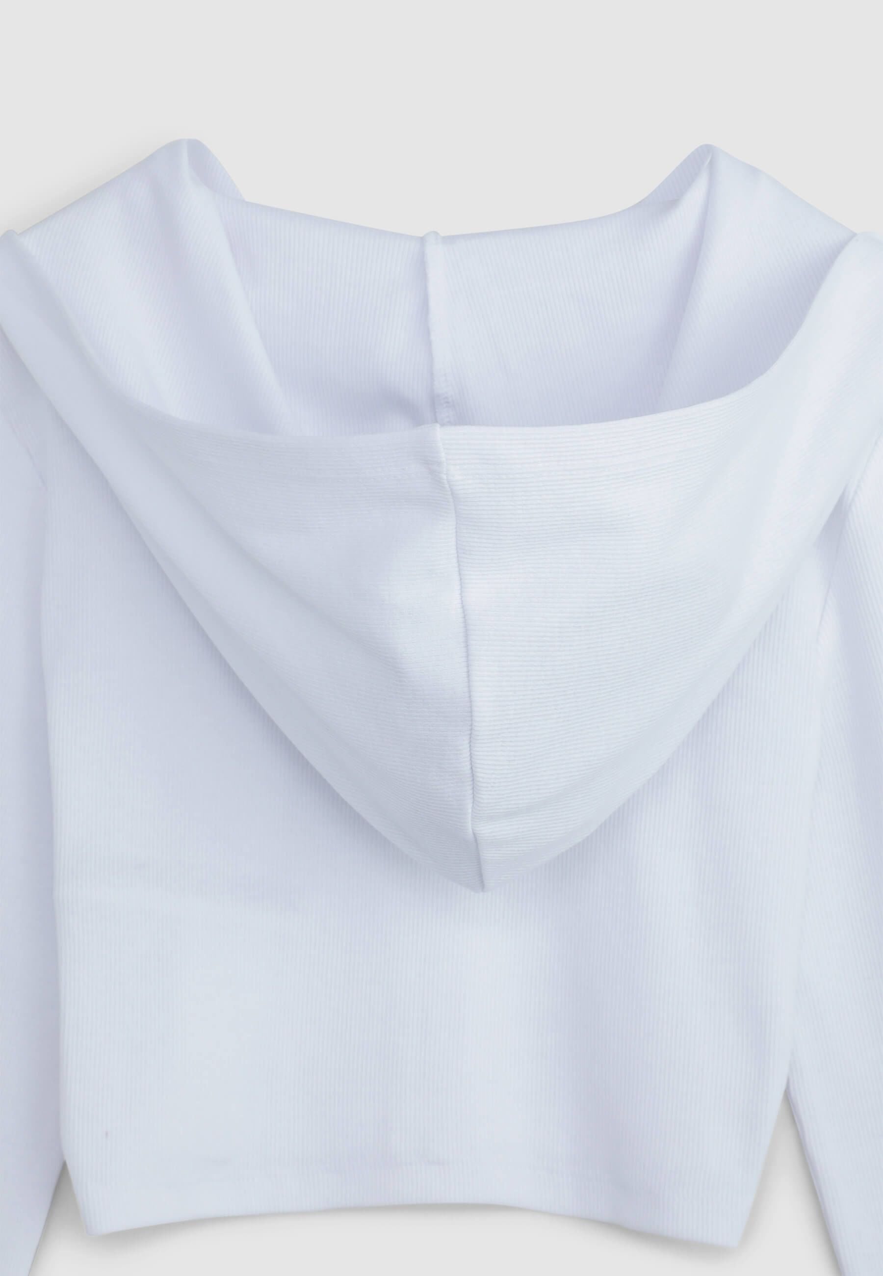 Cardigan crop a costine con cappuccio