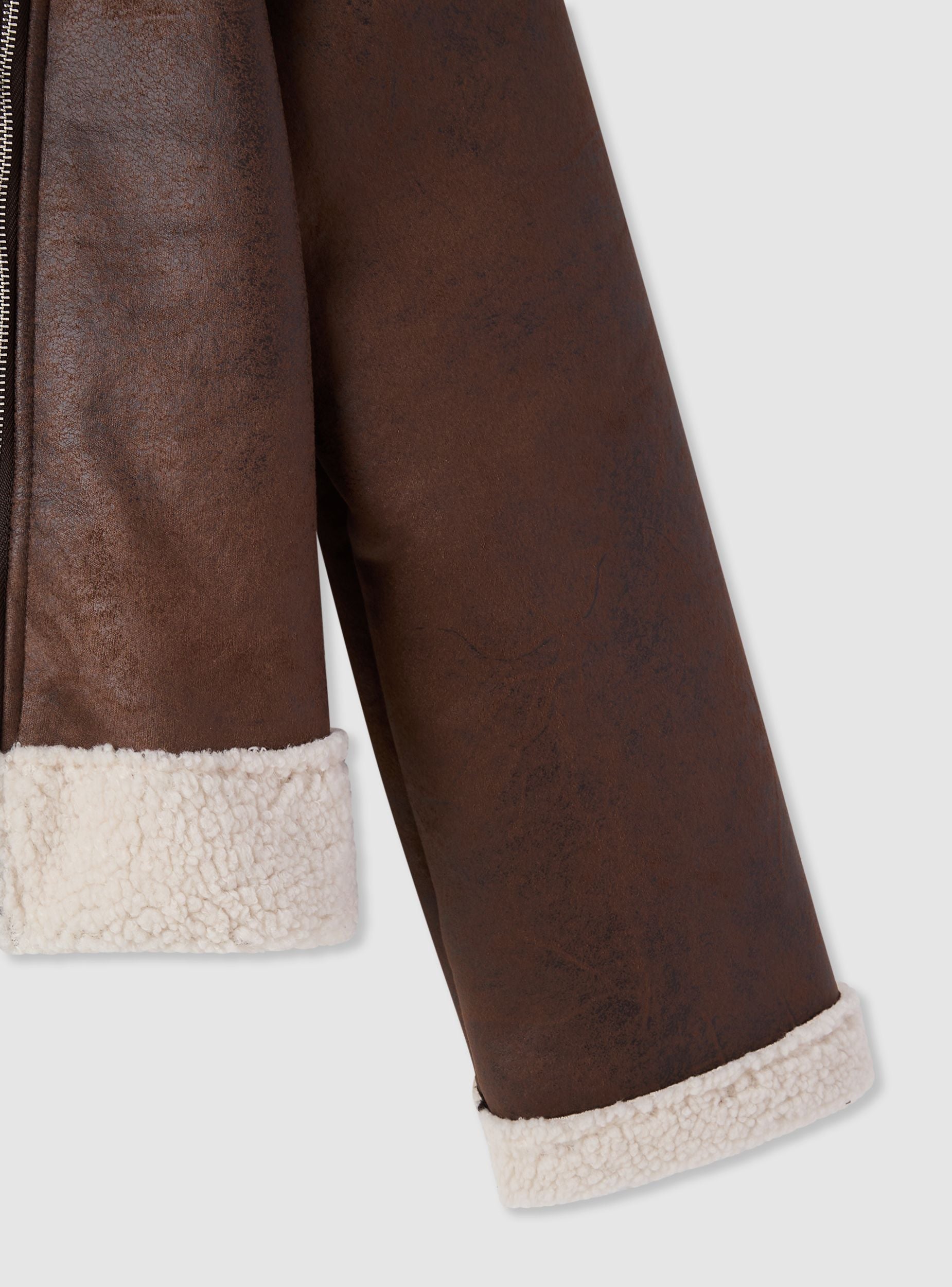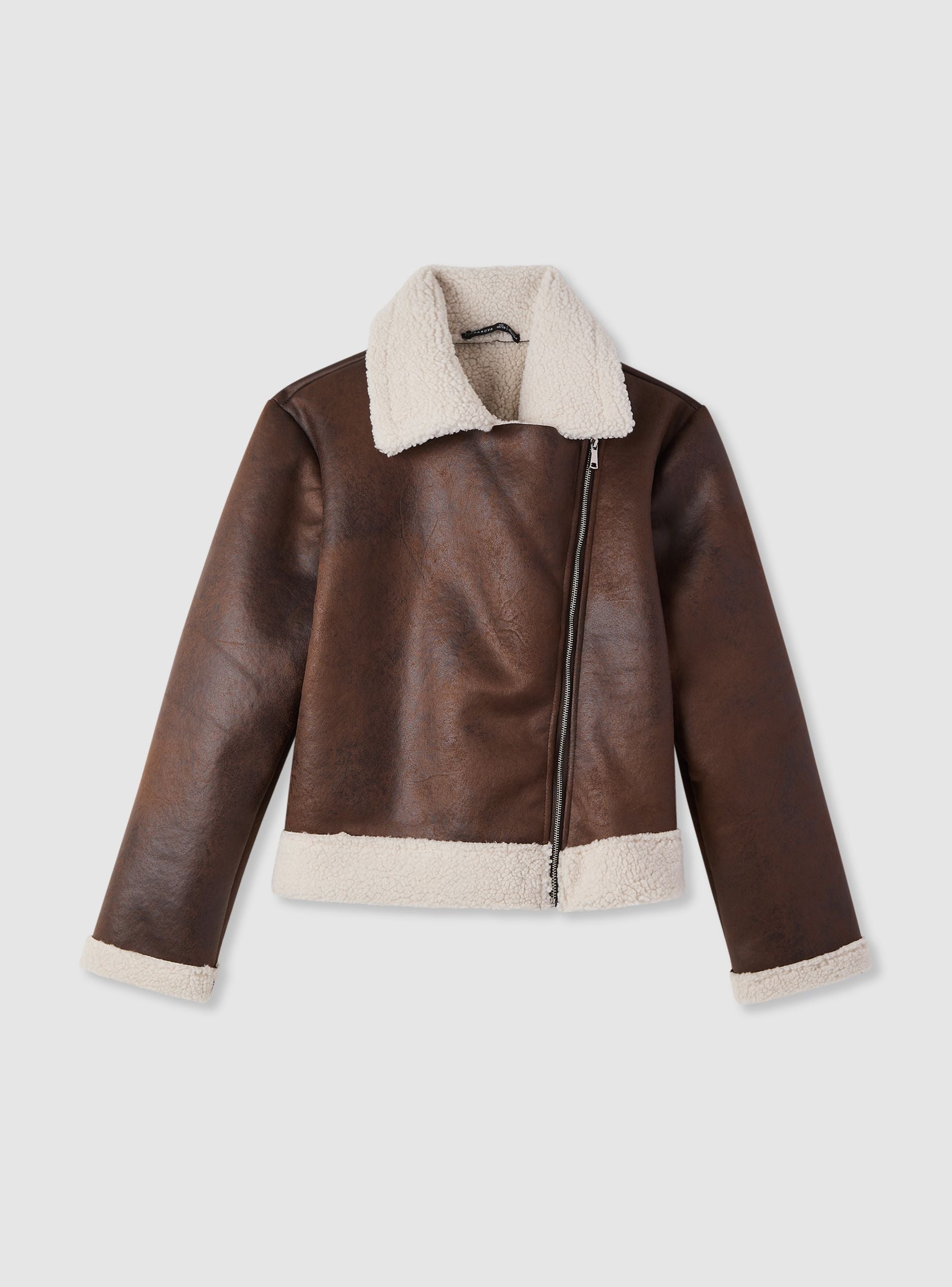 Chiodo da bambina effetto montone, ideale per i mesi freddi. Modello con colletto a camicia e risvolti effetto pelliccia sintetica, chiusura con zip asimmetrica e bordo rifinito con inserto morbido. Vestibilità regular con maniche lunghe, perfetto sopra magliette e felpe per look casual o urban. Design versatile per abbinamenti quotidiani con jeans e pantaloni.Dettagli