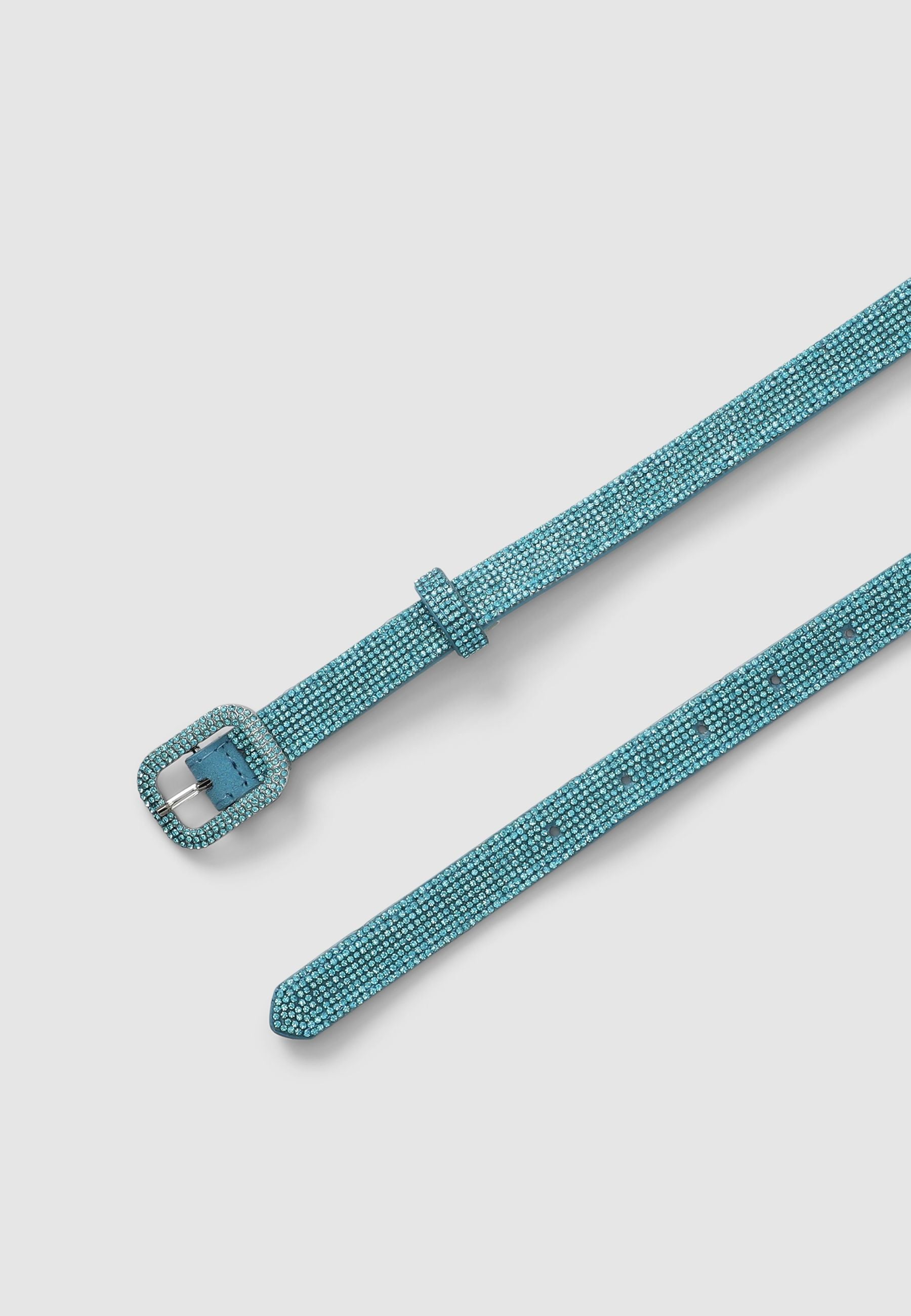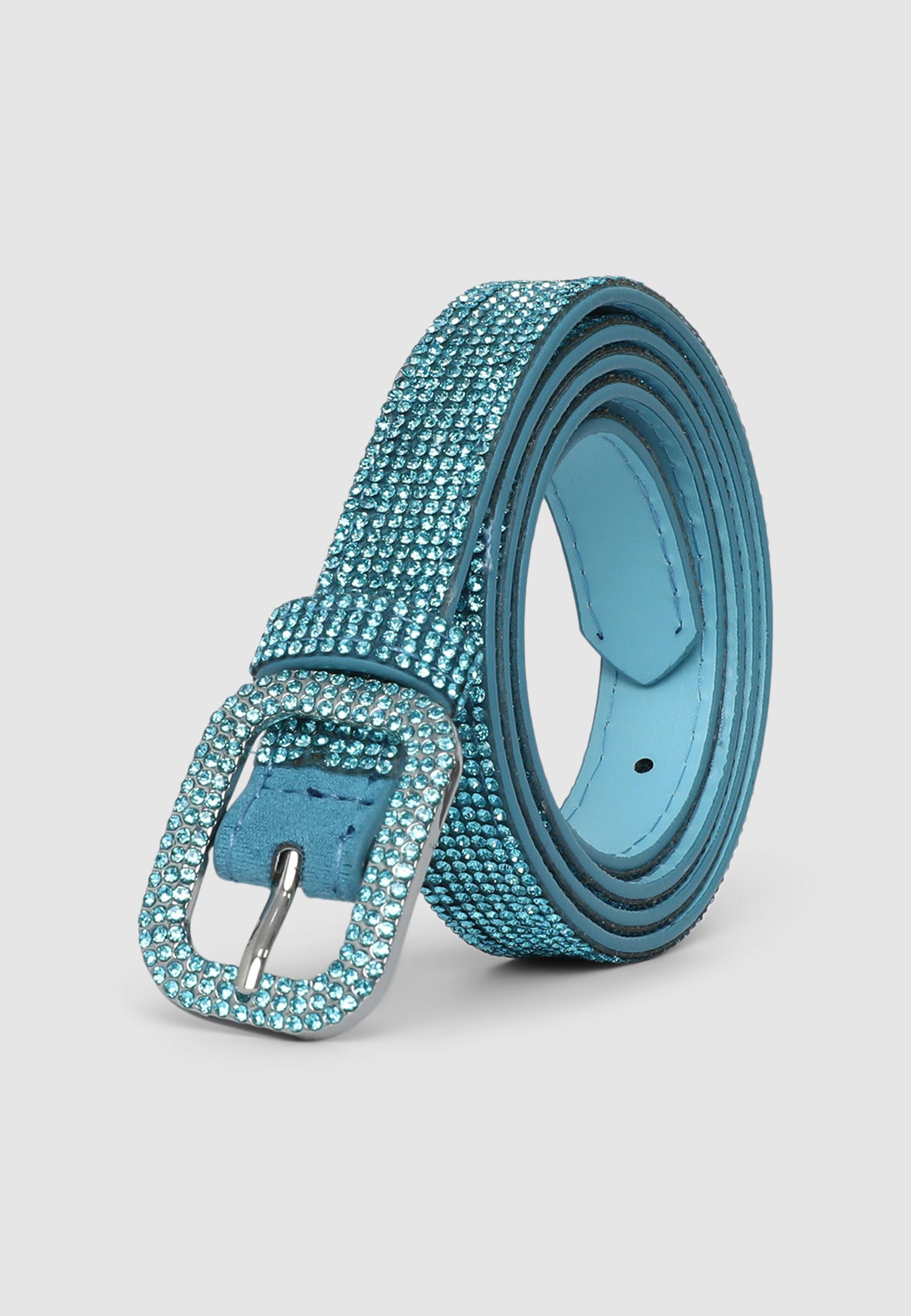 Cintura da donna completamente decorata con strass brillanti, che la rendono un accessorio elegante e dal grande impatto visivo. Il design raffinato e la fibbia impreziosita da strass aggiungono un tocco di luce e stile ad ogni outfit, perfetta per dare un accento glamour sia a look casual che a quelli più formali.Dettagli