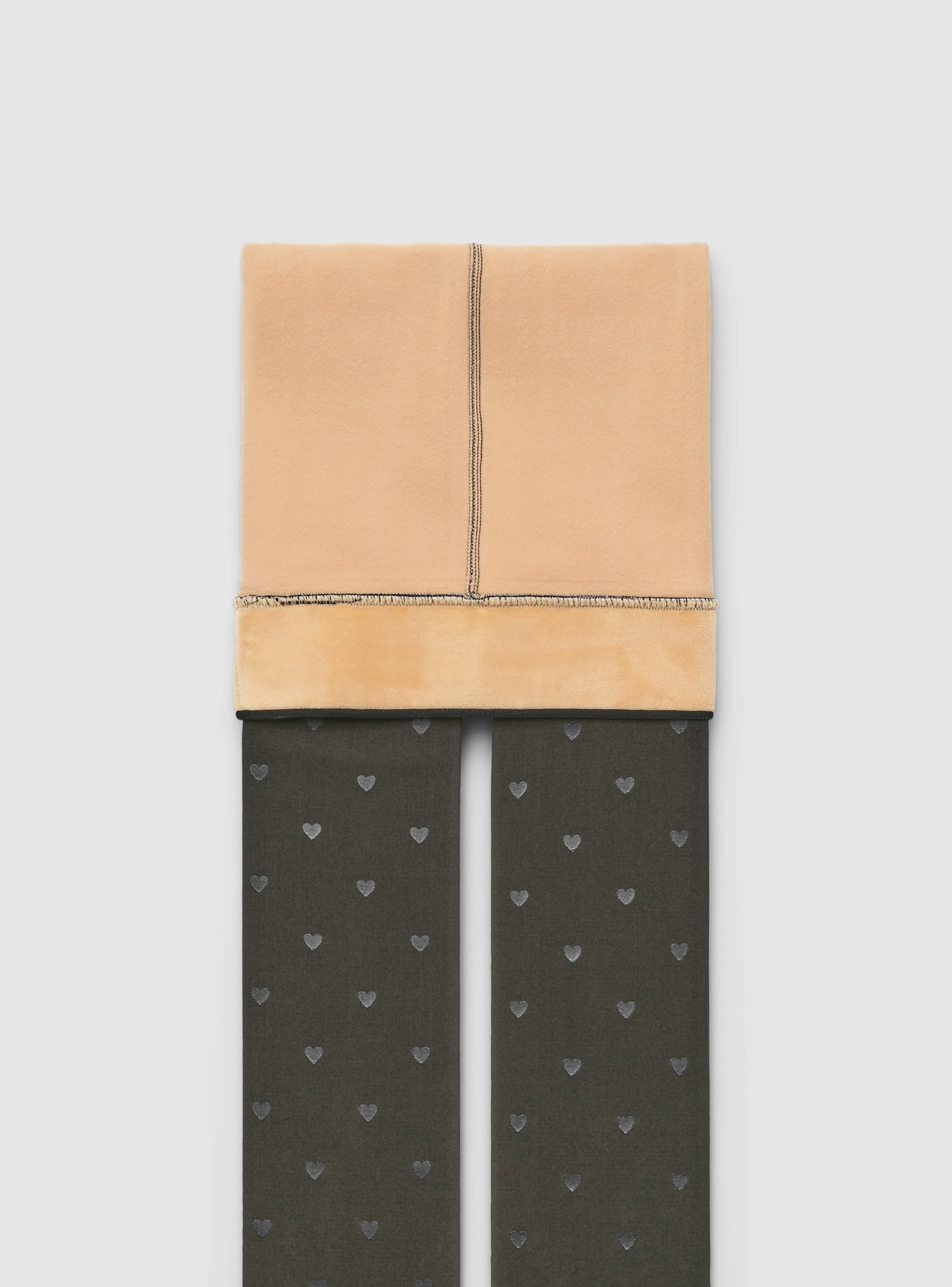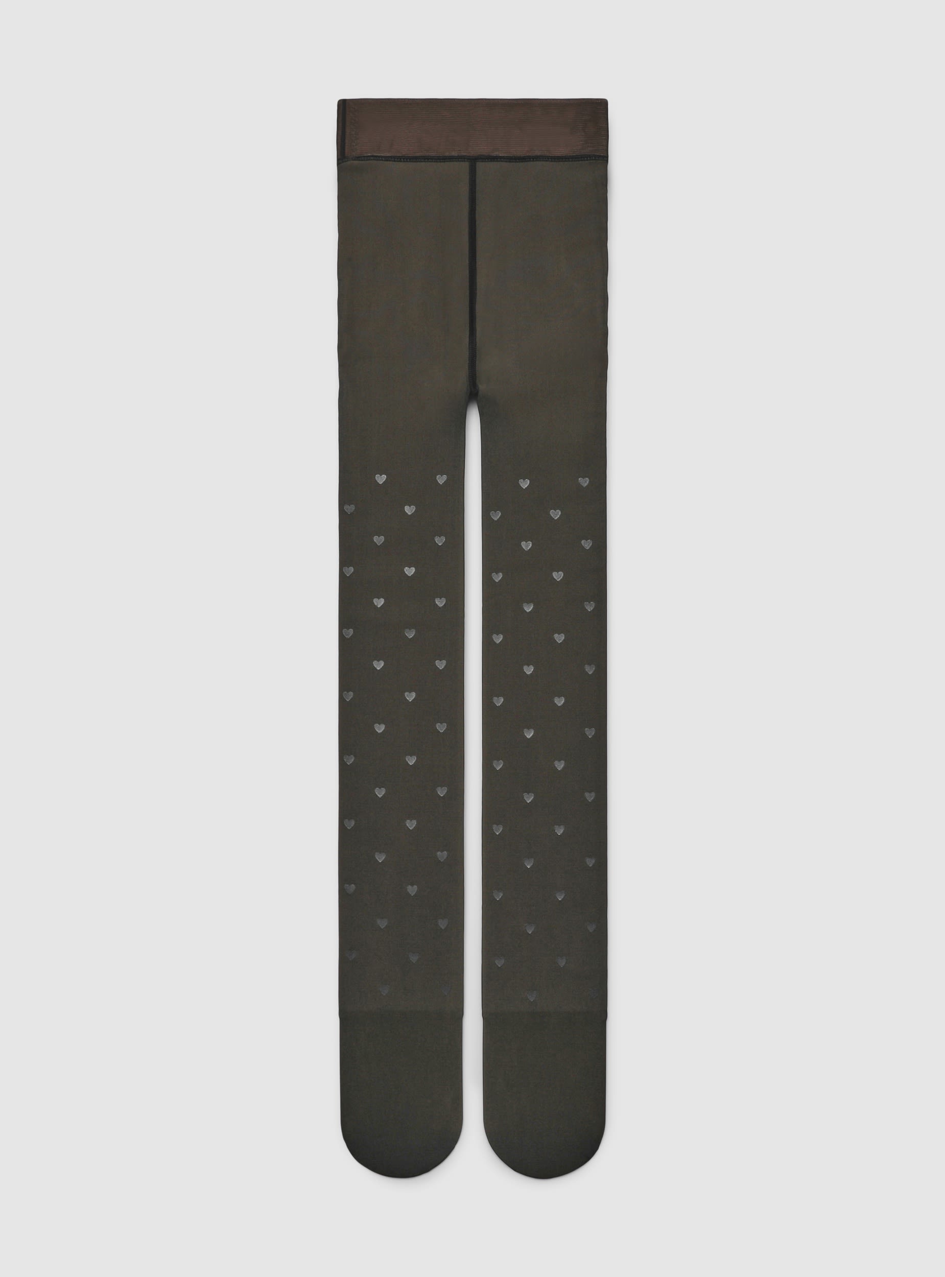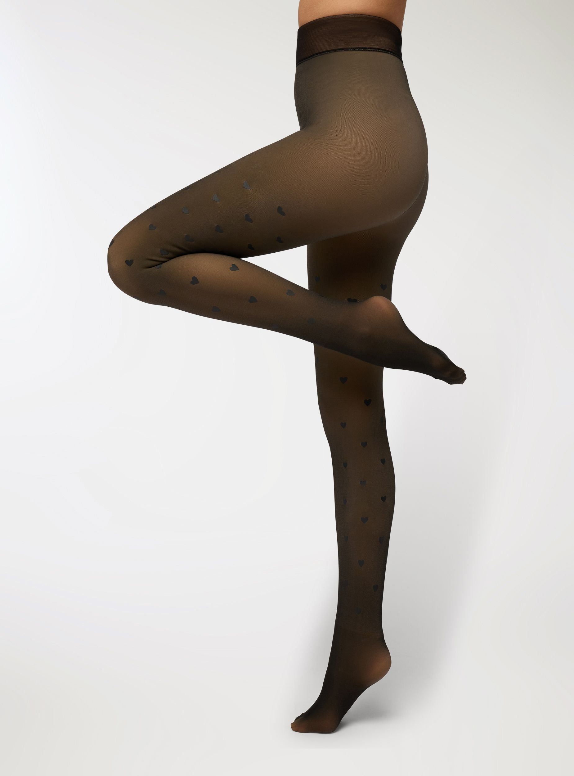 Collant da donna con effetto trasparente e fantasia cuori. Ideali per completare outfit eleganti o casual, aggiungendo un tocco di femminilità. Perfetti per essere indossati con gonne o abiti, garantiscono comfort e stile in ogni occasione.