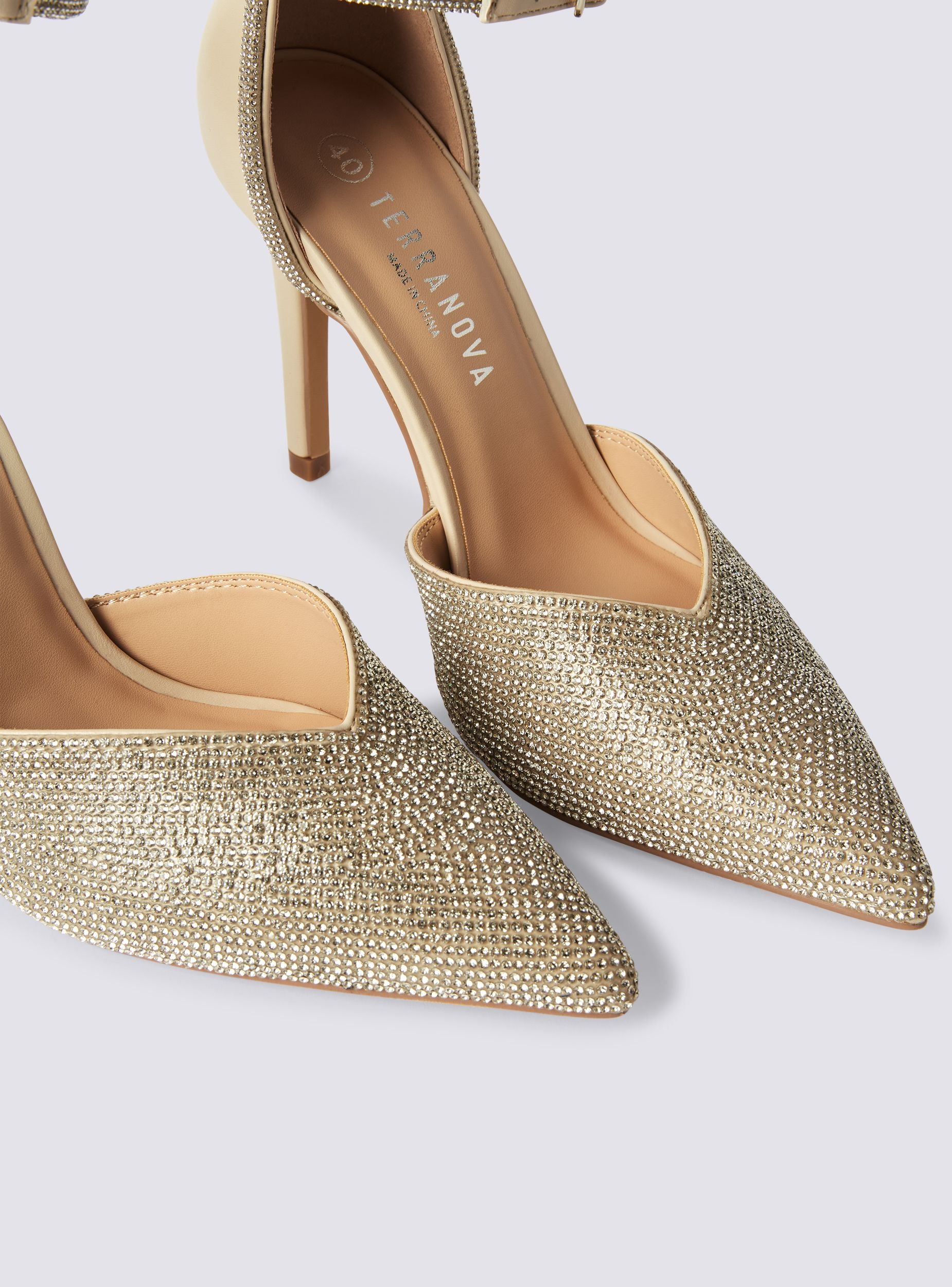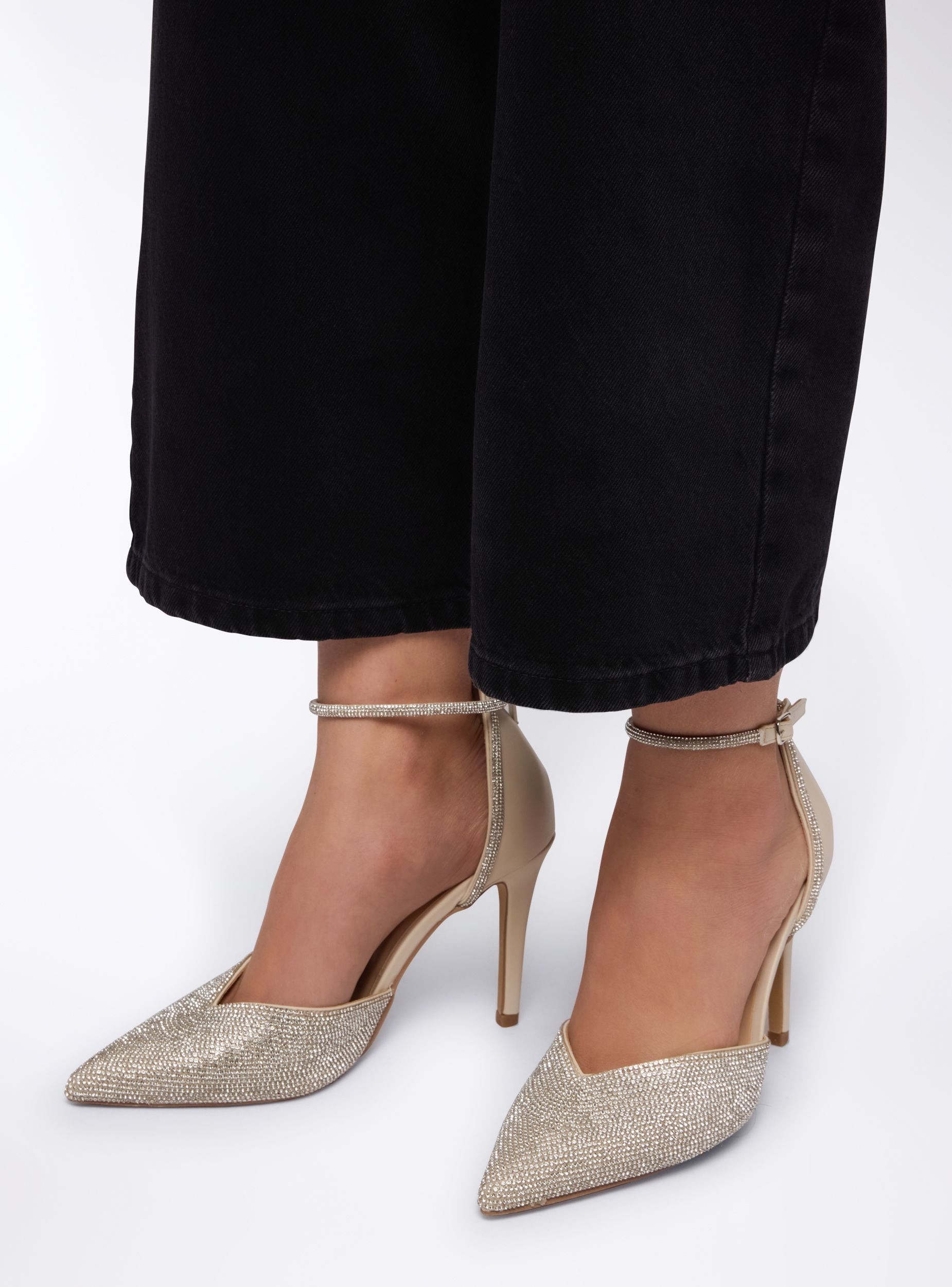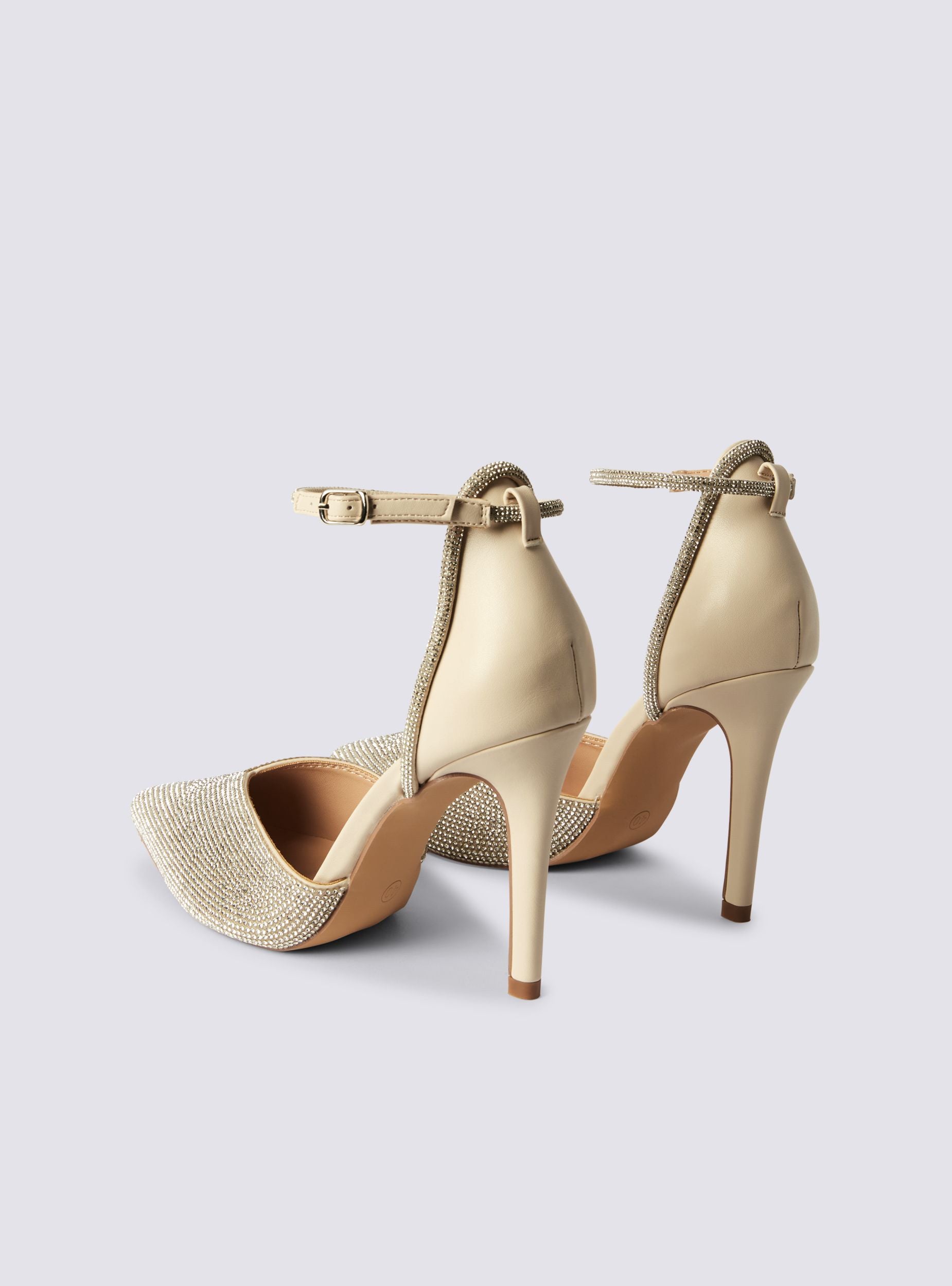 Scarpe da donna dallo stile sofisticato e raffinato, ideali per cerimonie, eventi eleganti o serate speciali. Il design décolleté valorizza la silhouette del piede, mentre la struttura aperta con cinturino alla caviglia assicura una calzata stabile e confortevole. Gli strass applicati sulla tomaia aggiungono un tocco brillante, rendendo queste calzature perfette per chi desidera distinguersi con eleganza e charme. Altezza tacco 10,5 cm.Dettagli