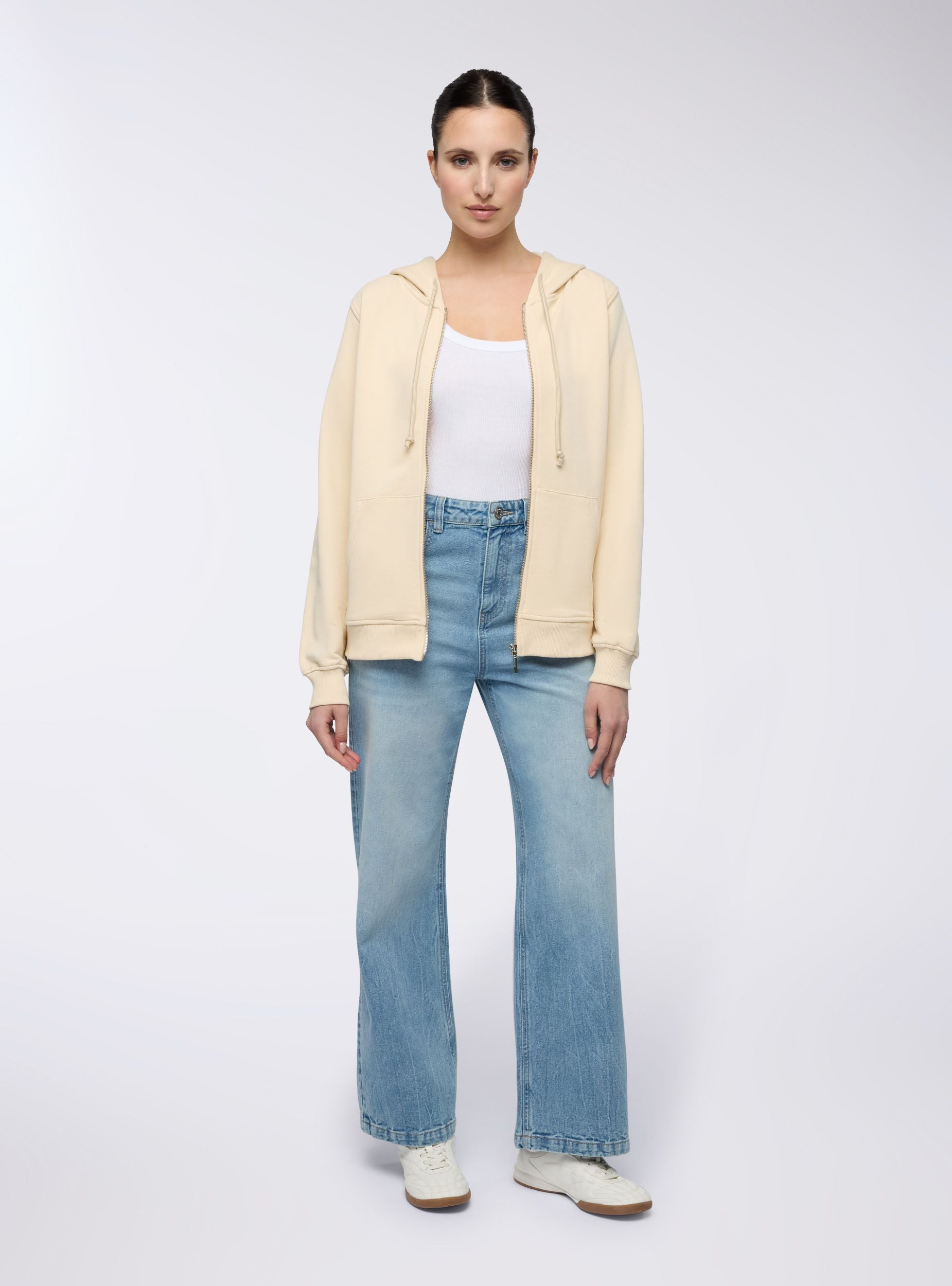 Felpa leggera da donna ideale per un look casual e confortevole, perfetta per il tempo libero o per un outfit sportivo. Caratterizzata da una vestibilità regolare, presenta un design con zip frontale, cappuccio regolabile con coulisse e tasche a marsupio. Una scelta versatile per chi cerca praticità e stile in ogni occasione.Dettagli