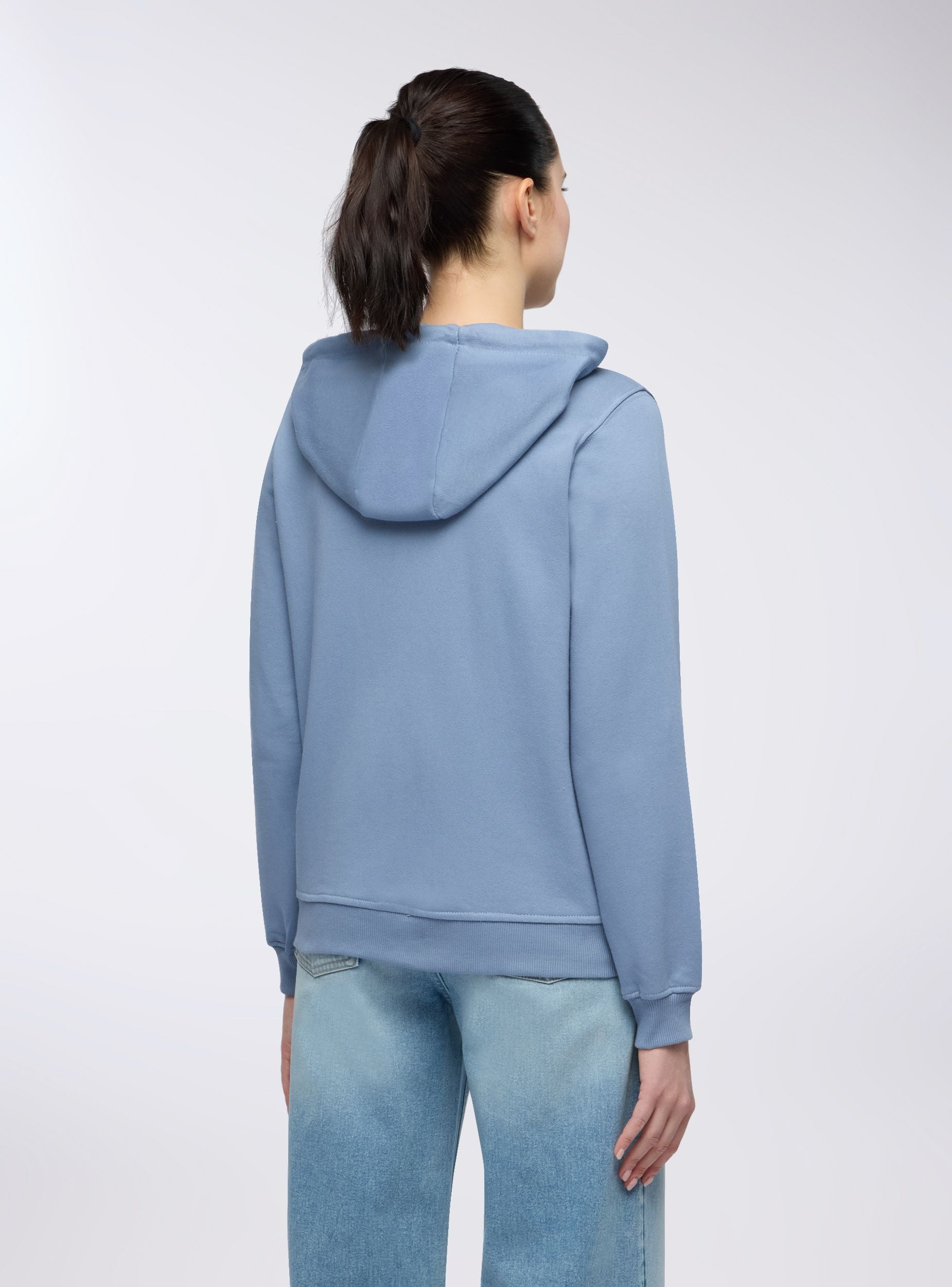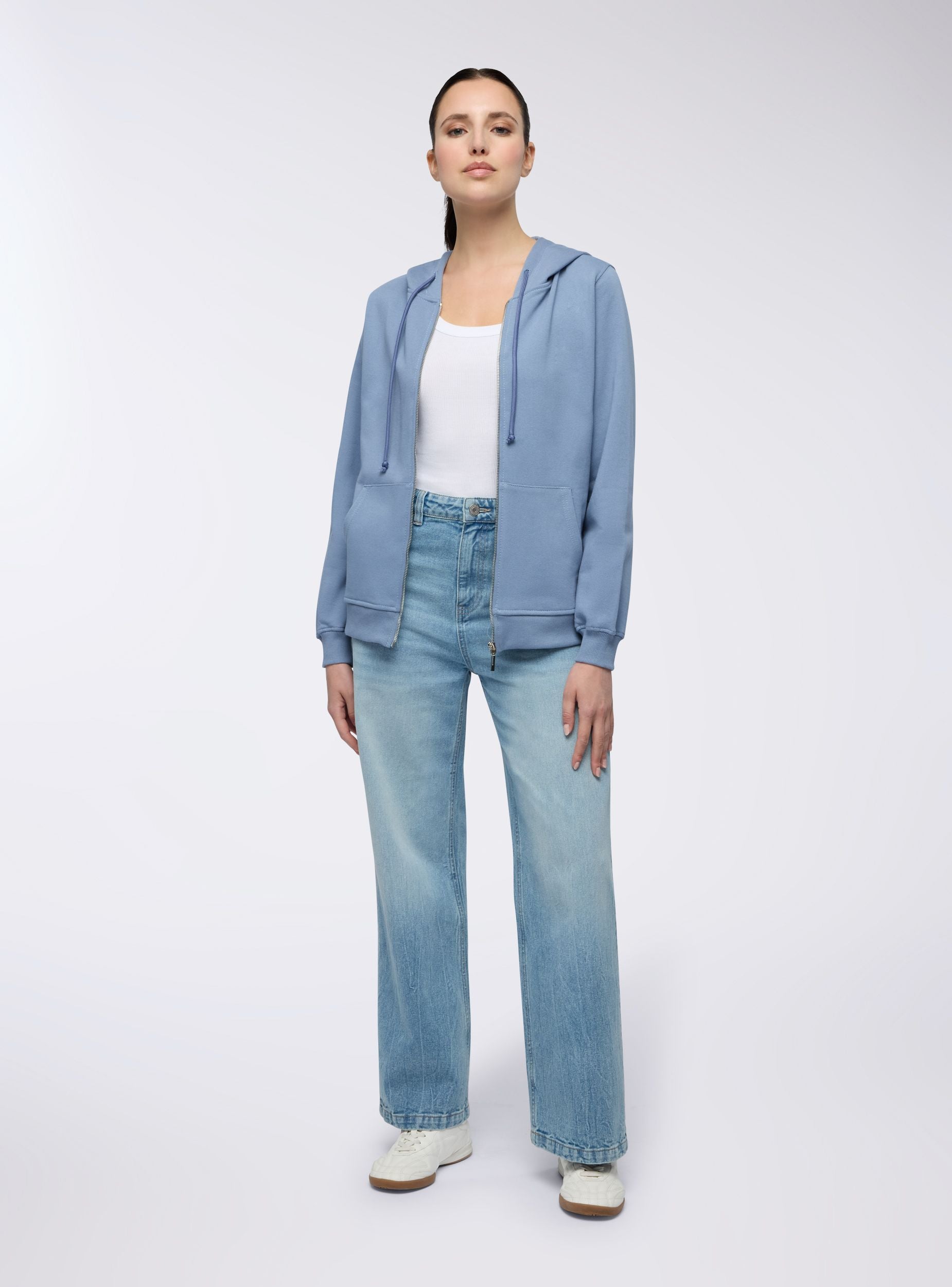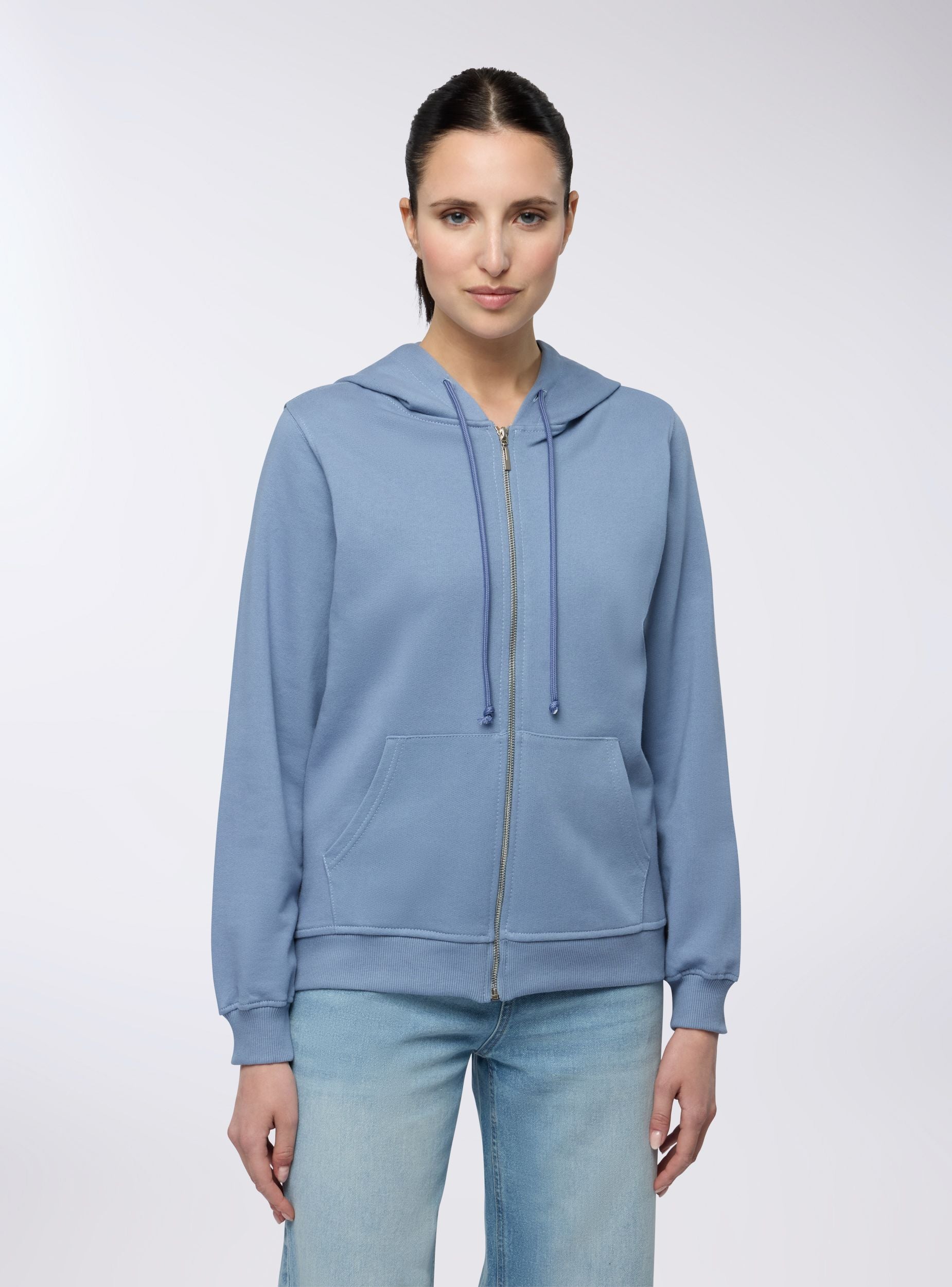 Felpa leggera da donna ideale per un look casual e confortevole, perfetta per il tempo libero o per un outfit sportivo. Caratterizzata da una vestibilità regolare, presenta un design con zip frontale, cappuccio regolabile con coulisse e tasche a marsupio. Una scelta versatile per chi cerca praticità e stile in ogni occasione.Dettagli