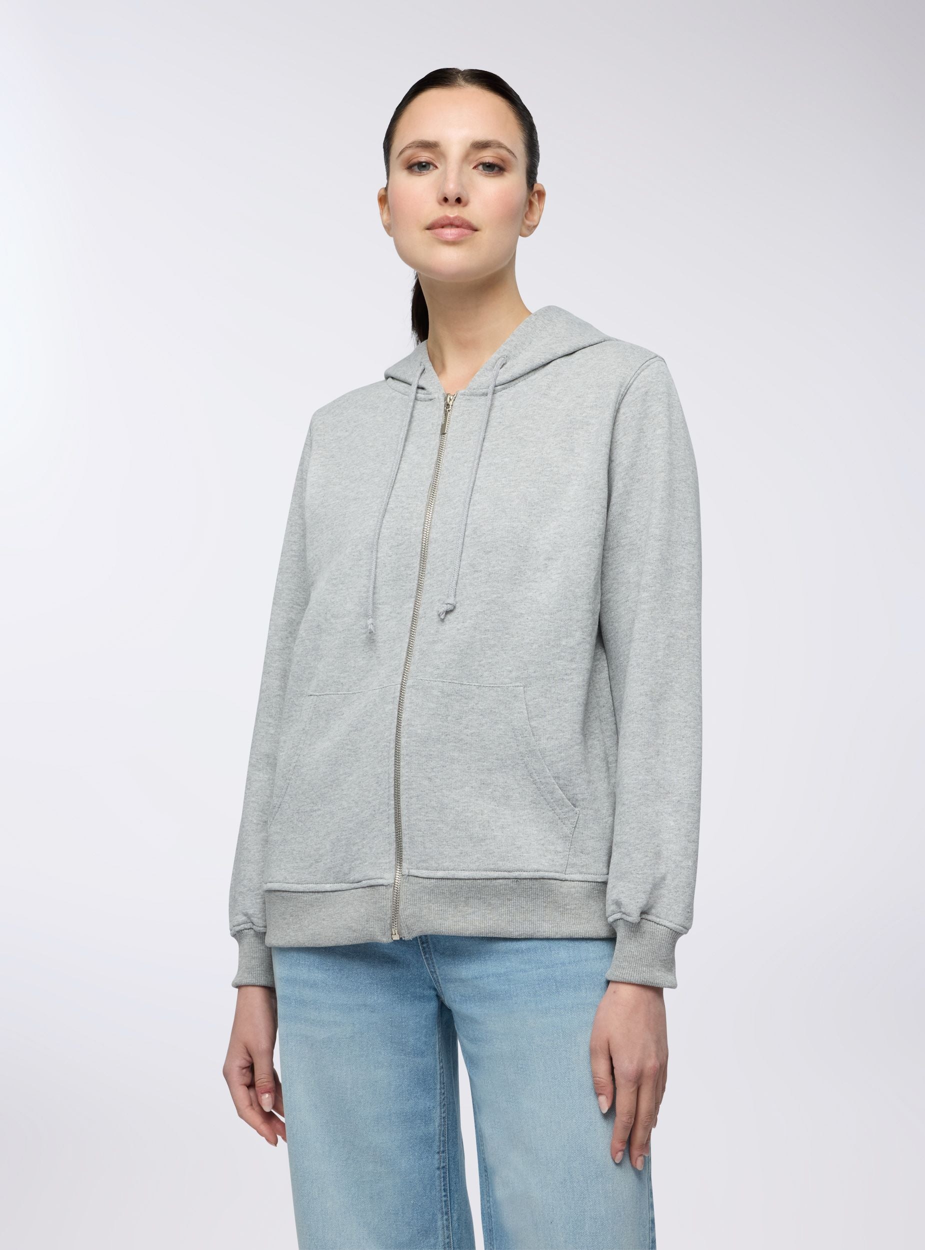 Felpa leggera da donna ideale per un look casual e confortevole, perfetta per il tempo libero o per un outfit sportivo. Caratterizzata da una vestibilità regolare, presenta un design con zip frontale, cappuccio regolabile con coulisse e tasche a marsupio. Una scelta versatile per chi cerca praticità e stile in ogni occasione.Dettagli