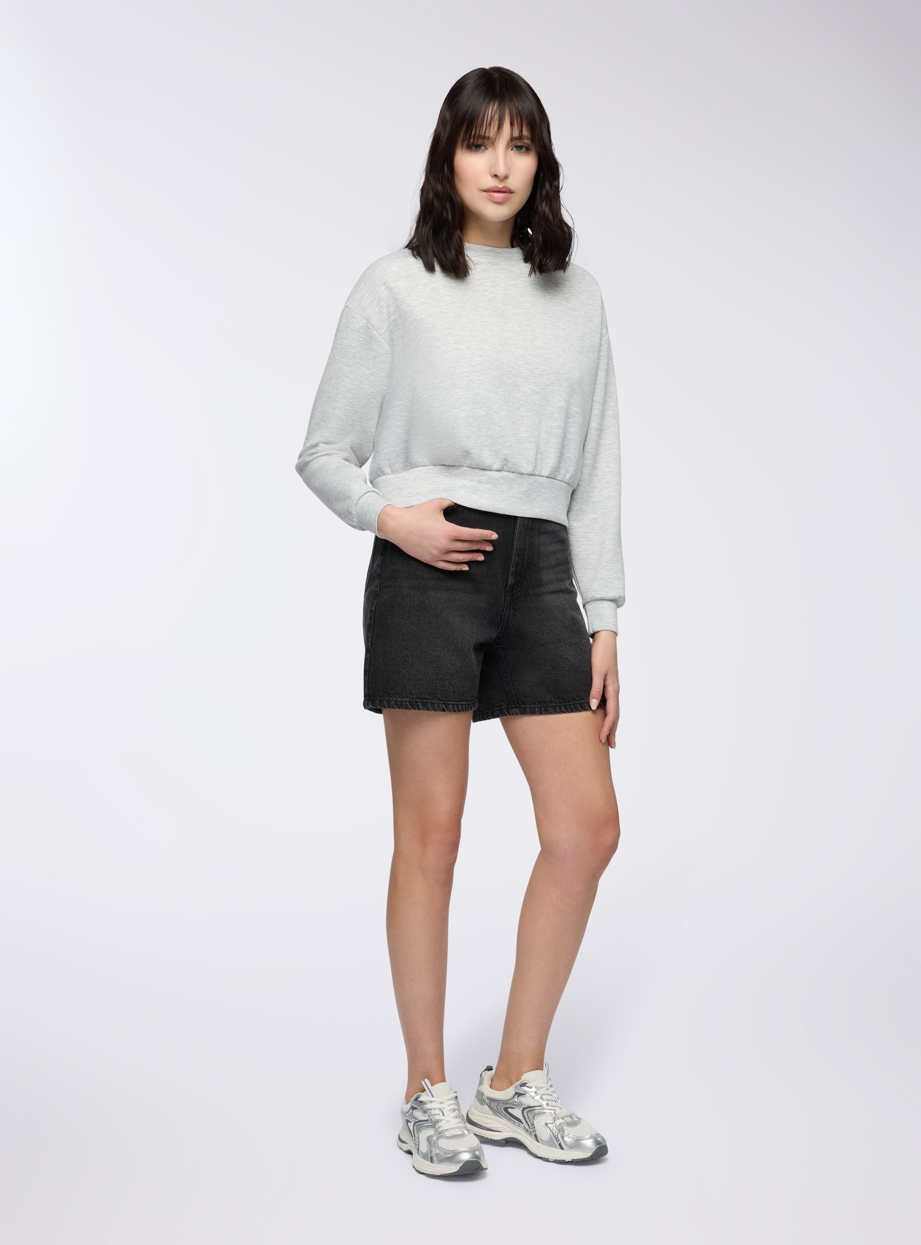 Felpa leggera da donna. Modello con girocollo, senza cappuccio e senza zip, dalla linea essenziale e fit regolare, perfetta per chi cerca comfort e versatilità. Le maniche lunghe donano un tocco casual e contemporaneo, ideale per il tempo libero o per un look athleisure. Facile da abbinare a joggers, jeans o pantaloni wide leg per outfit rilassati ma curati.Dettagli