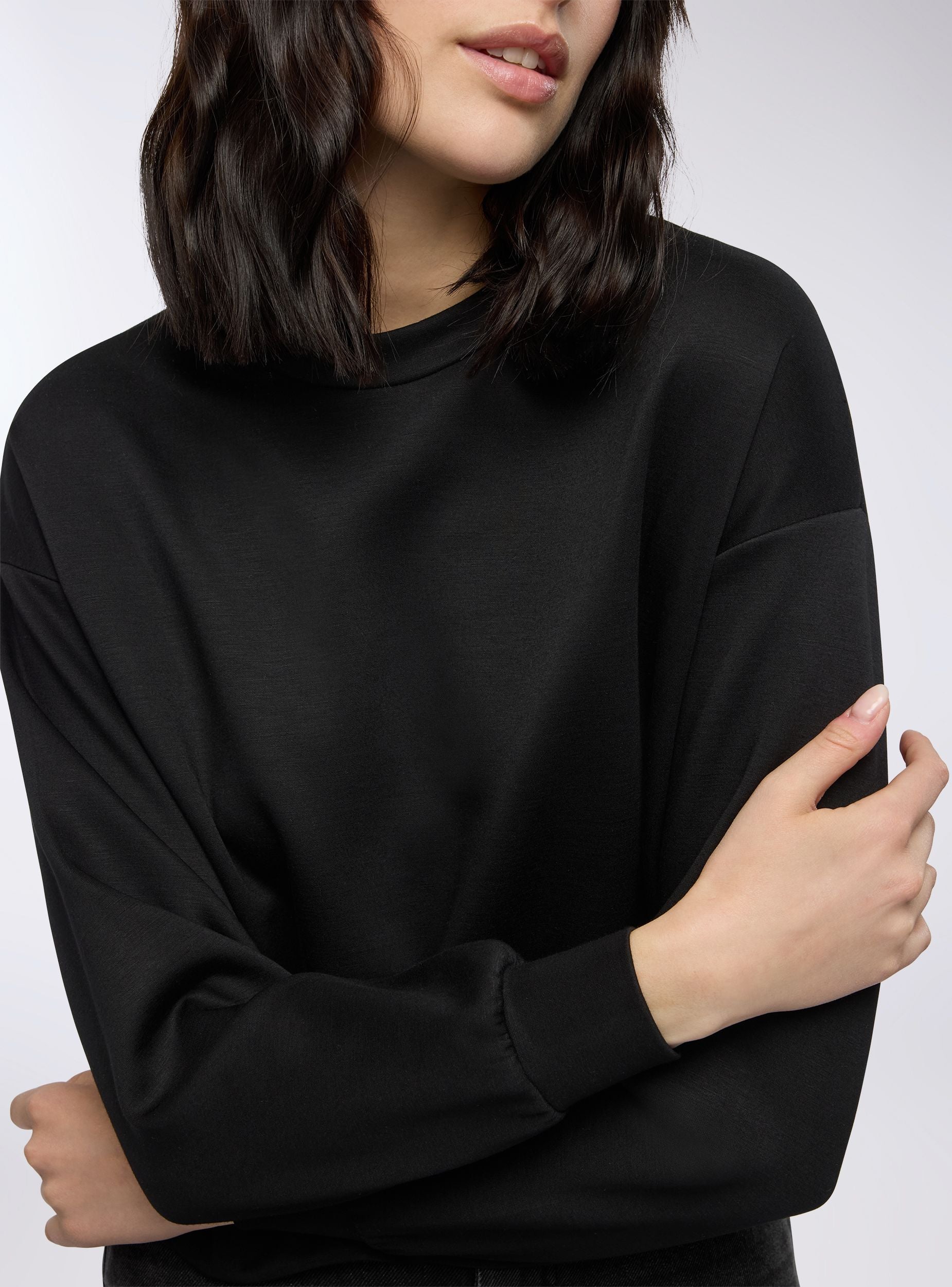 Felpa leggera da donna. Modello con girocollo, senza cappuccio e senza zip, dalla linea essenziale e fit regolare, perfetta per chi cerca comfort e versatilità. Le maniche lunghe donano un tocco casual e contemporaneo, ideale per il tempo libero o per un look athleisure. Facile da abbinare a joggers, jeans o pantaloni wide leg per outfit rilassati ma curati.Dettagli