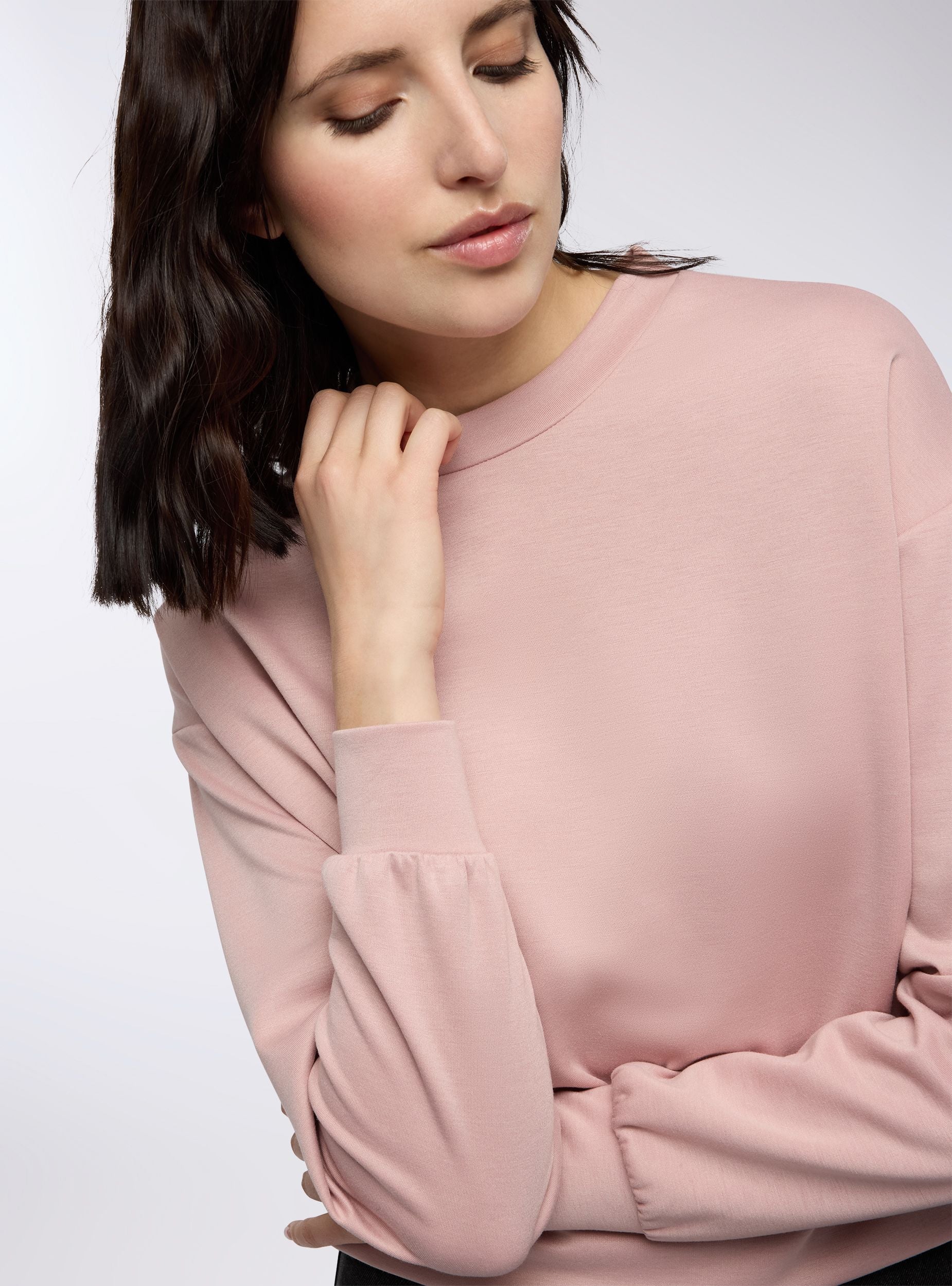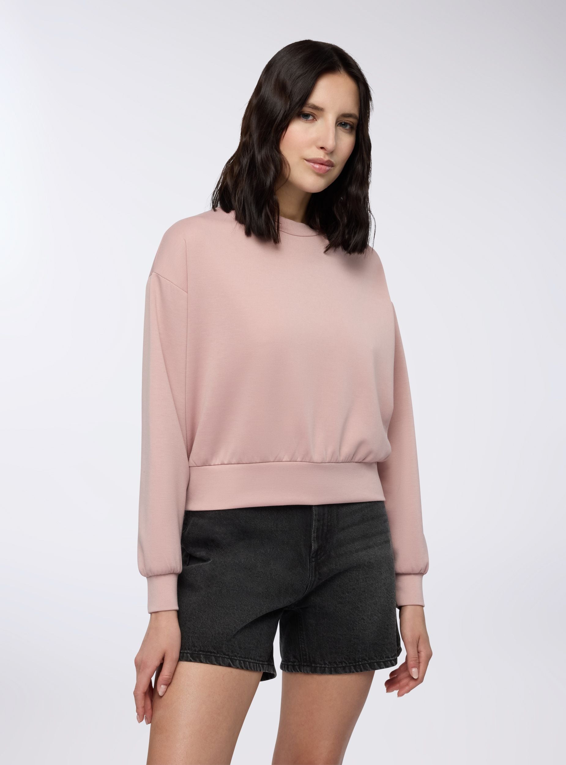 Felpa leggera da donna. Modello con girocollo, senza cappuccio e senza zip, dalla linea essenziale e fit regolare, perfetta per chi cerca comfort e versatilità. Le maniche lunghe donano un tocco casual e contemporaneo, ideale per il tempo libero o per un look athleisure. Facile da abbinare a joggers, jeans o pantaloni wide leg per outfit rilassati ma curati.Dettagli