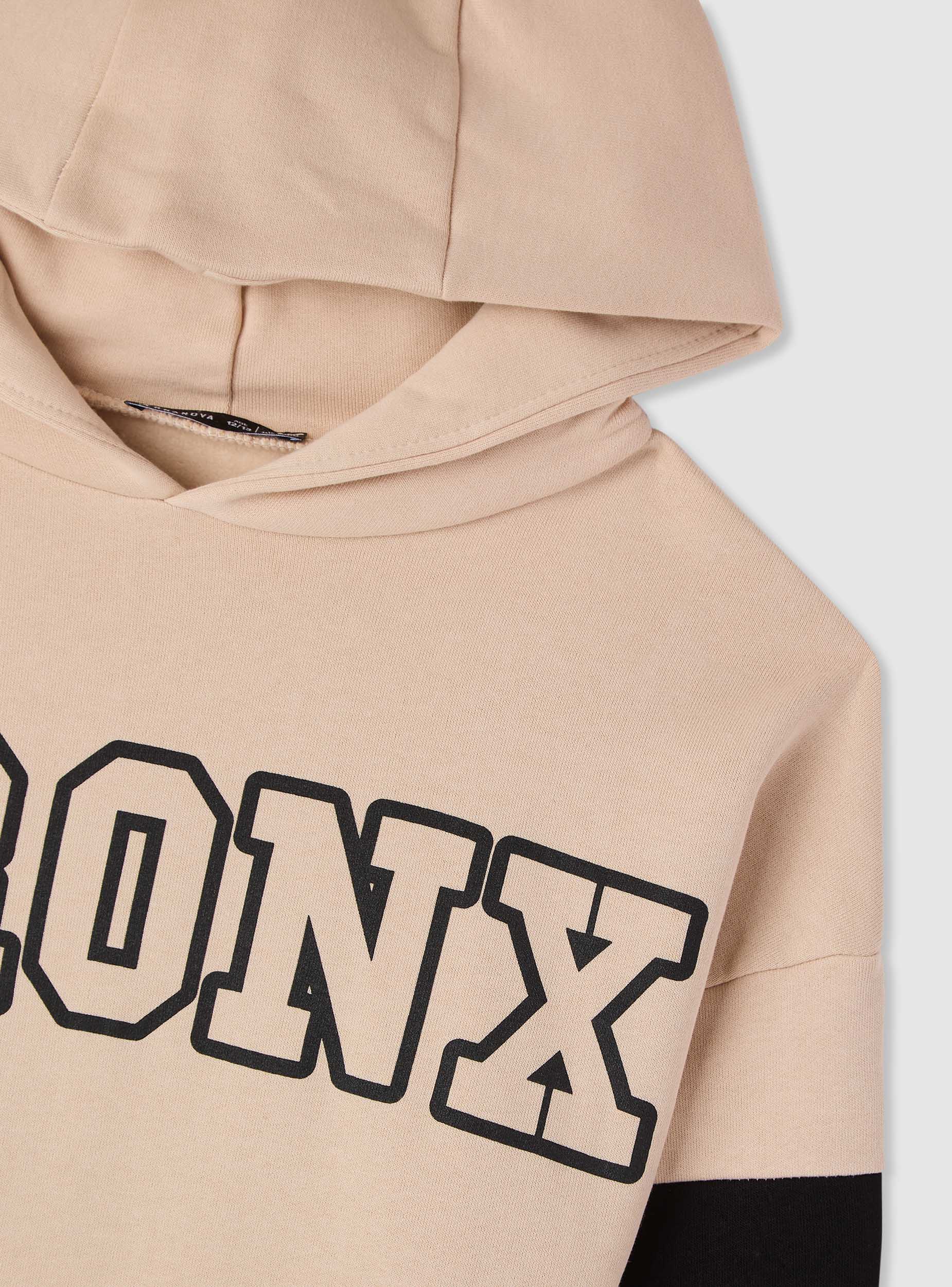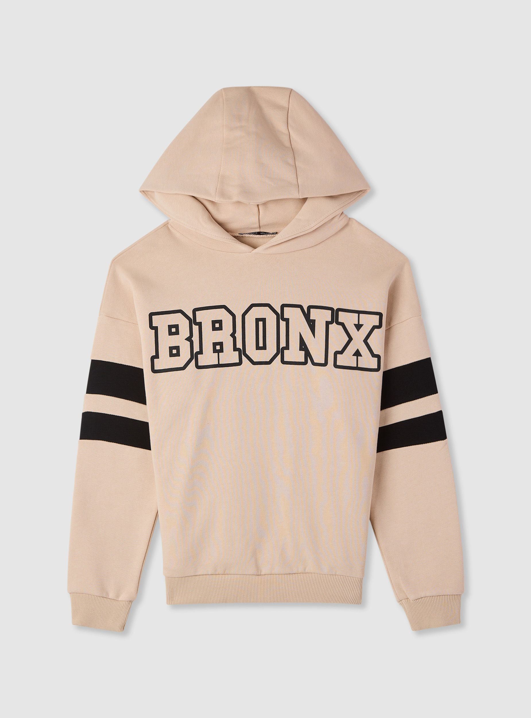Felpa da bambino con cappuccio senza zip, ideale per la scuola e il tempo libero. Modello con maniche lunghe e vestibilità regular, caratterizzato da stampa sport frontale e sul retro. Polsini e fondo in maglia a costine per un fit confortevole, bande a contrasto sulle maniche. Facile da abbinare a jeans o pantaloni tuta per un look urbano e sportivo. Tessuto pesante.Dettagli