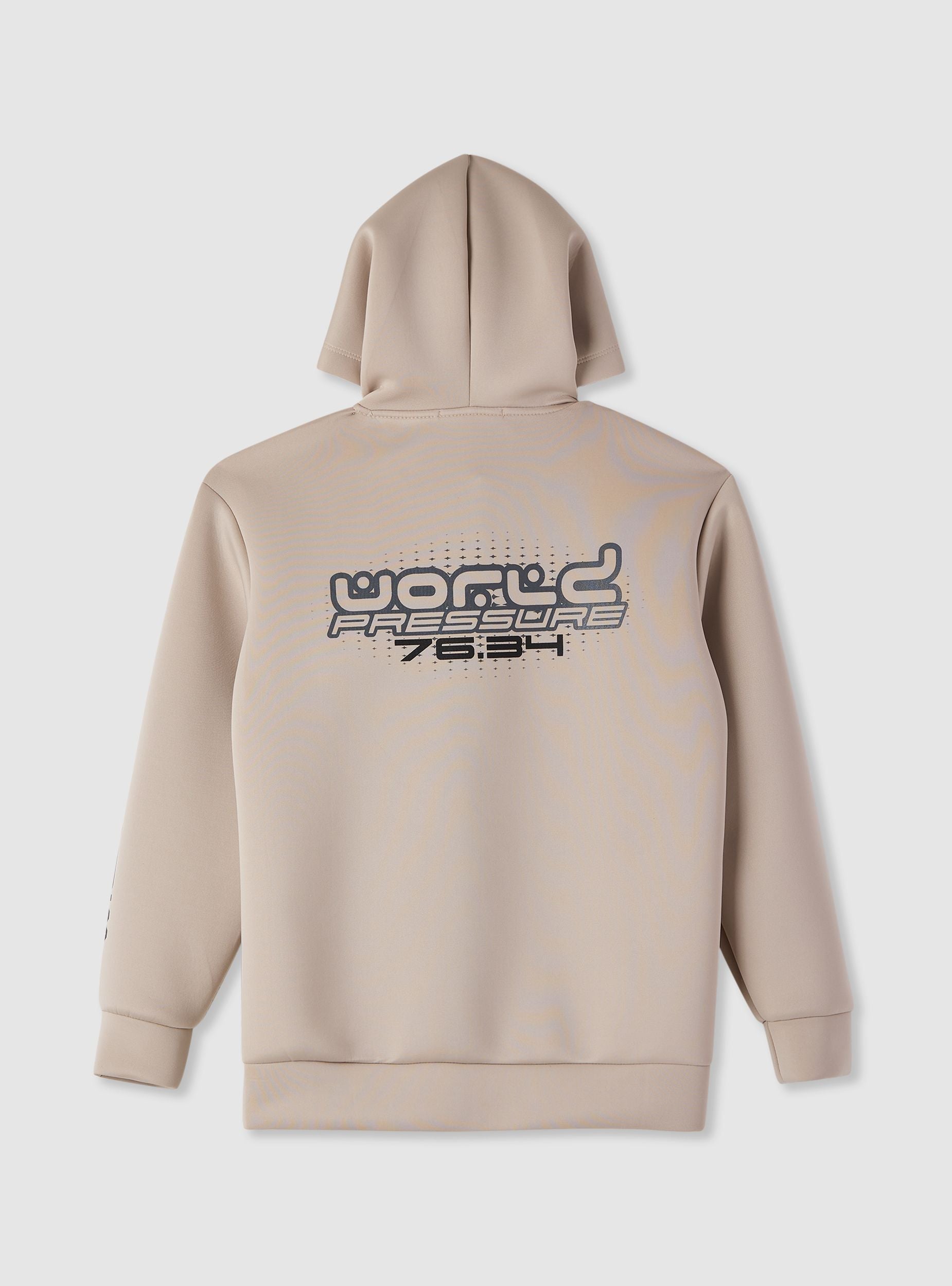 Felpa da bambino con cappuccio e zip frontale. Ideale per il tempo libero e look urban, si abbina a jeans o pantaloni tuta. Tasche a marsupio, polsini e fondo a costine, stampa frontale e sul retro. Vestibilità regular. Tessuto pesante.Dettagli
