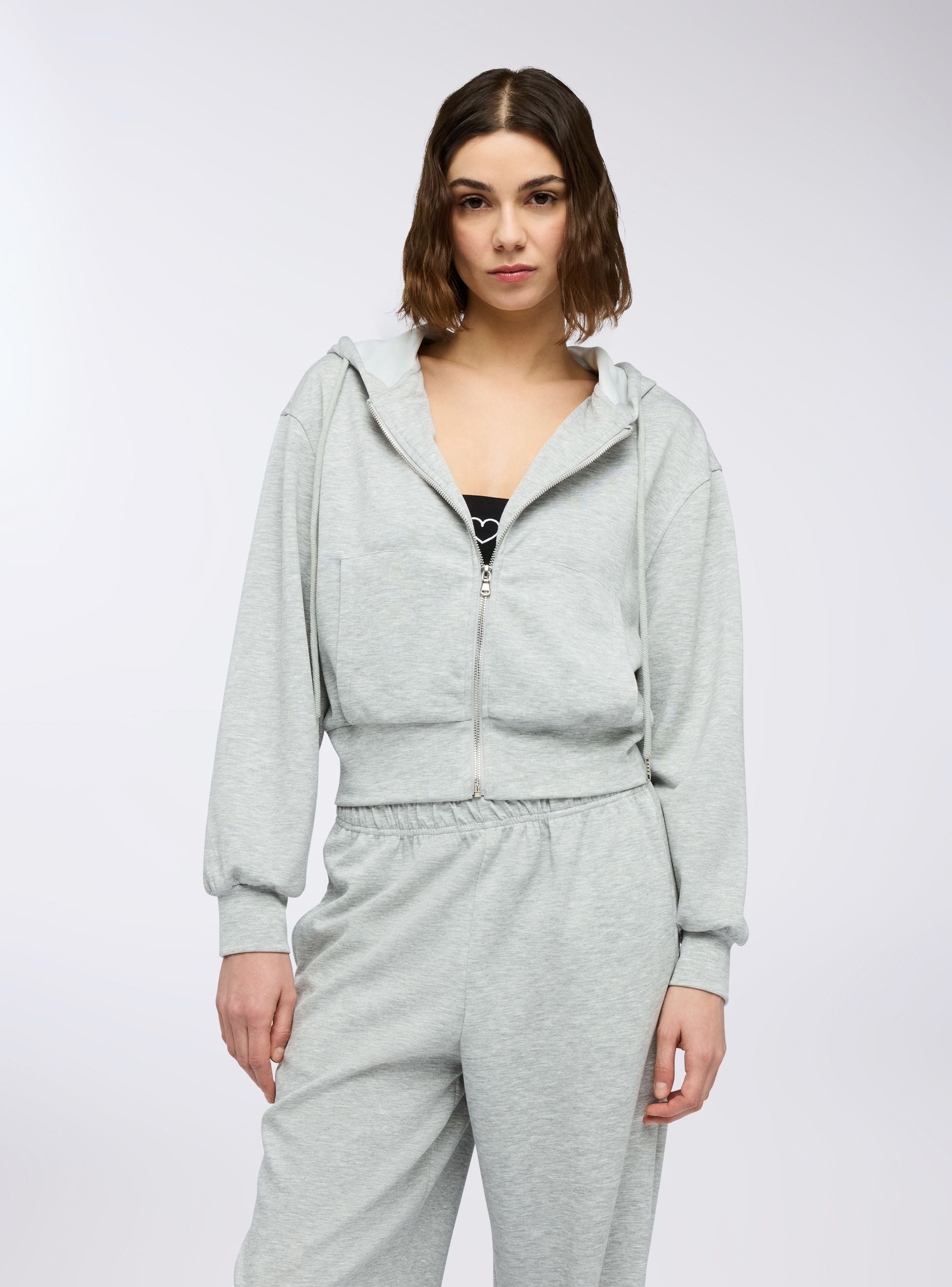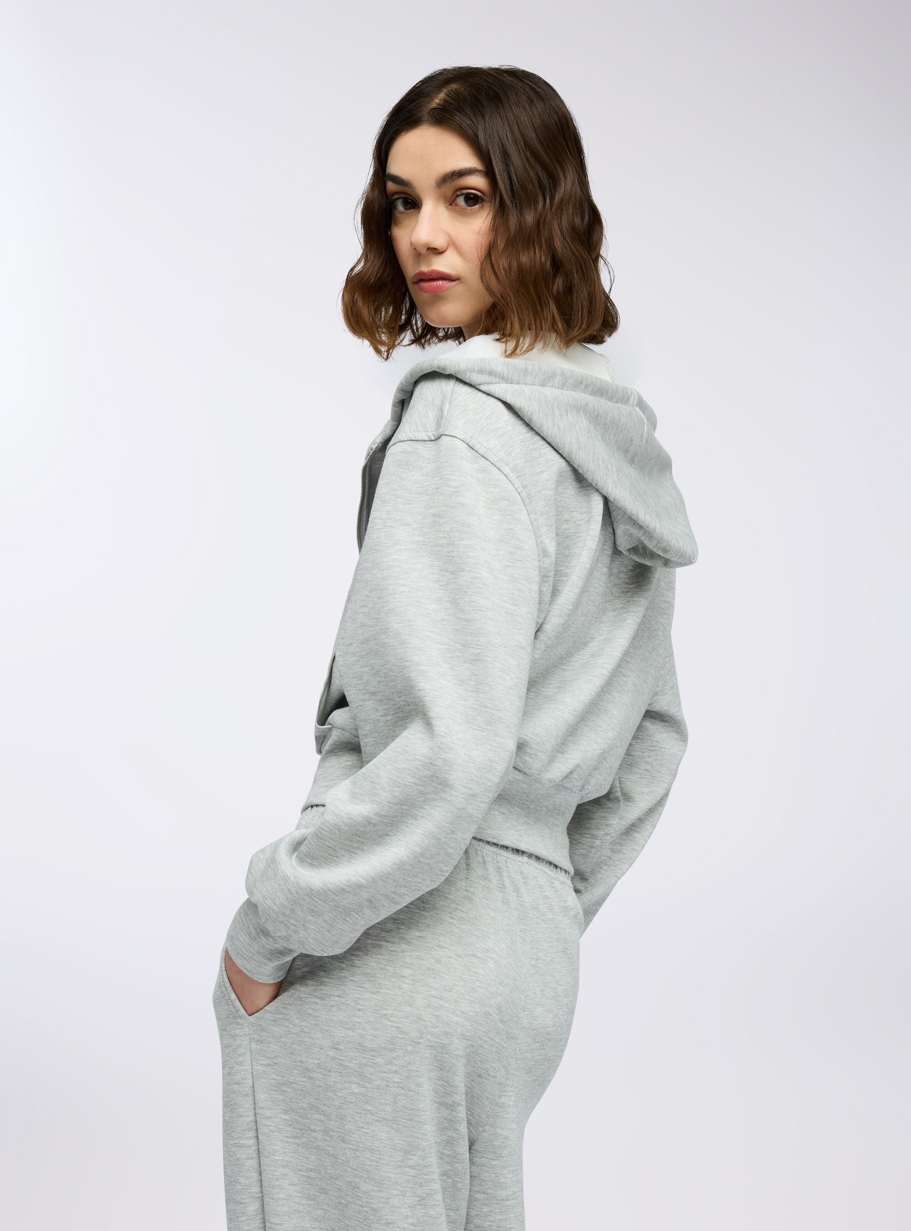 Felpa leggera da donna con maniche lunghe e cappuccio, ideale per un look casual e rilassato. La chiusura con zip frontale aggiunge praticità, mentre il design a tinta unita la rende facile da abbinare con jeans, joggers o leggings. Perfetta per il tempo libero, le giornate in città o i momenti di relax, dona comfort e stile in ogni occasione.Dettagli