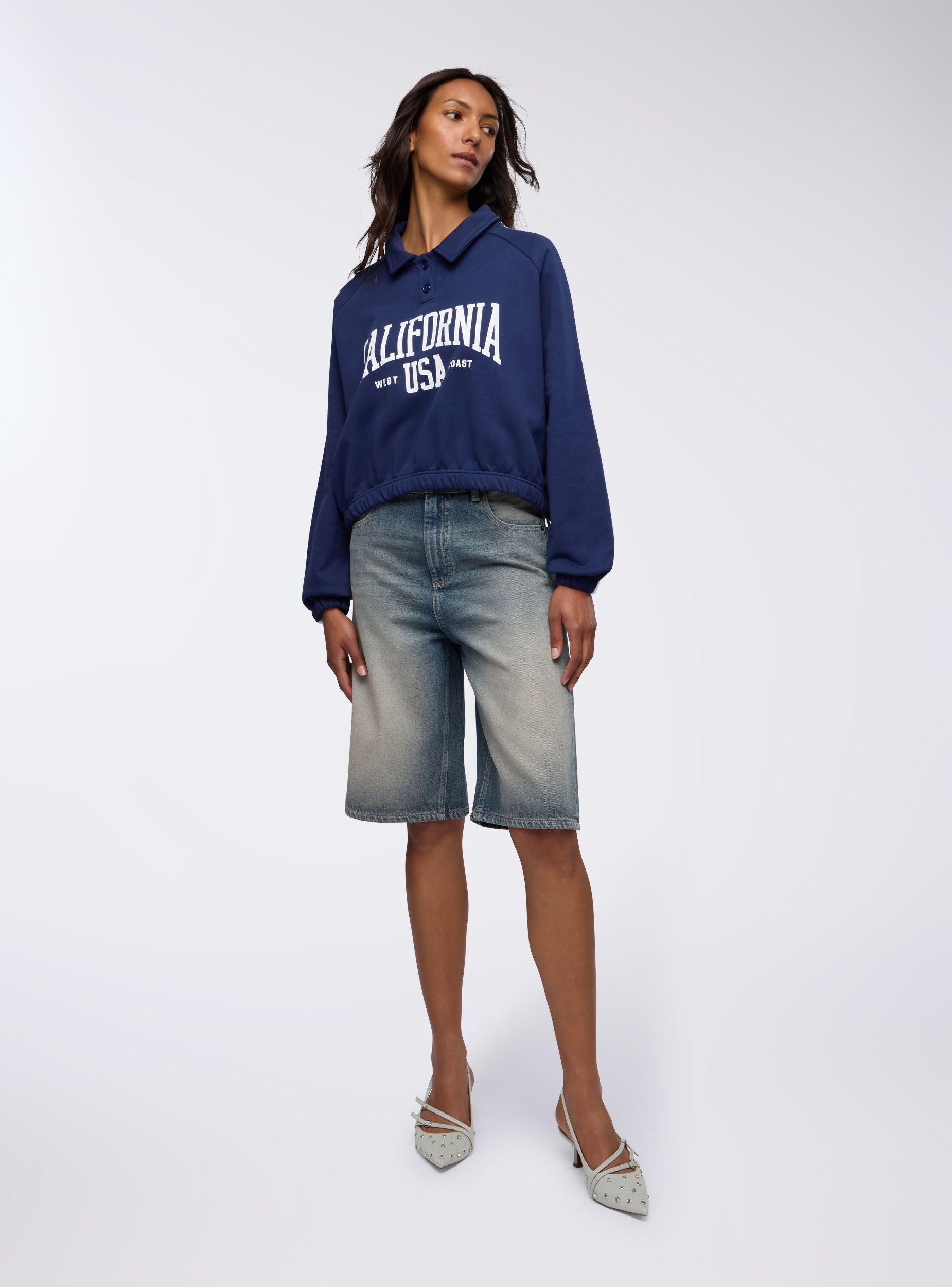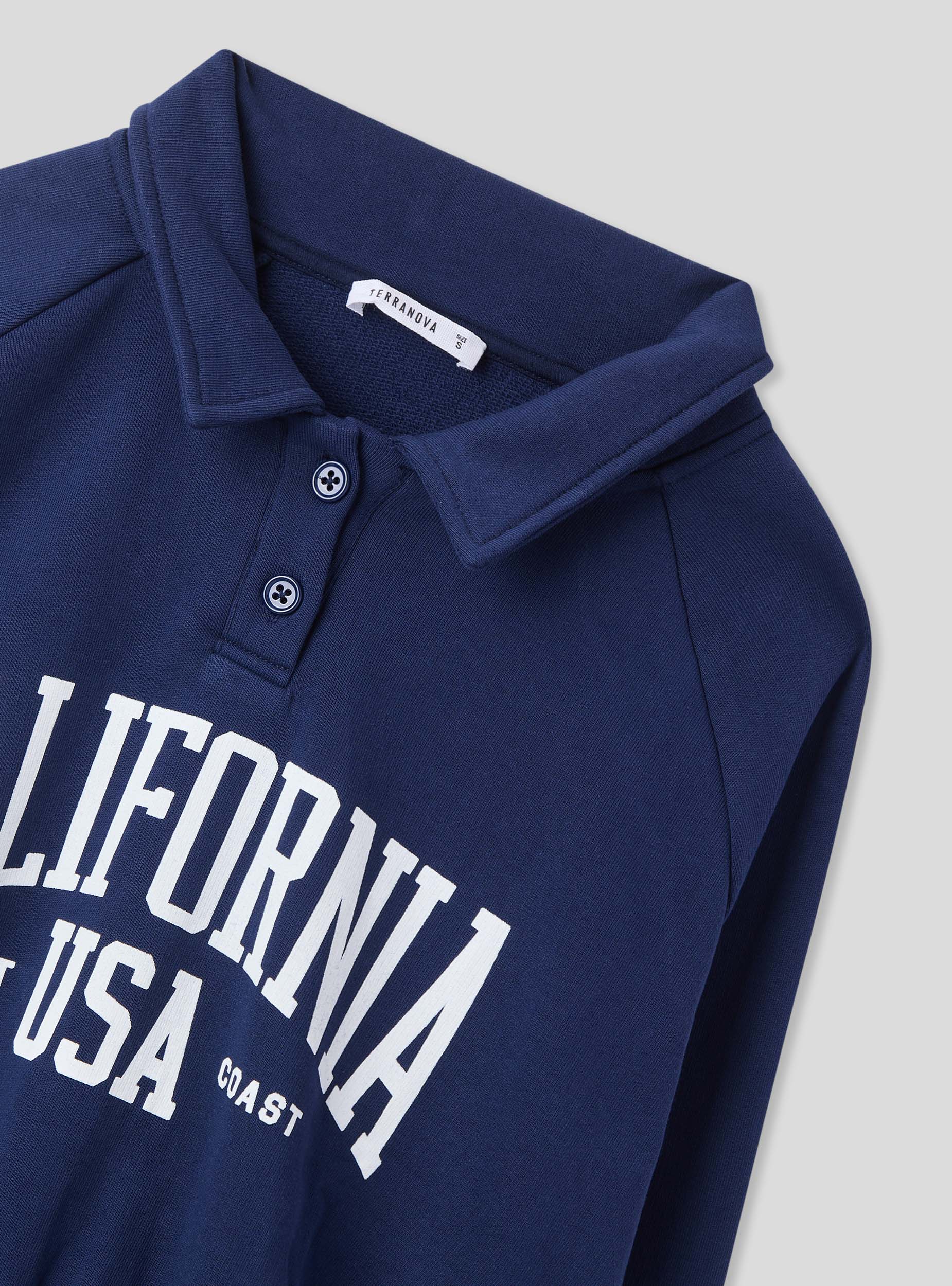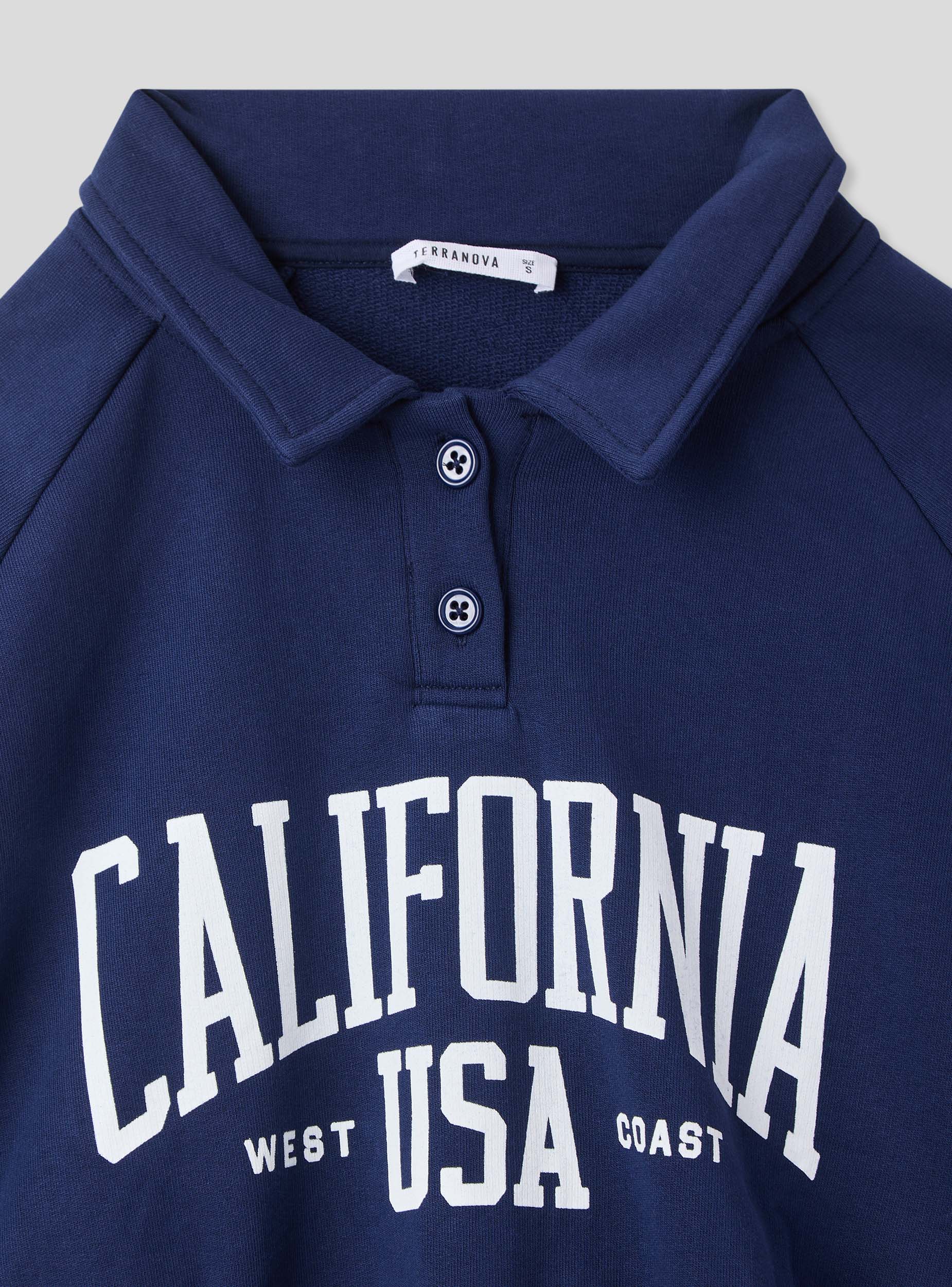 Felpa leggera da donna ideale per un look casual e sportivo. Perfetta per il tempo libero, si abbina facilmente a jeans o pantaloni jogger per un outfit comodo e alla moda. Il design con stampa college aggiunge un tocco di stile urbano, mentre il colletto polo con bottoni e gli stopper sul fondo garantiscono praticità e versatilità. Un capo che unisce comfort e tendenza per ogni occasione.Dettagli