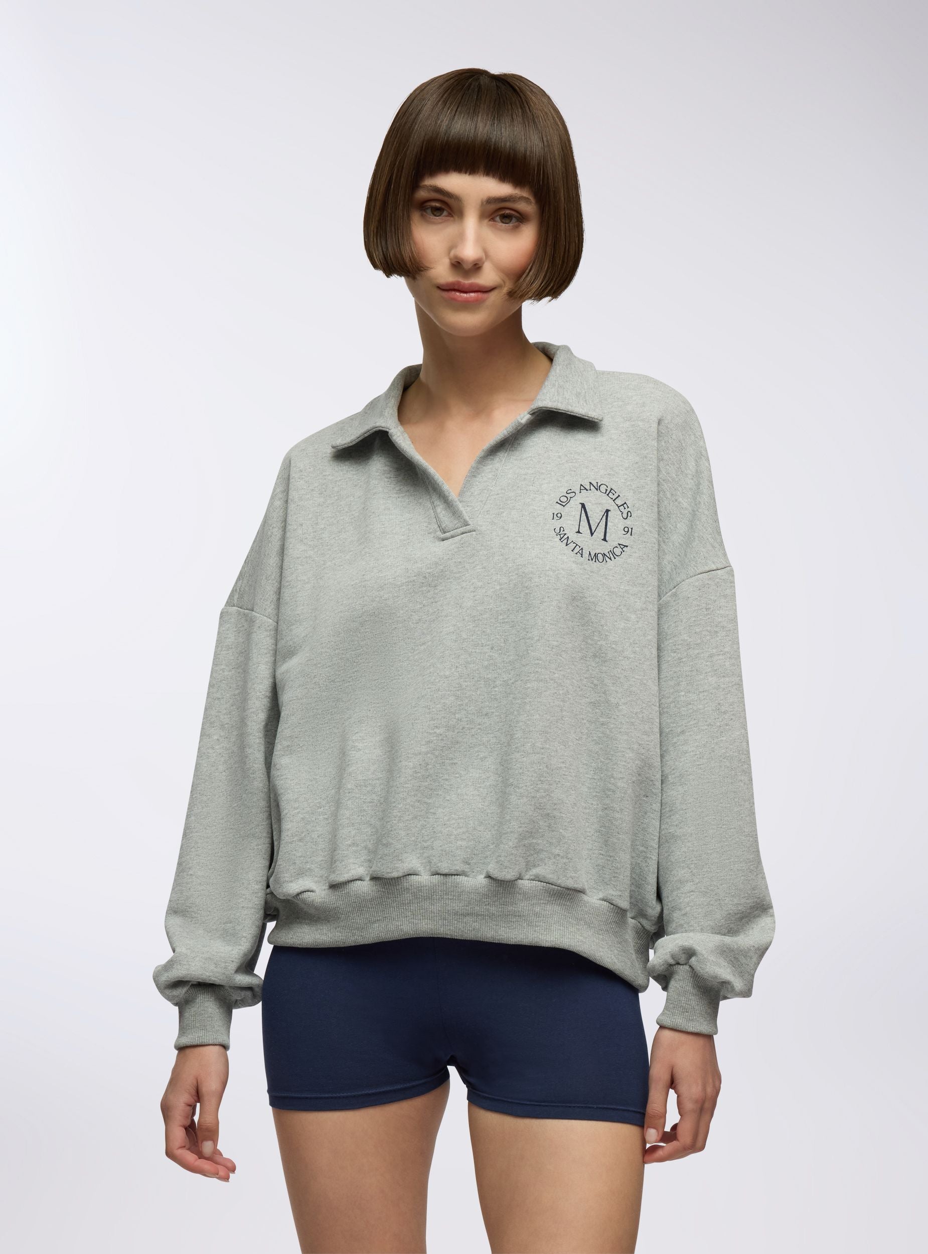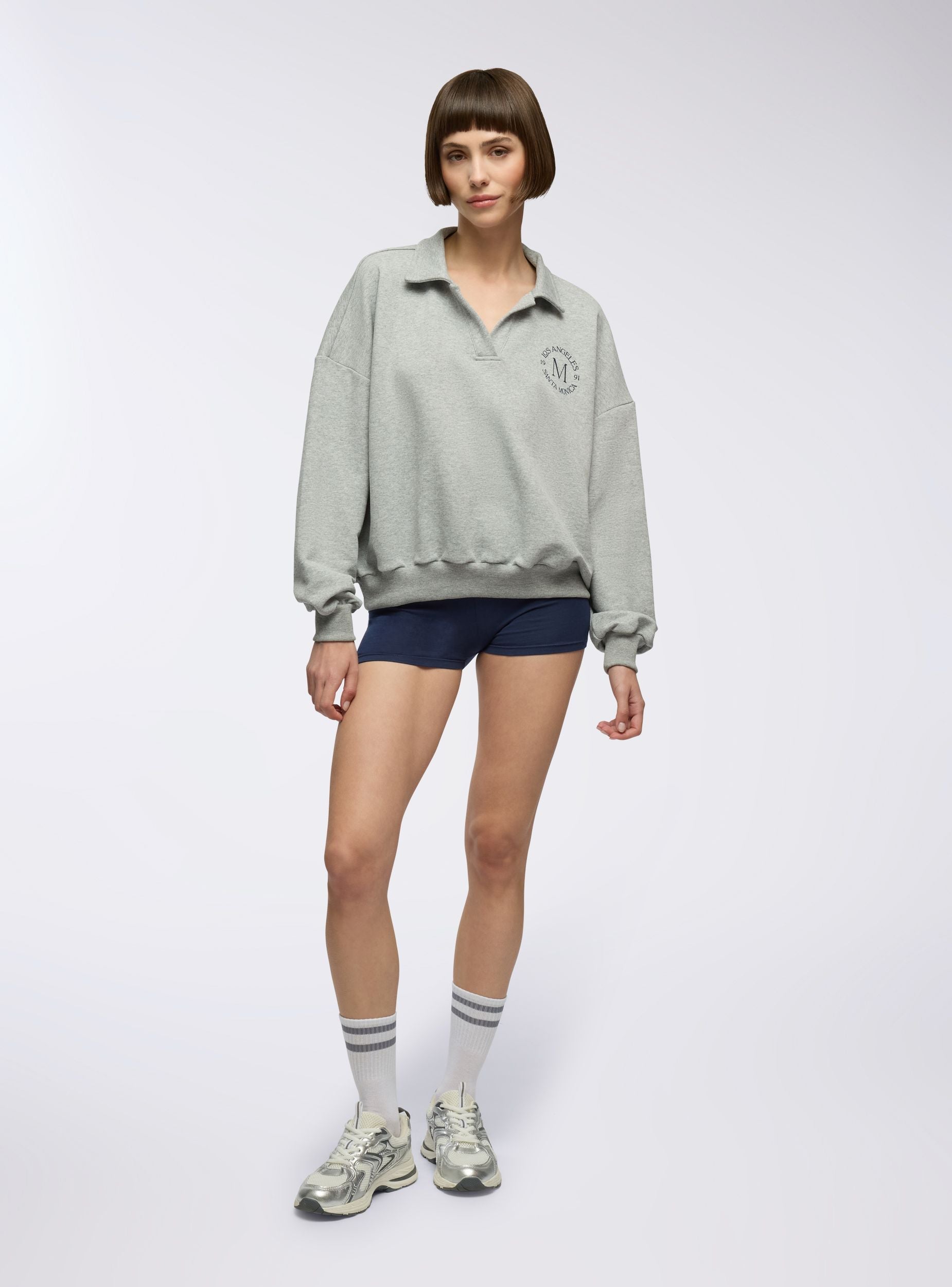 Felpa leggera da donna ideale per un look casual e dinamico, perfetta per il tempo libero o per un outfit sportivo. Caratterizzata da una vestibilità comoda, presenta un design con collo polo e maniche lunghe. Modello senza cappuccio e senza zip. La stampa laterale sul petto aggiunge un tocco distintivo, rendendola una scelta versatile per varie occasioni.Dettagli