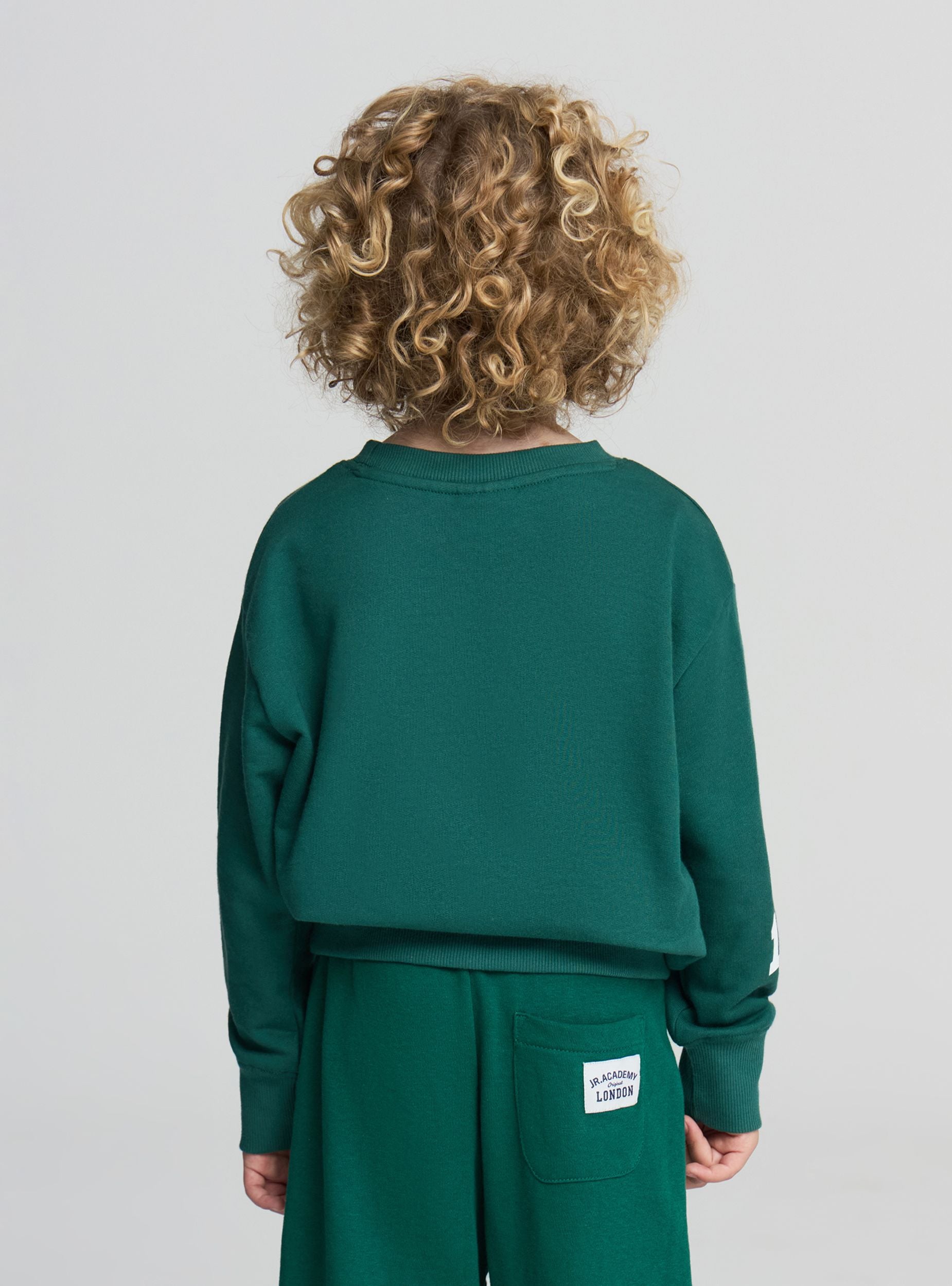 Felpa da bambino con maniche lunghe e stampa vivace. Presenta un design accattivante con una scimmia stilizzata e scritte decorative, ideale per un look casual e divertente. Perfetta per il tempo libero e le giornate di gioco, si abbina facilmente a jeans o pantaloni sportivi. Vestibilitá comoda e dettagli che catturano l'attenzione, rendendola un capo versatile per ogni occasione.Dettagli