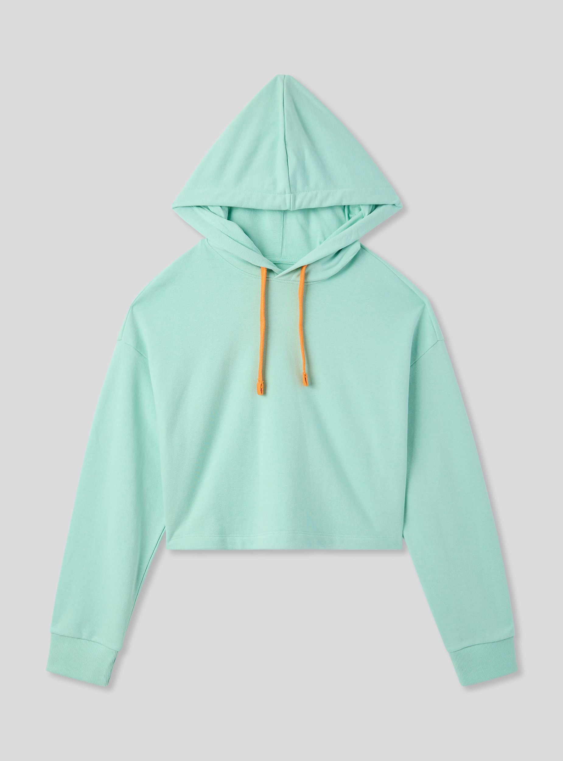 Felpa leggera da donna a maniche lunghe, senza zip, con cappuccio e coulisse a contrasto per un dettaglio di stile. Il design crop dona un tocco trendy e femminile, perfetto per outfit sportivi e casual. Ideale da abbinare a jeans a vita alta, joggers o leggings per un look moderno e dinamico, perfetto per il tempo libero o le giornate all'insegna del comfort con un tocco di personalità. Questo articolo fa parte del progetto TRNPOPLAB nato dalla collaborazione con NABA Milano. Gli studenti di fashion design hanno dato vita a collezioni ispirate ai trend più cool del momento. E ora vedranno le loro creazioni prendere vita e arrivare direttamente nelle tue mani!Dettagli