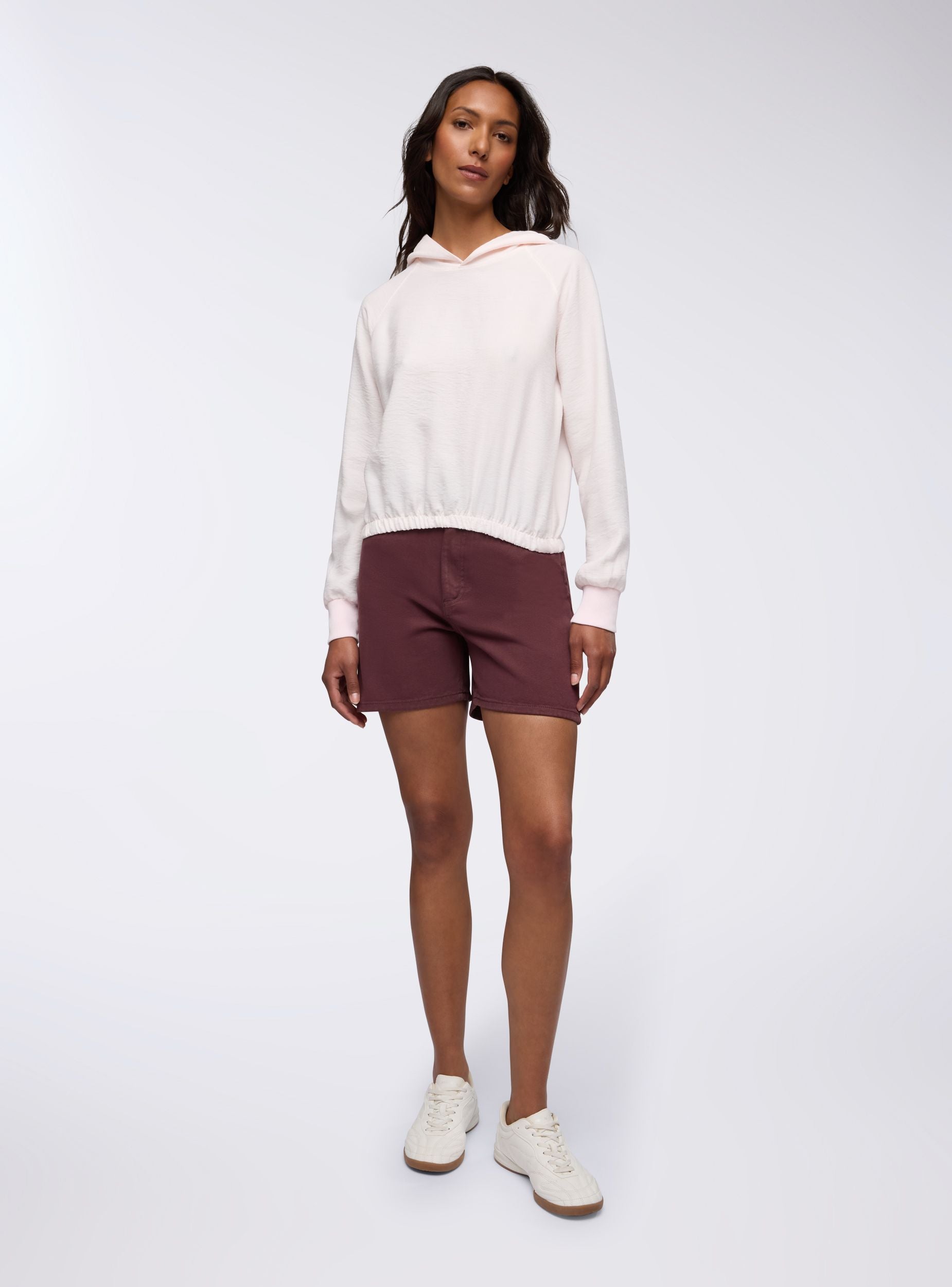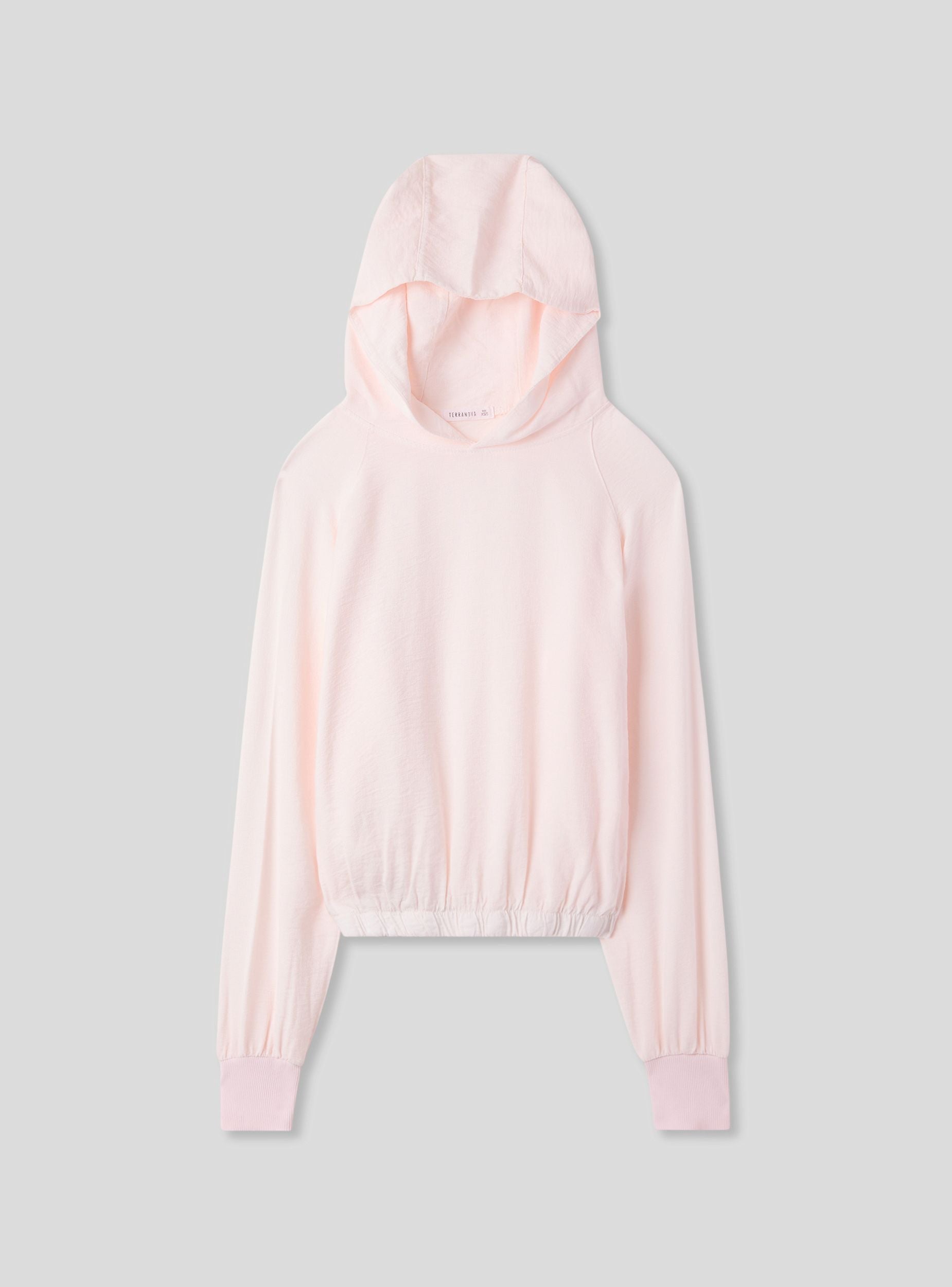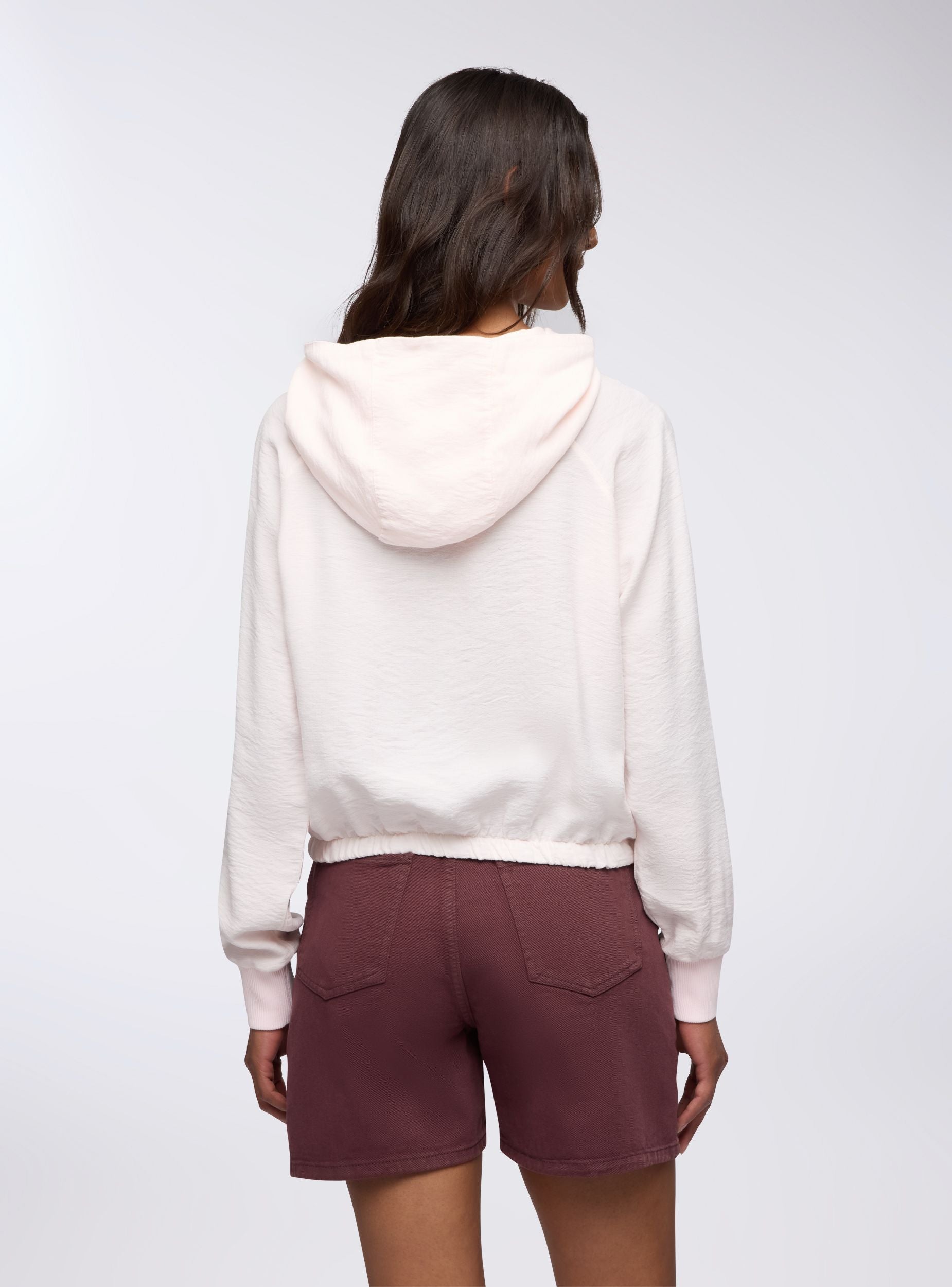 Felpa leggera da donna con cappuccio, ideale per un look casual e comodo. Modello chiuso senza zip. Perfetta per il tempo libero, si abbina facilmente a jeans o pantaloni sportivi per un outfit rilassato. Il design crop aggiunge un tocco moderno e giovanile, mentre l'elastico sul fondo garantisce una vestibilità confortevole. Un capo versatile per giornate informali o attività all'aperto.Dettagli
